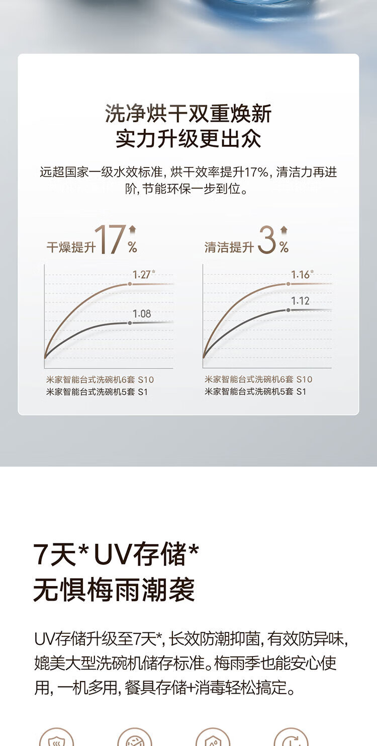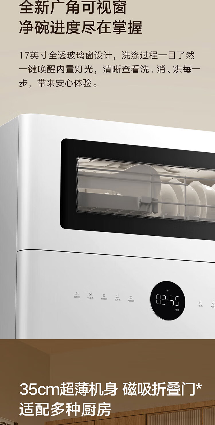 Mijia Xiaomi desktop dishwasher 6 sets S10 thin body integrated visual washing and disinfection 105 hot air drying intelligent dirt recognition APP control