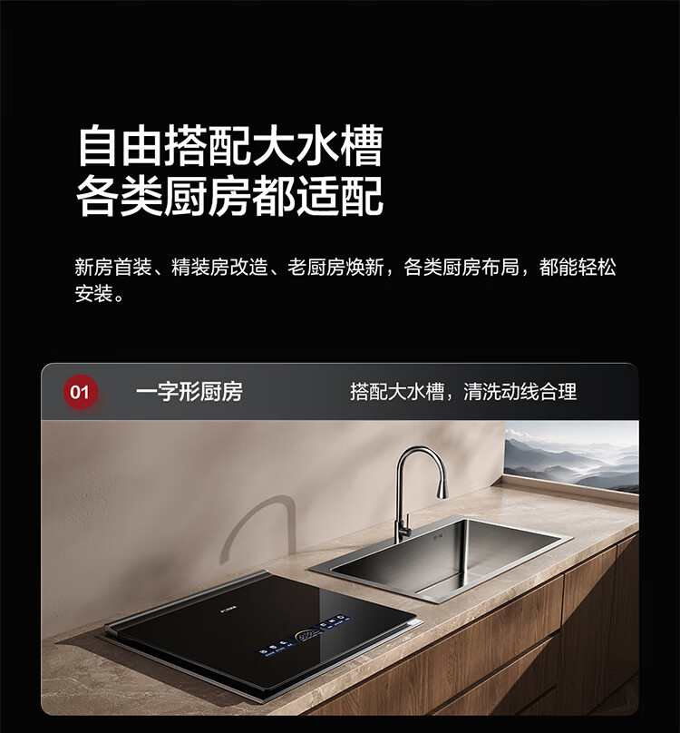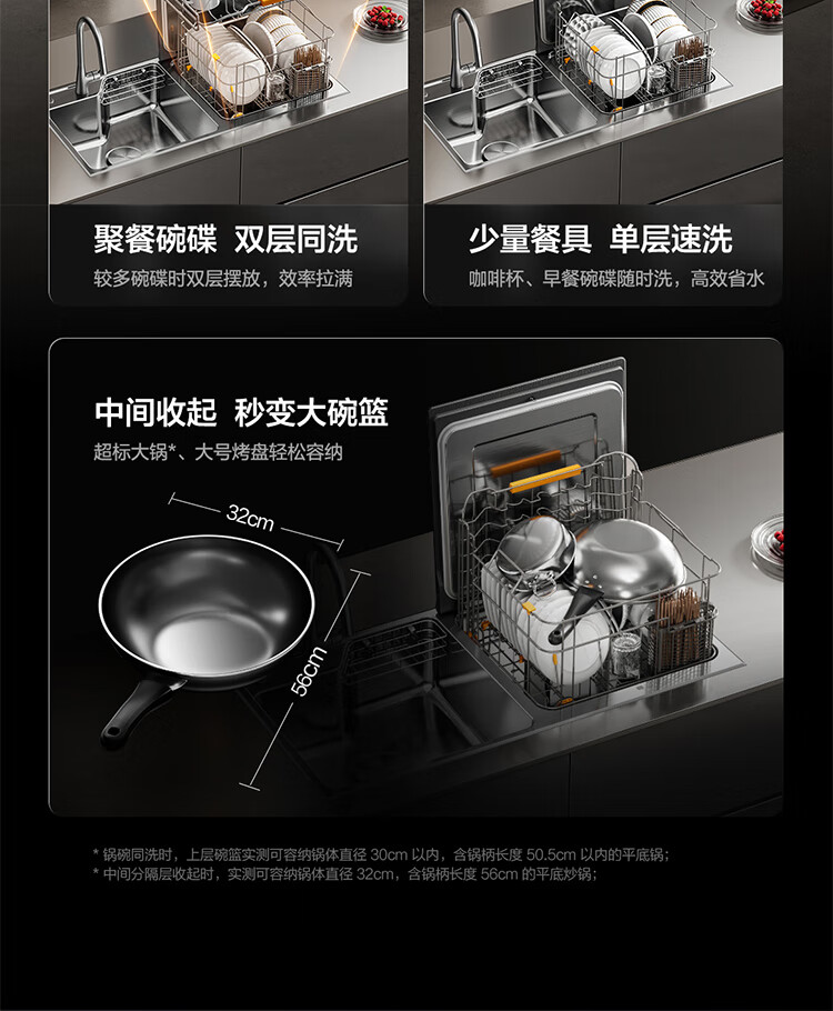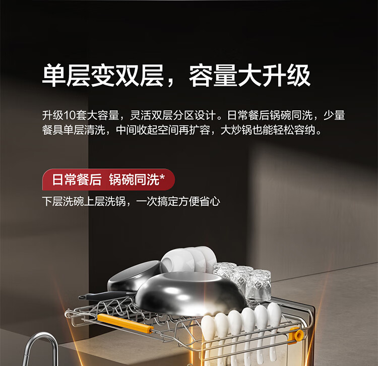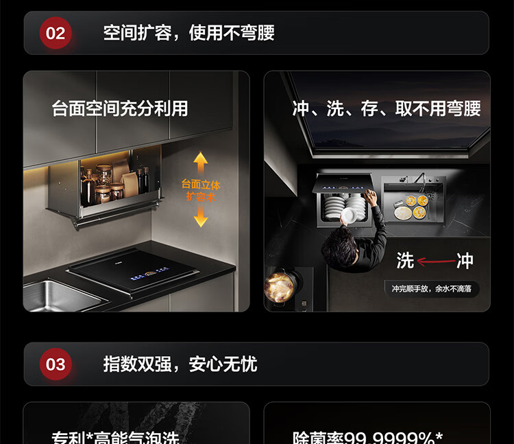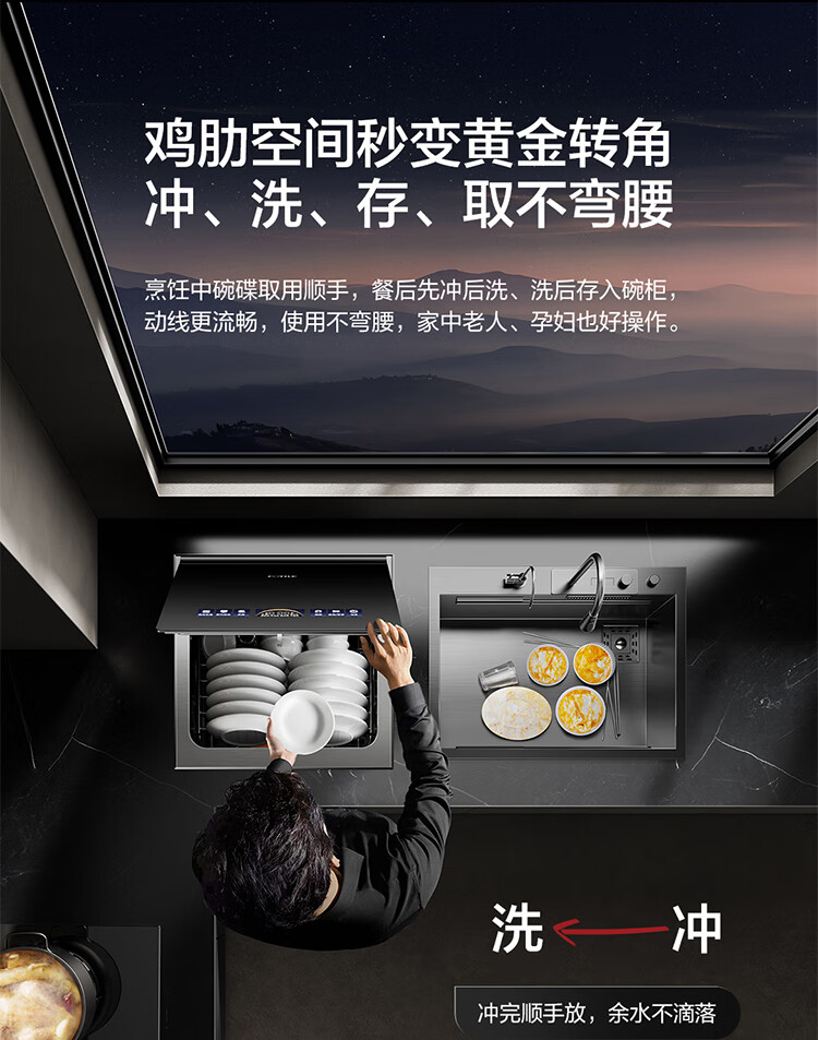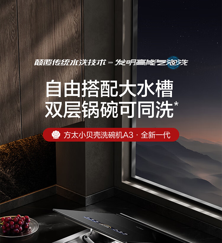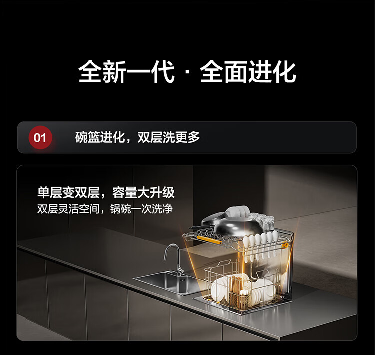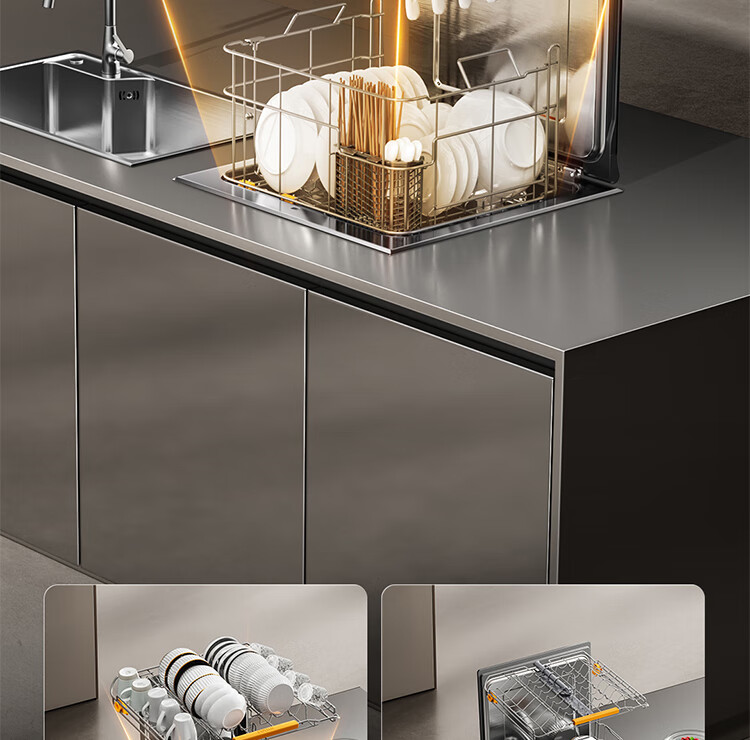 FOTILE counter-mounted double-layer dishwasher 02-A3 embedded desktop household dishwashing without bending 100 steam sterilization hot air drying 10 sets large capacity washable pot versatile sink 02-A3