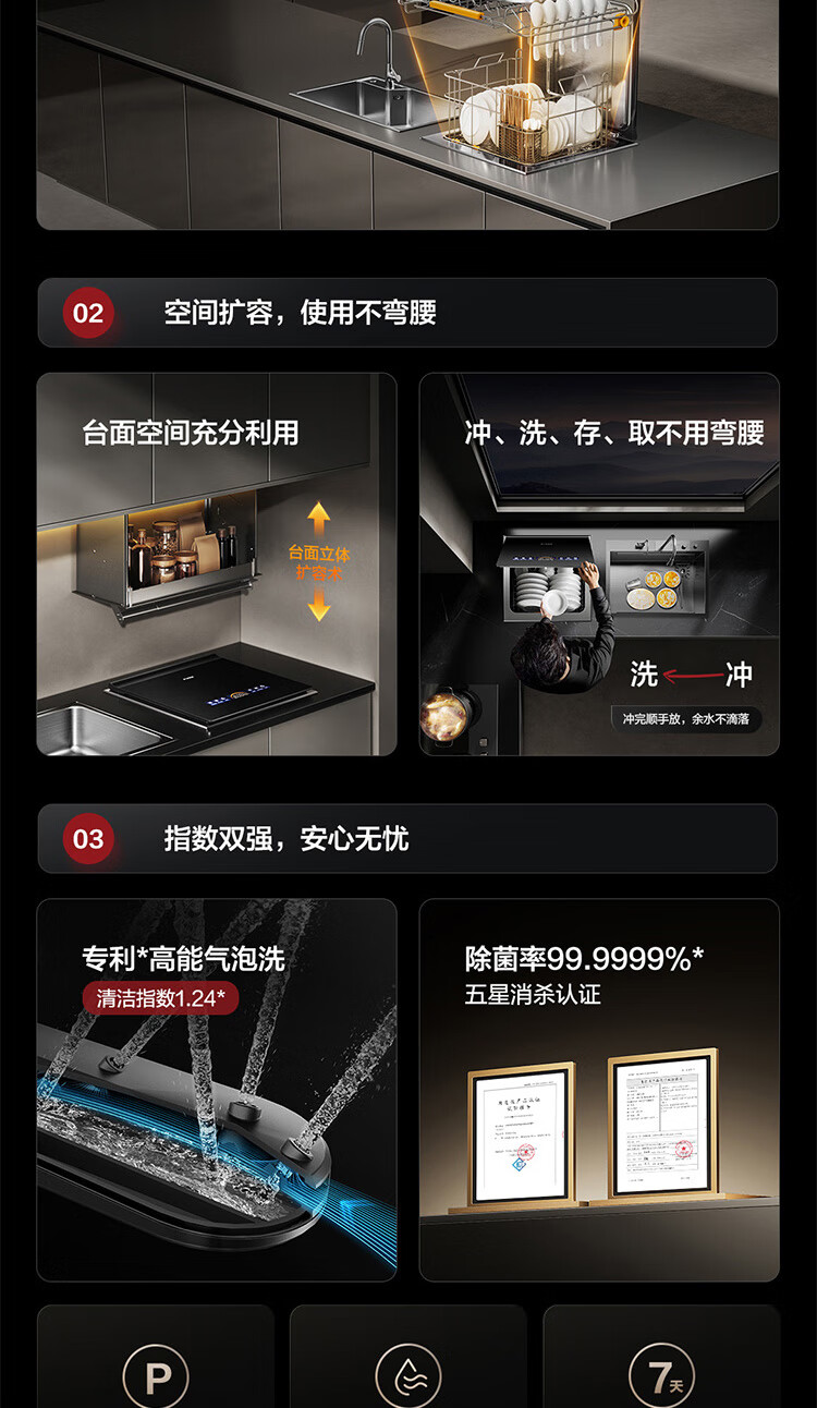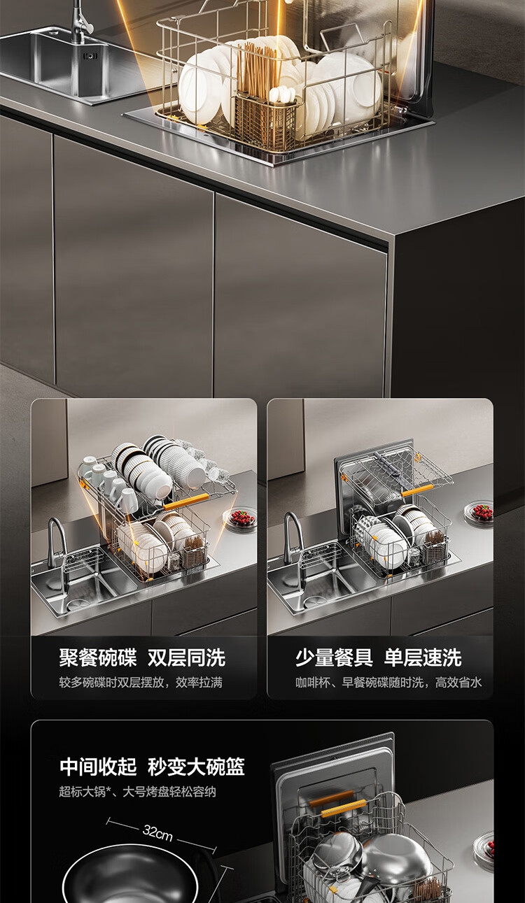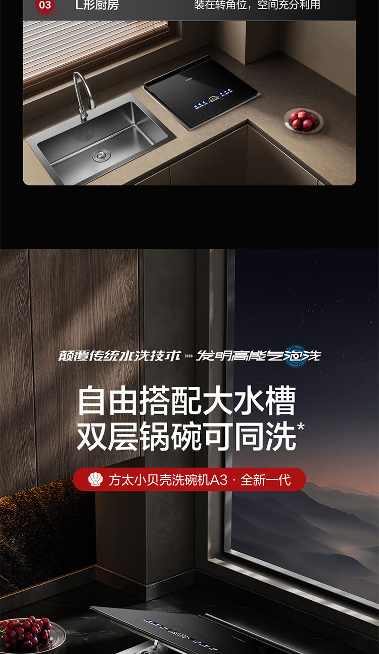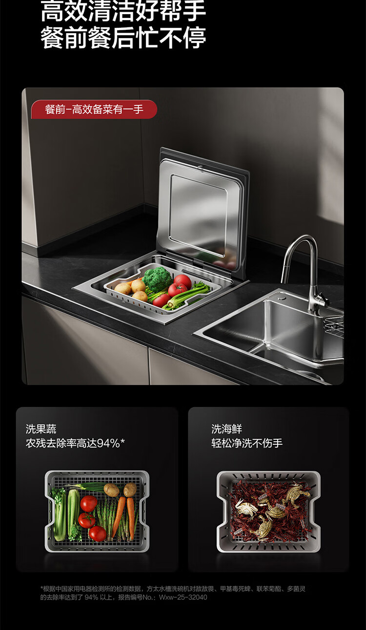FOTILE 02-A3 sink dishwasher, 10 sets, large capacity, double-layered washable pots, flexible placement without bending, washing seafood, fruits and vegetables, forced draining of waste water, stainless steel all-in-one machine, new upgrade 02-A3, double-layered pots and bowls washed together * 10 sets
