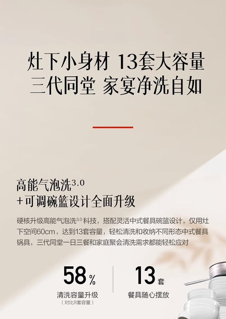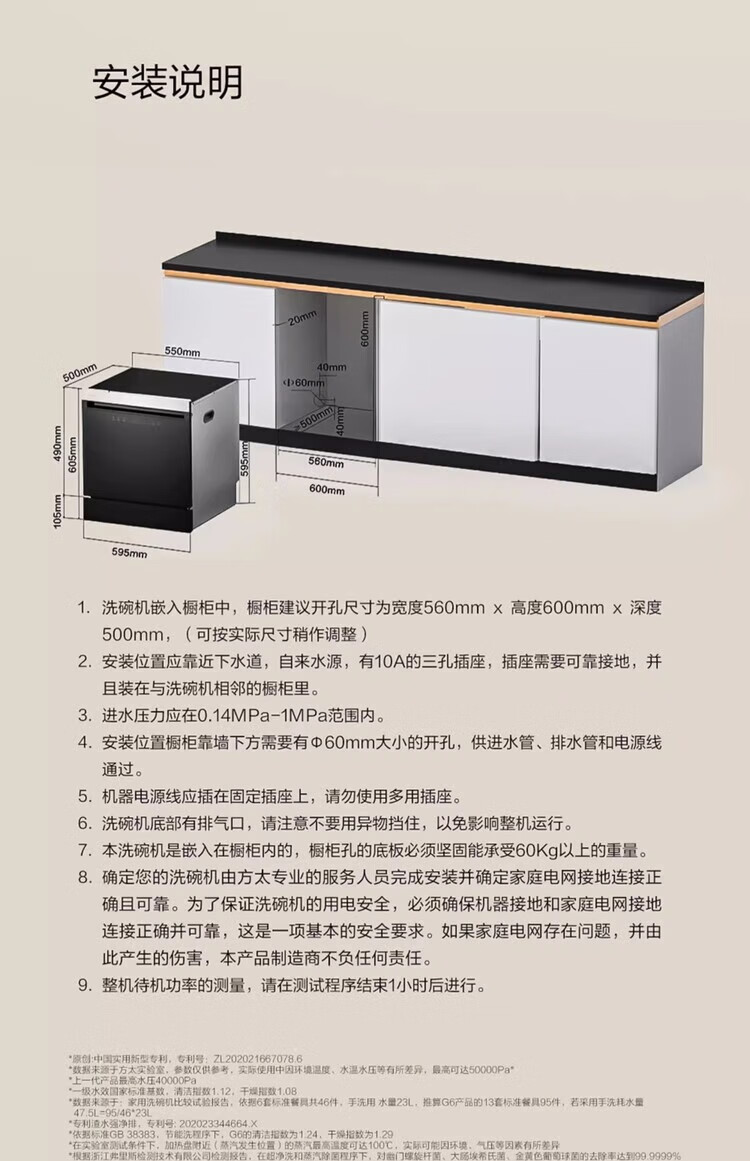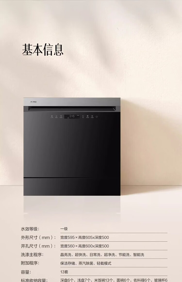 Fotile store's same style built-in dishwasher JPCD6E-03-G6 fully automatic household small under-stove built-in dishwasher steam sterilization and drying official flagship store JPCD6E-03-G6