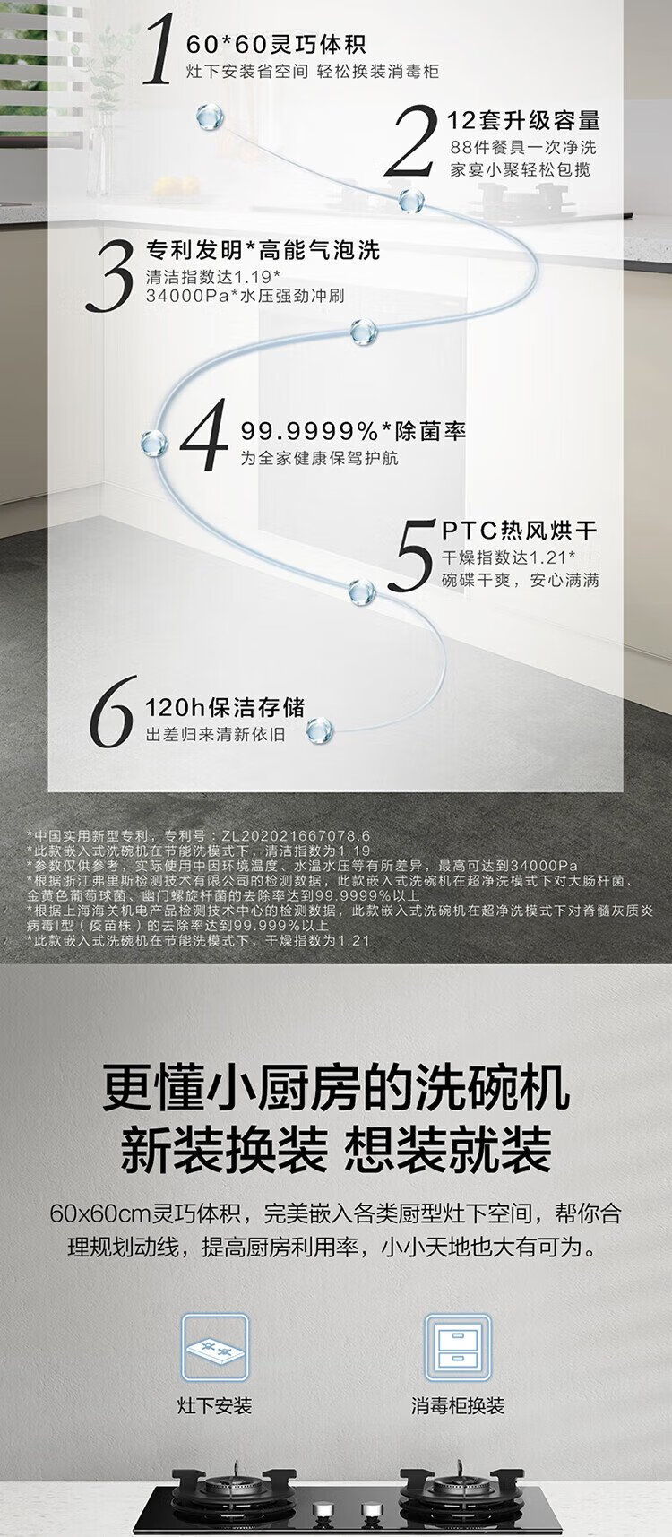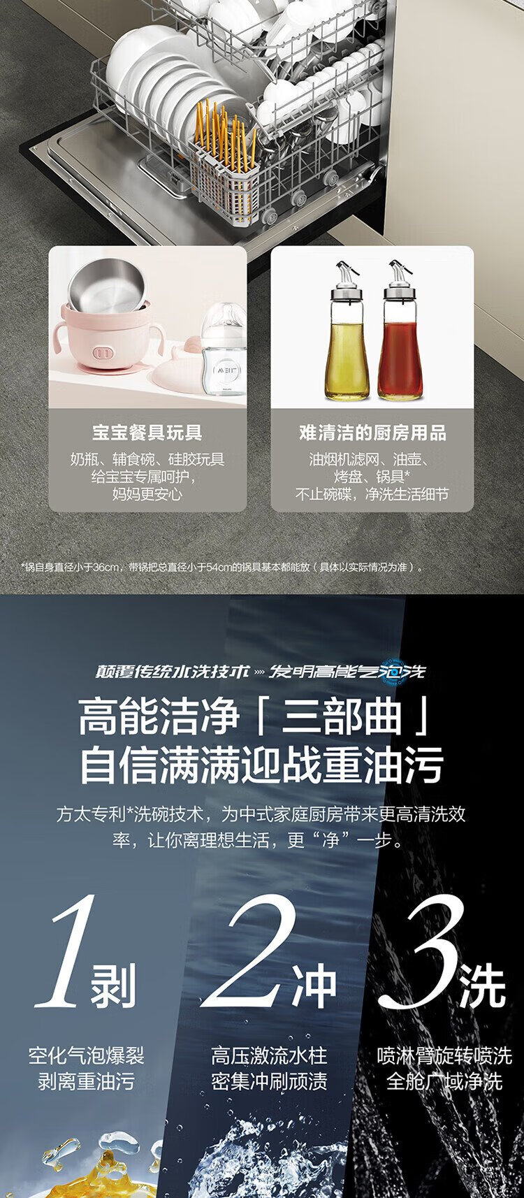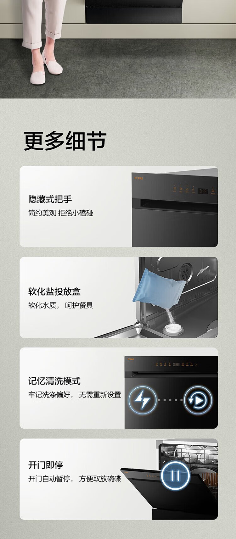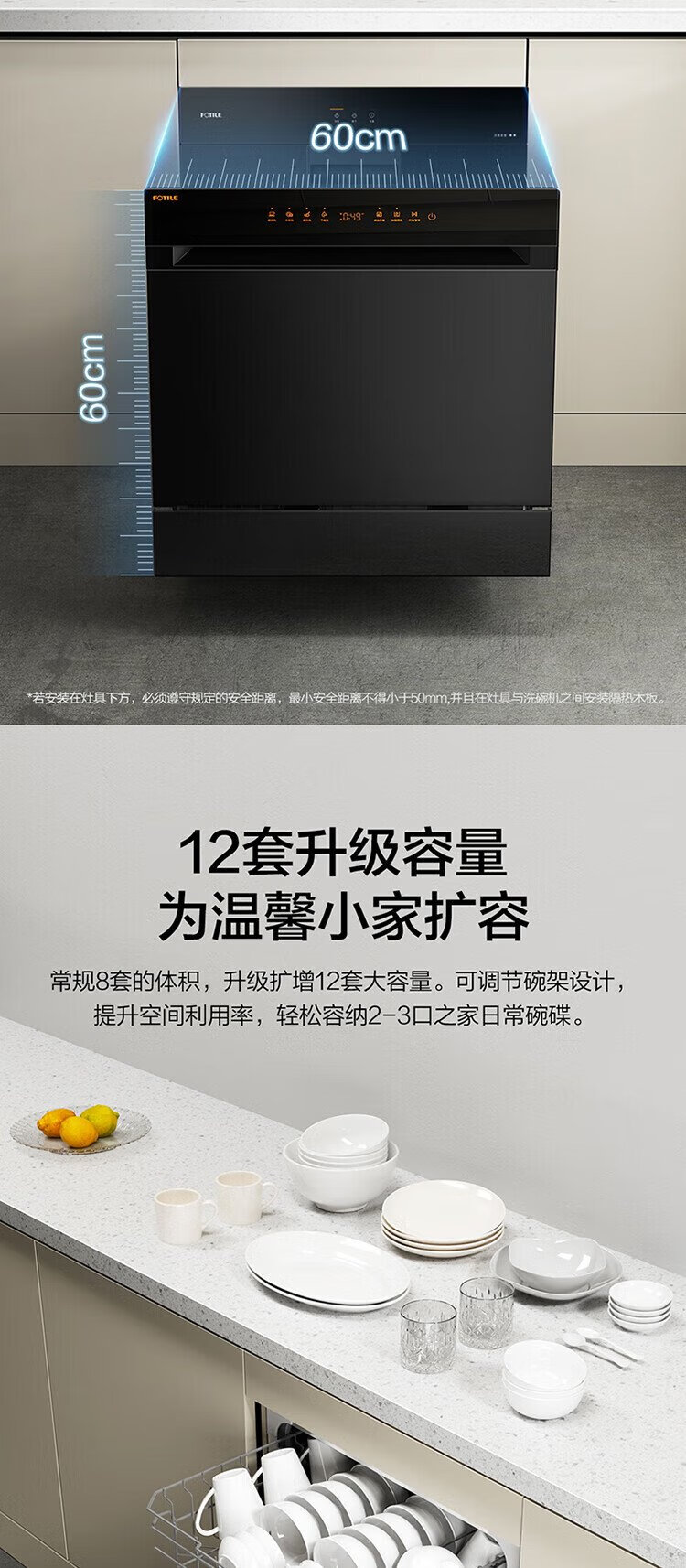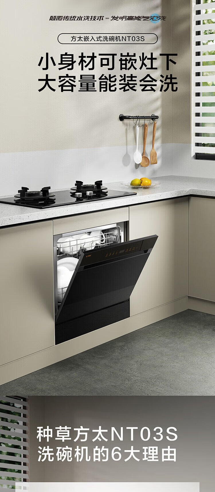 FOTILE NT03S built-in dishwasher 12 sets of large-capacity pots and bowls for home use, integrated washing, elimination, drying and storage, fully automatic high-energy bubble washing, first-class water efficiency NT03S 12 sets