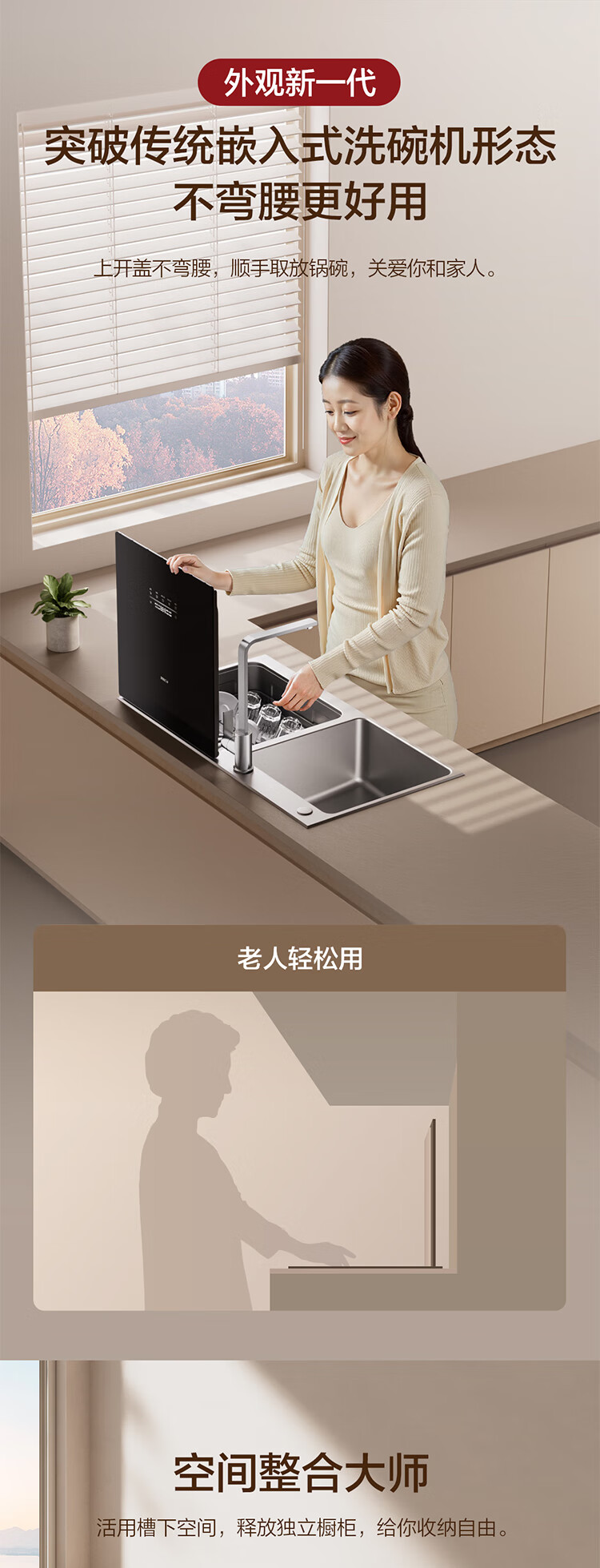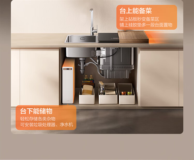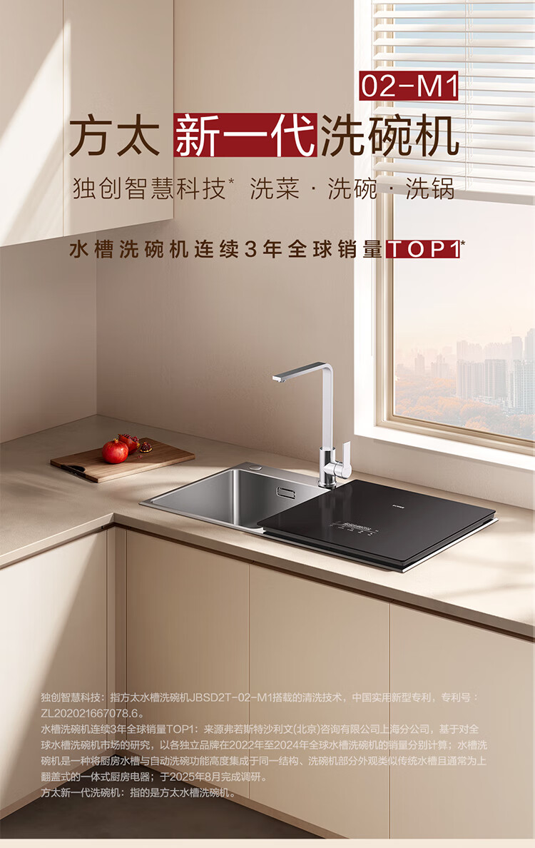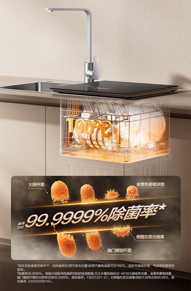Fotile sink-type dishwasher 02-M1/02-M1L embedded household sterilization hot air drying smart three-in-one dishwasher for washing seafood, fruits and vegetables to remove pesticide residues 7 sets large space left dishwasher right sink 02-M1L 7 sets