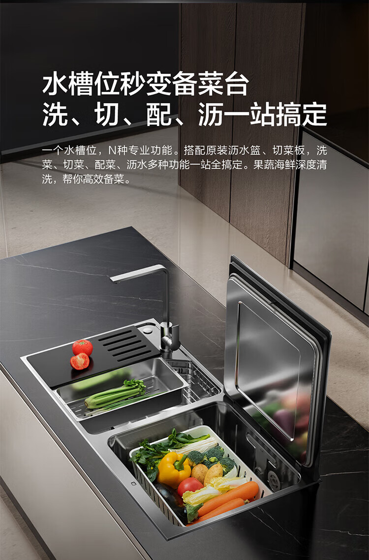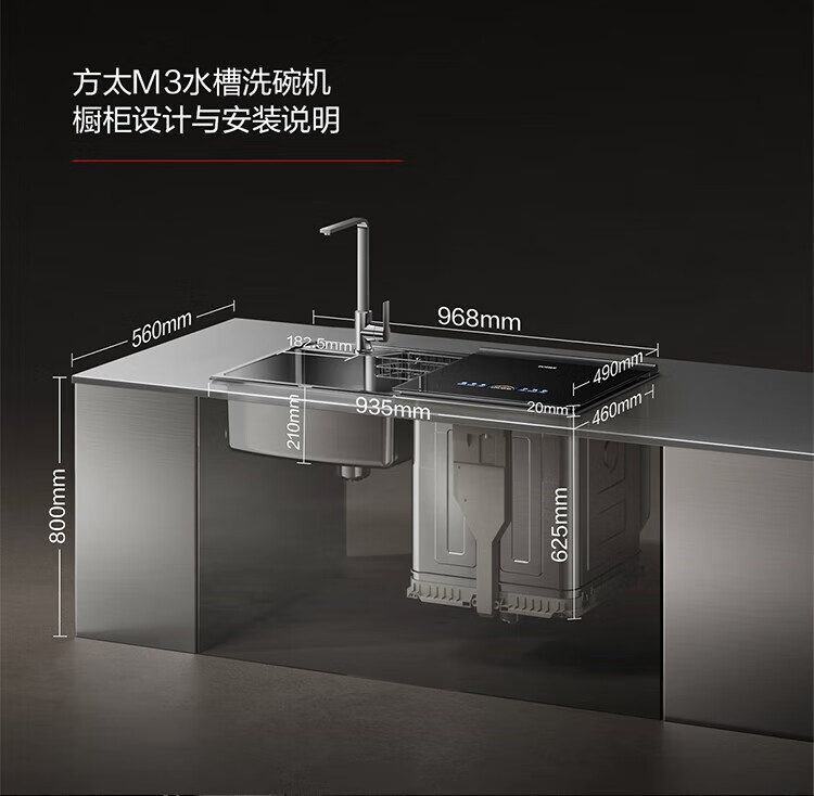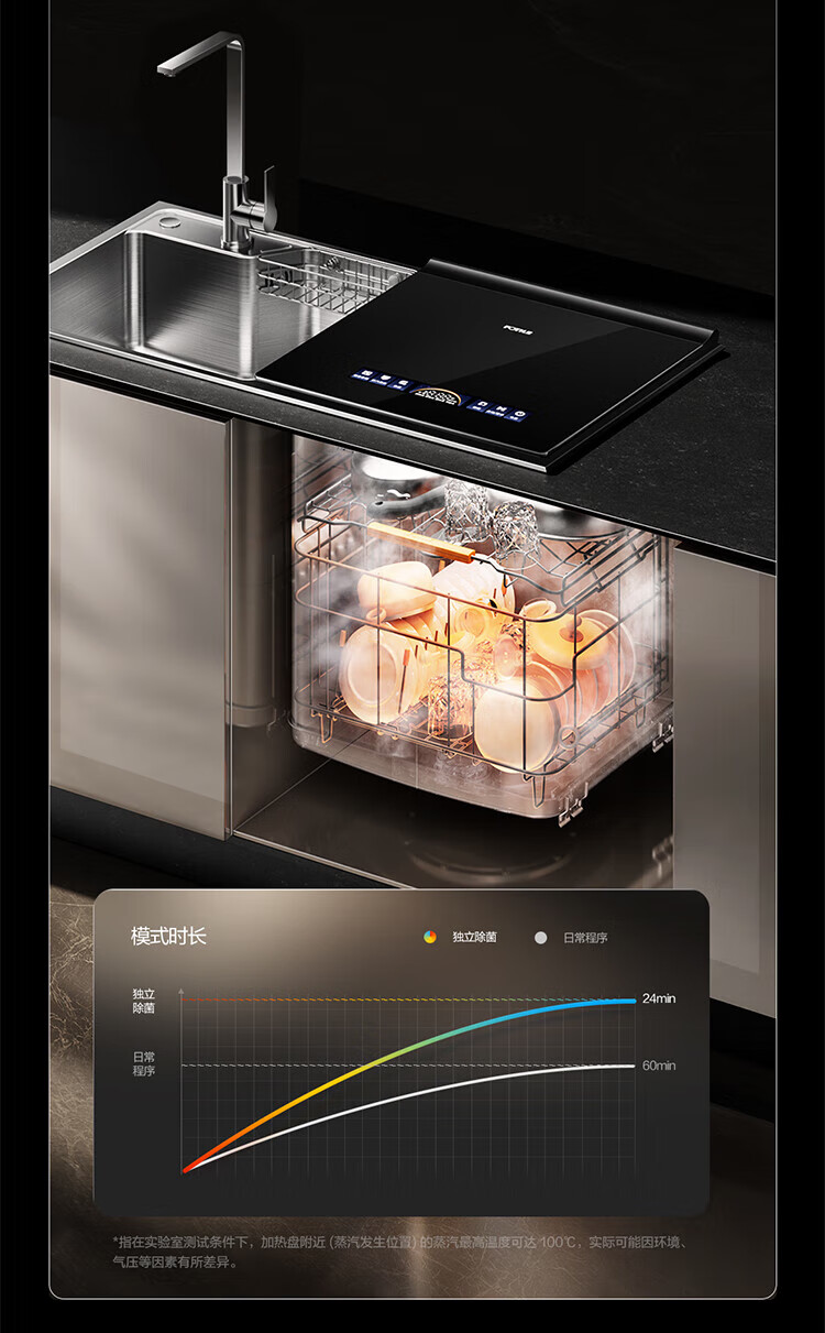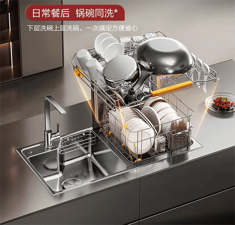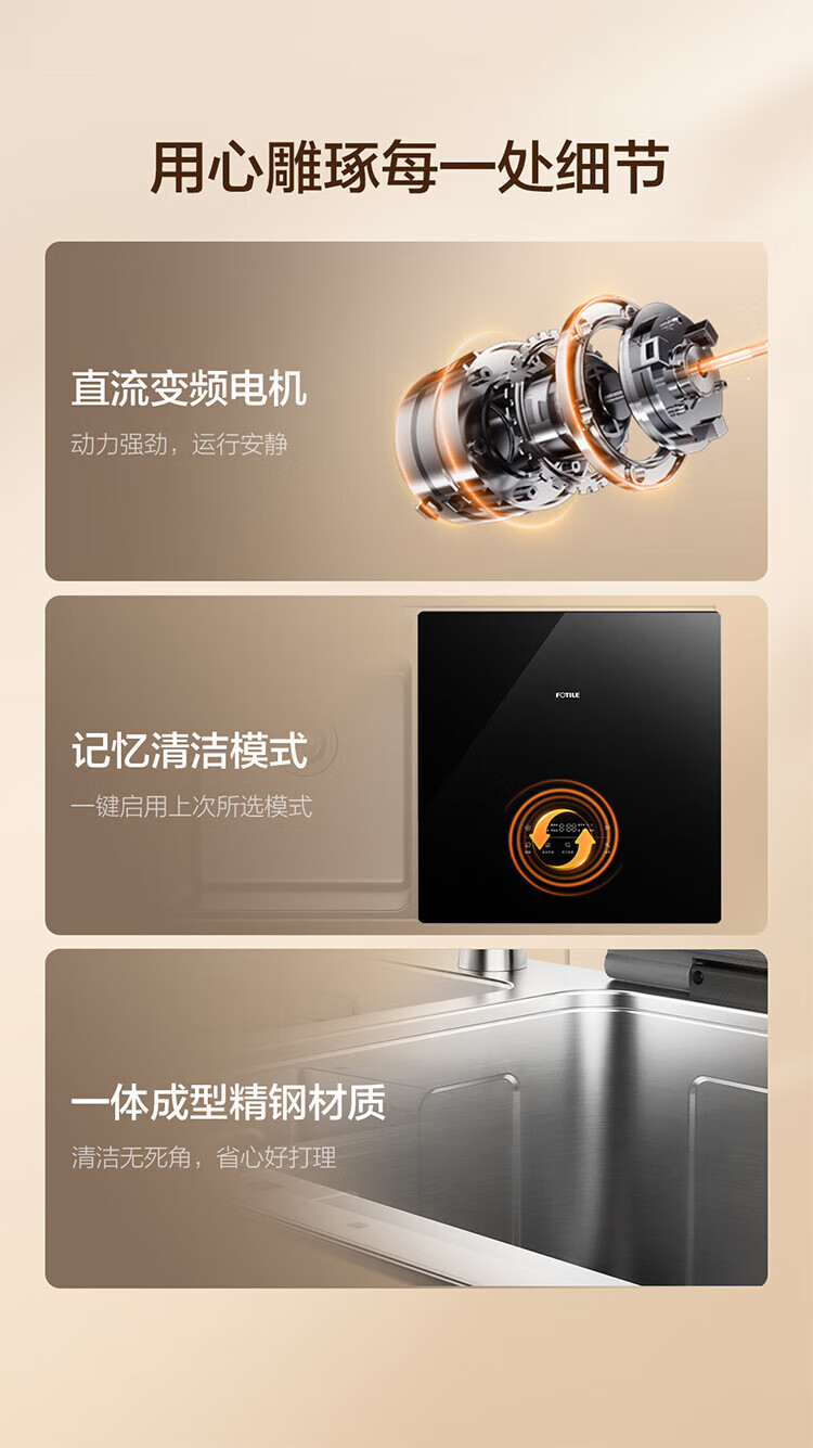 Fotile sink dishwasher 02-M series sink integrated large capacity stainless steel liner kitchen household fruit and vegetable cleaning long-lasting cleaning hot air drying high-energy bubble washing without bending 10 sets 02-M3L (dishwasher on the left)
