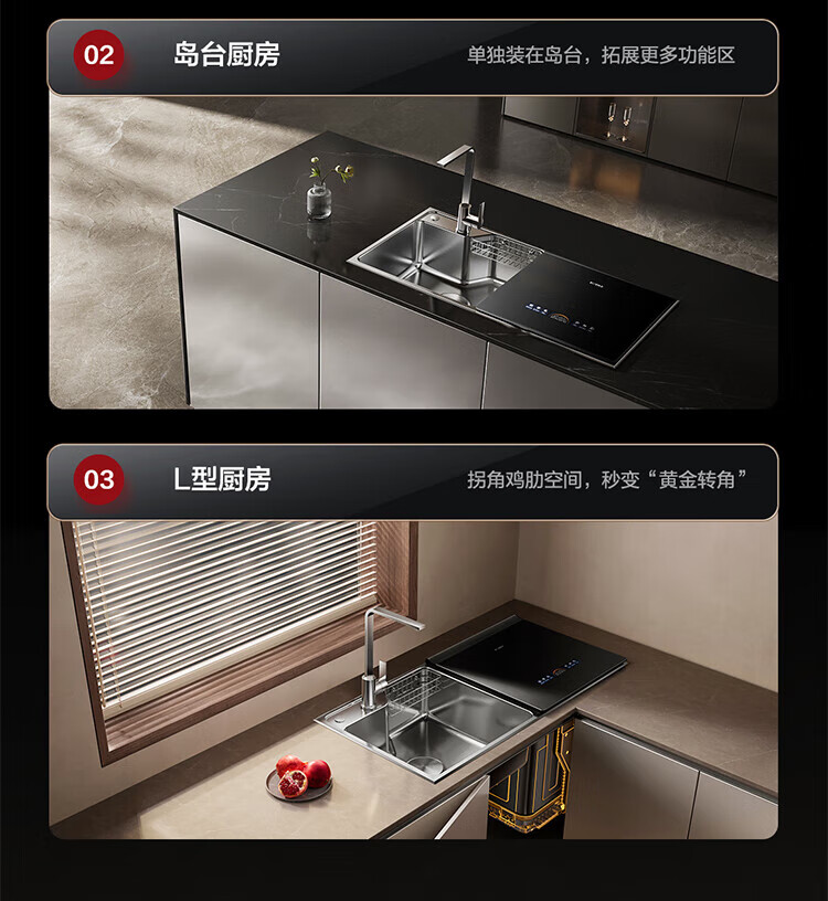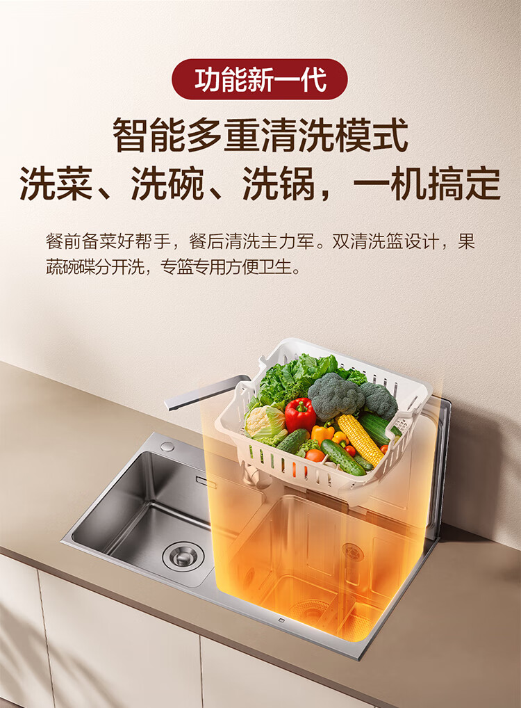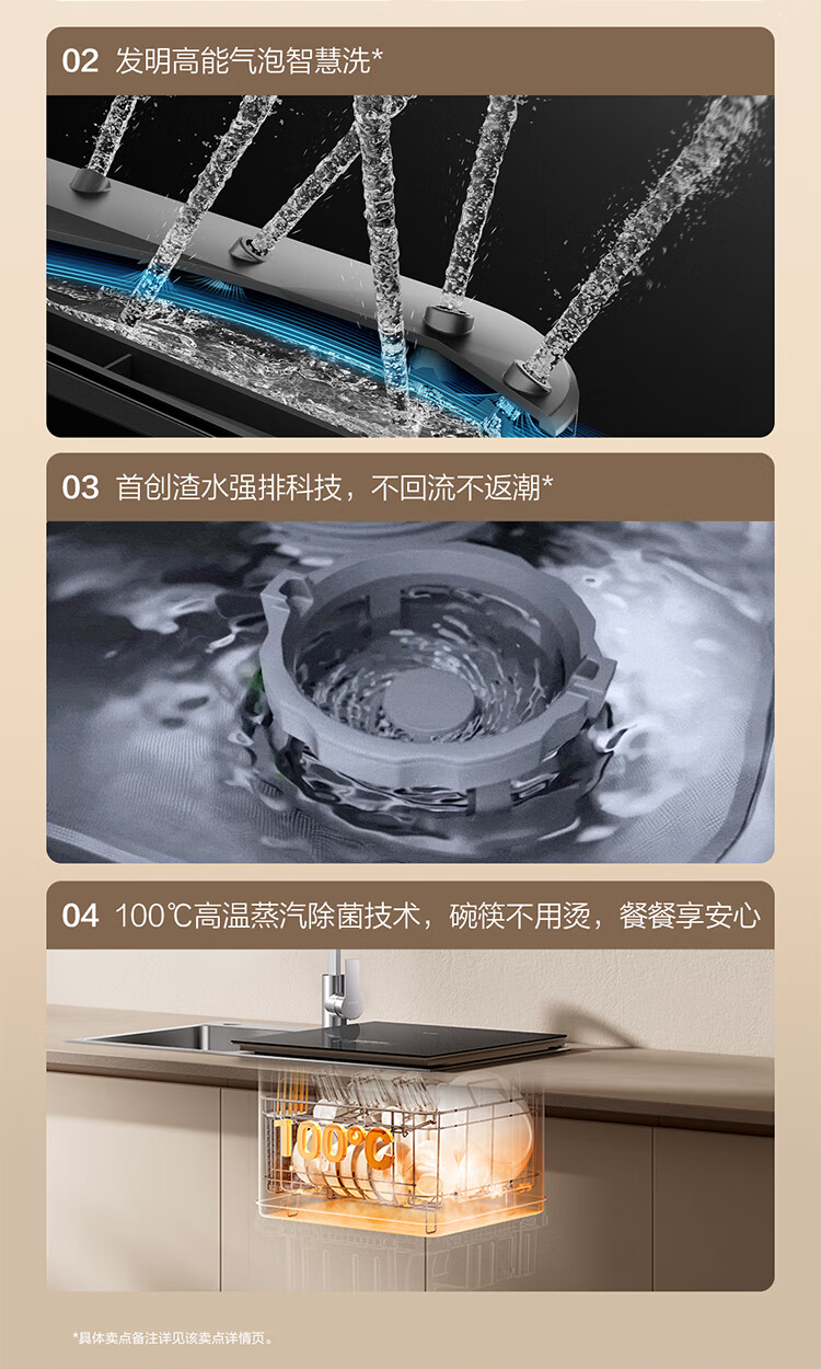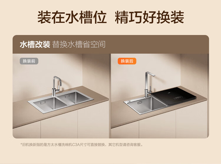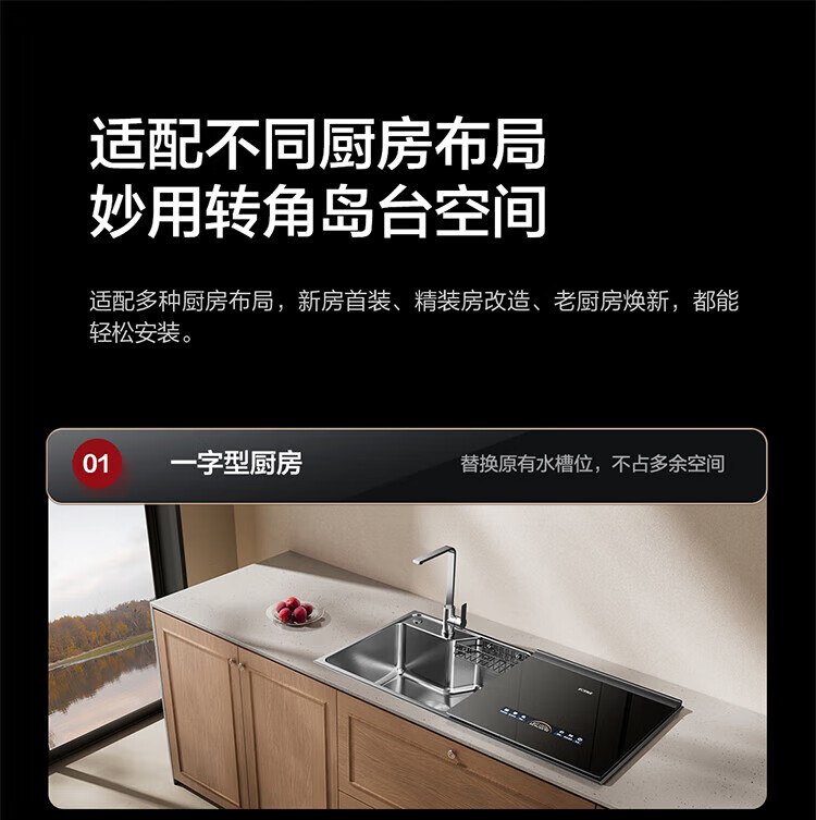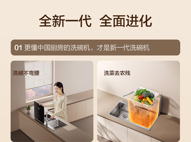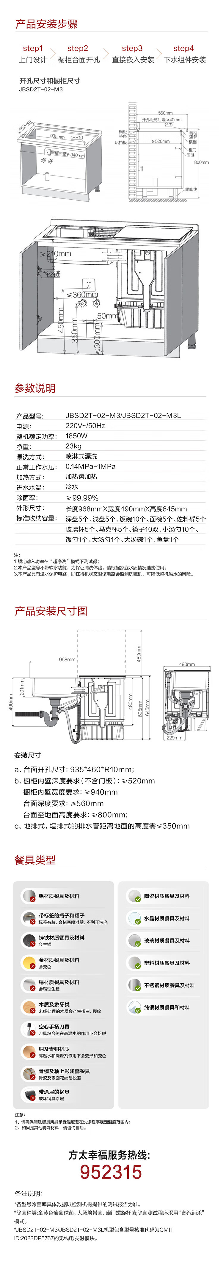 Fotile sink dishwasher 02-M series sink integrated large capacity stainless steel liner kitchen household fruit and vegetable cleaning long-lasting cleaning hot air drying high-energy bubble washing without bending 10 sets 02-M3L (dishwasher on the left)