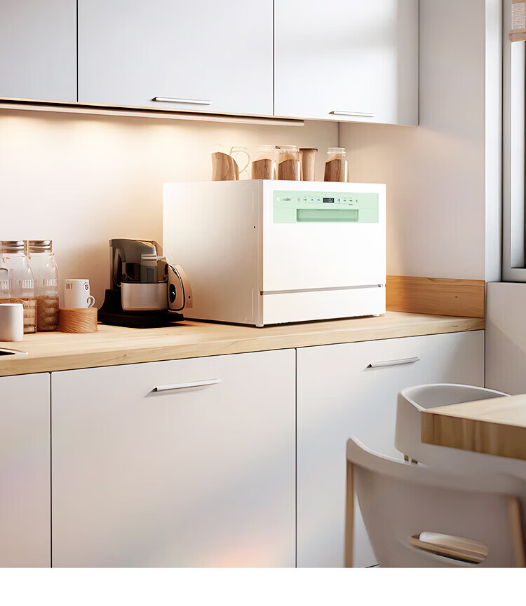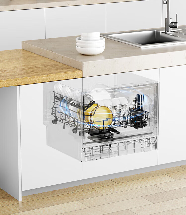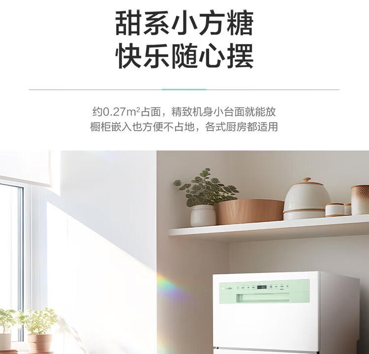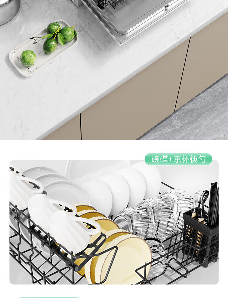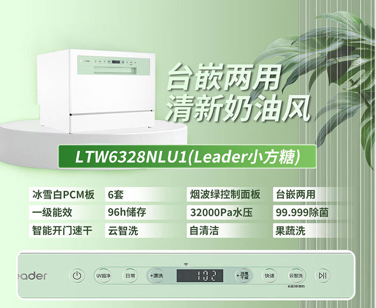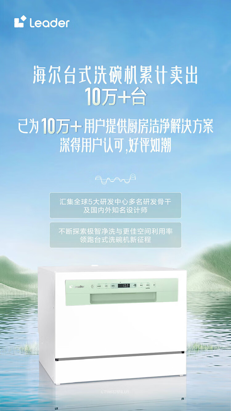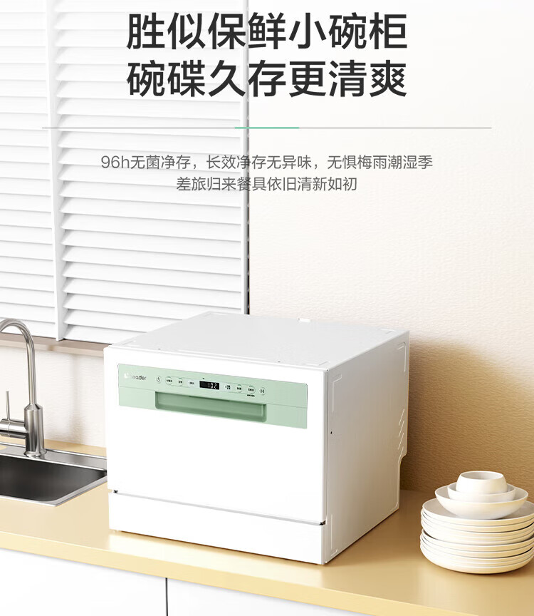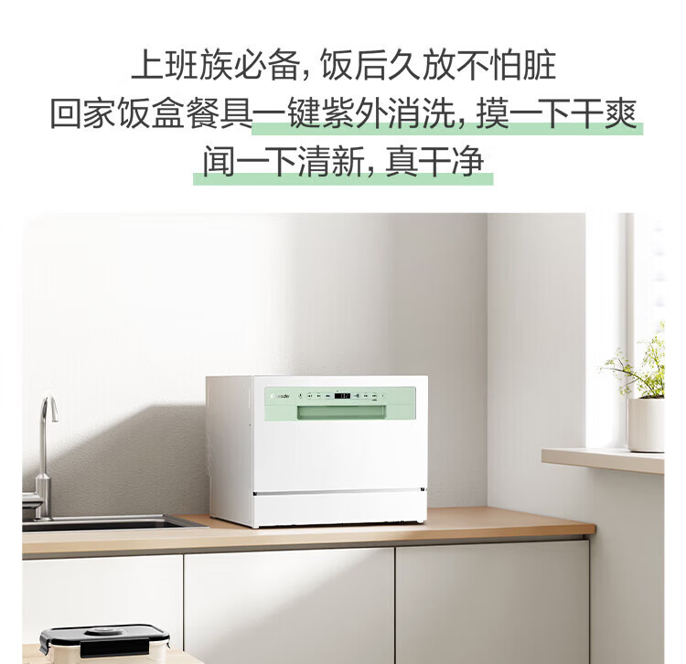 Haier desktop dishwasher, 6 sets, small household, table-embedded, dual-purpose, high temperature + independent UV sterilization and decontamination, integrated smart door opening, quick drying, Haier's Leader small sugar cube, nearest warehouse, UV ultraviolet independent sterilization + 80 C high temperature steam washing