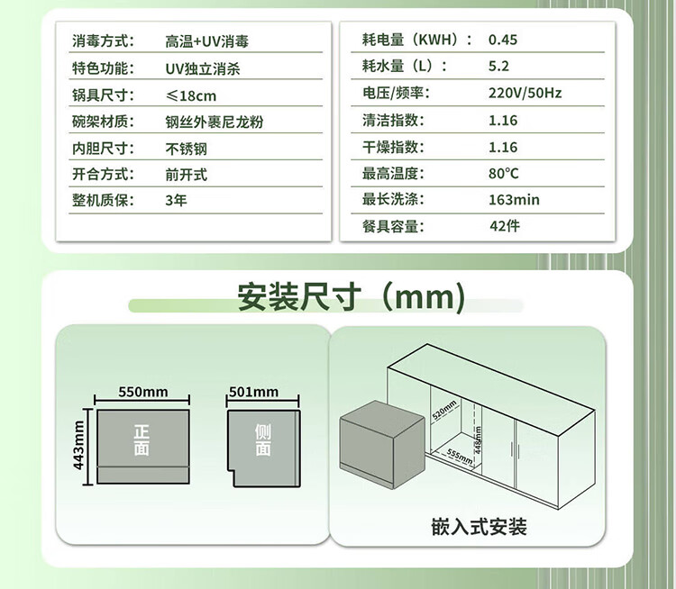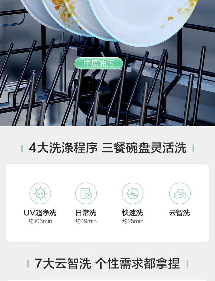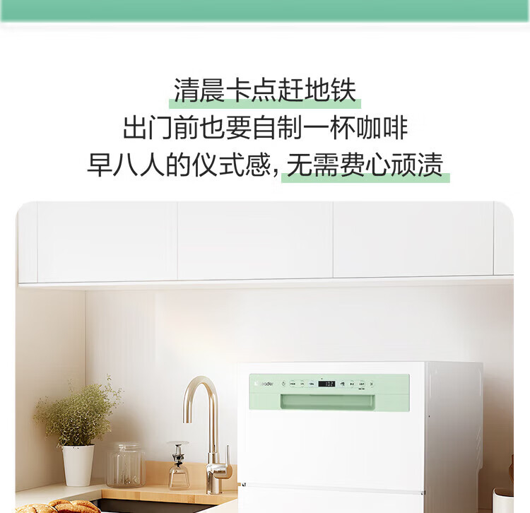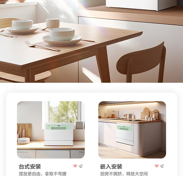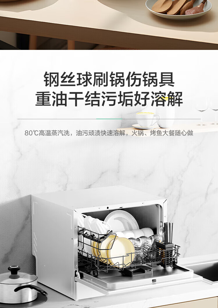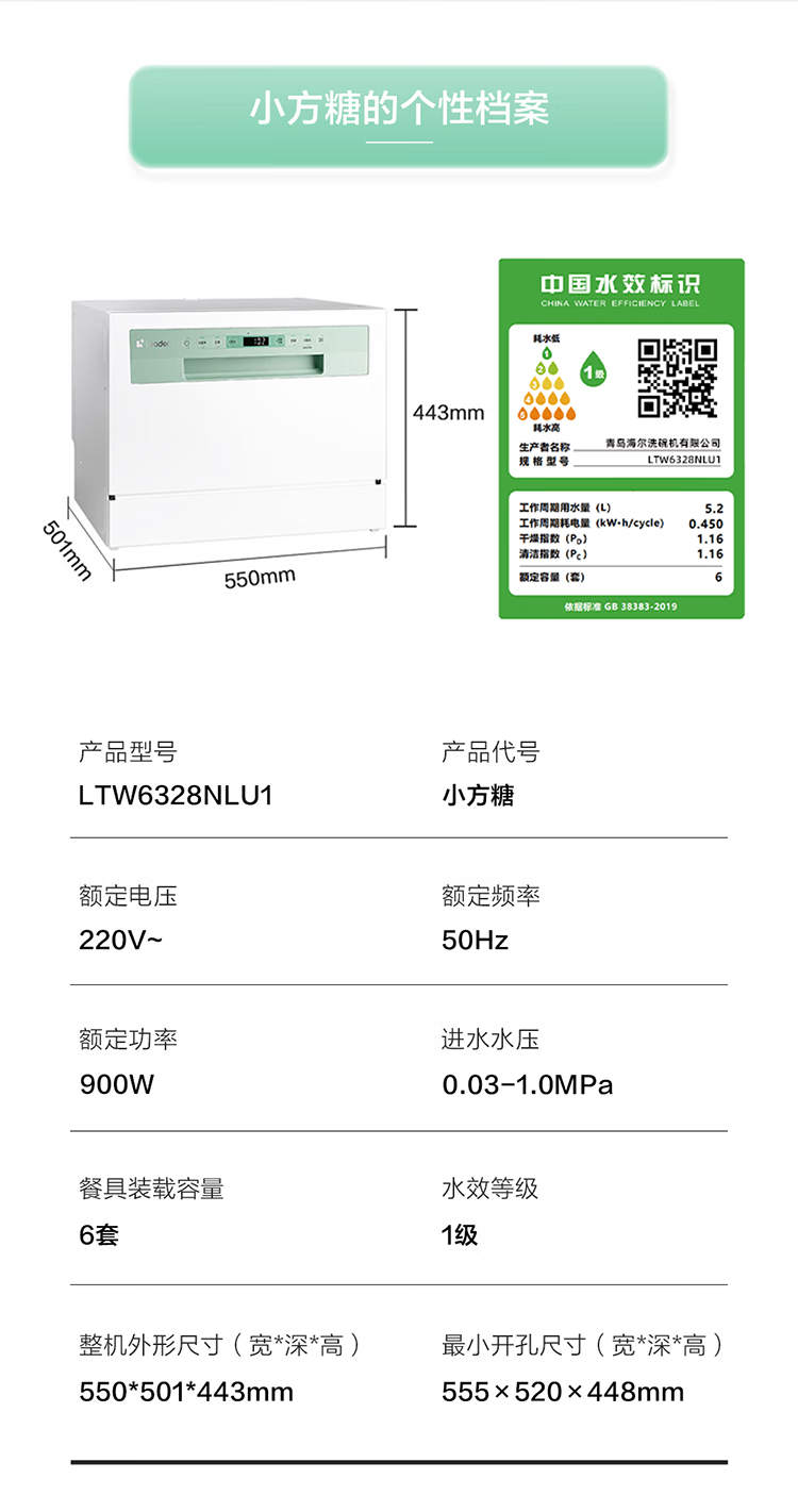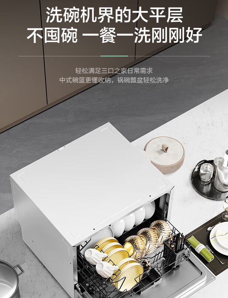 Haier desktop dishwasher, 6 sets, small household, table-embedded, dual-purpose, high temperature + independent UV sterilization and decontamination, integrated smart door opening, quick drying, Haier's Leader small sugar cube, nearest warehouse, UV ultraviolet independent sterilization + 80 C high temperature steam washing