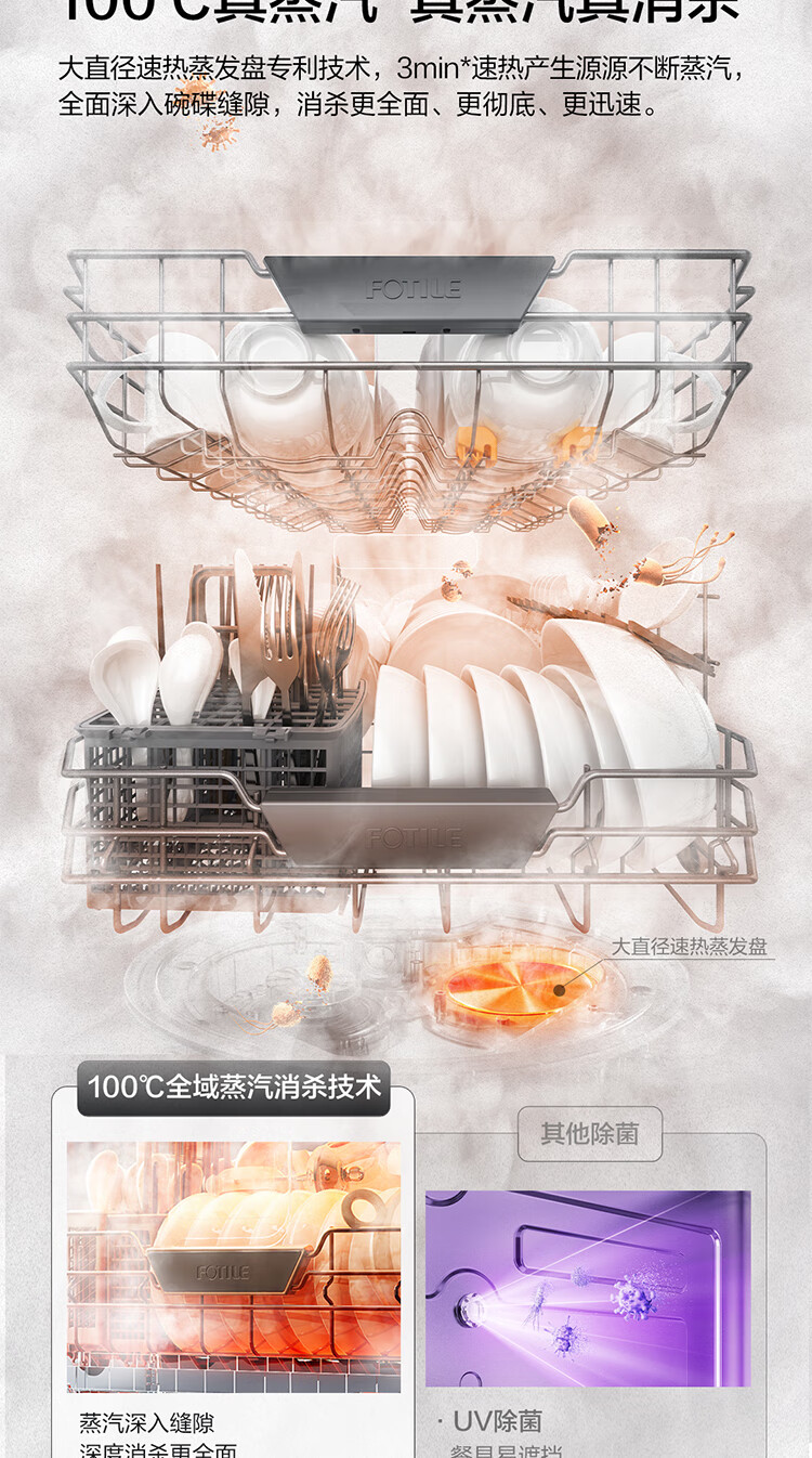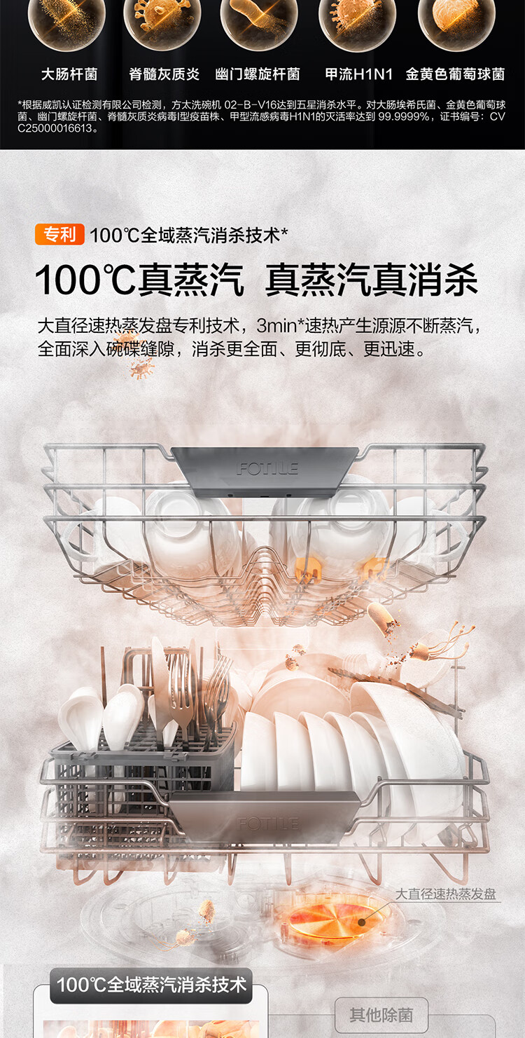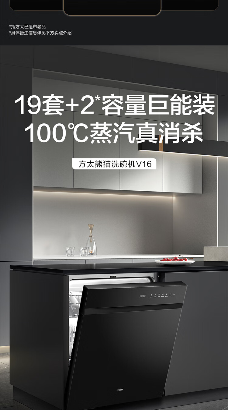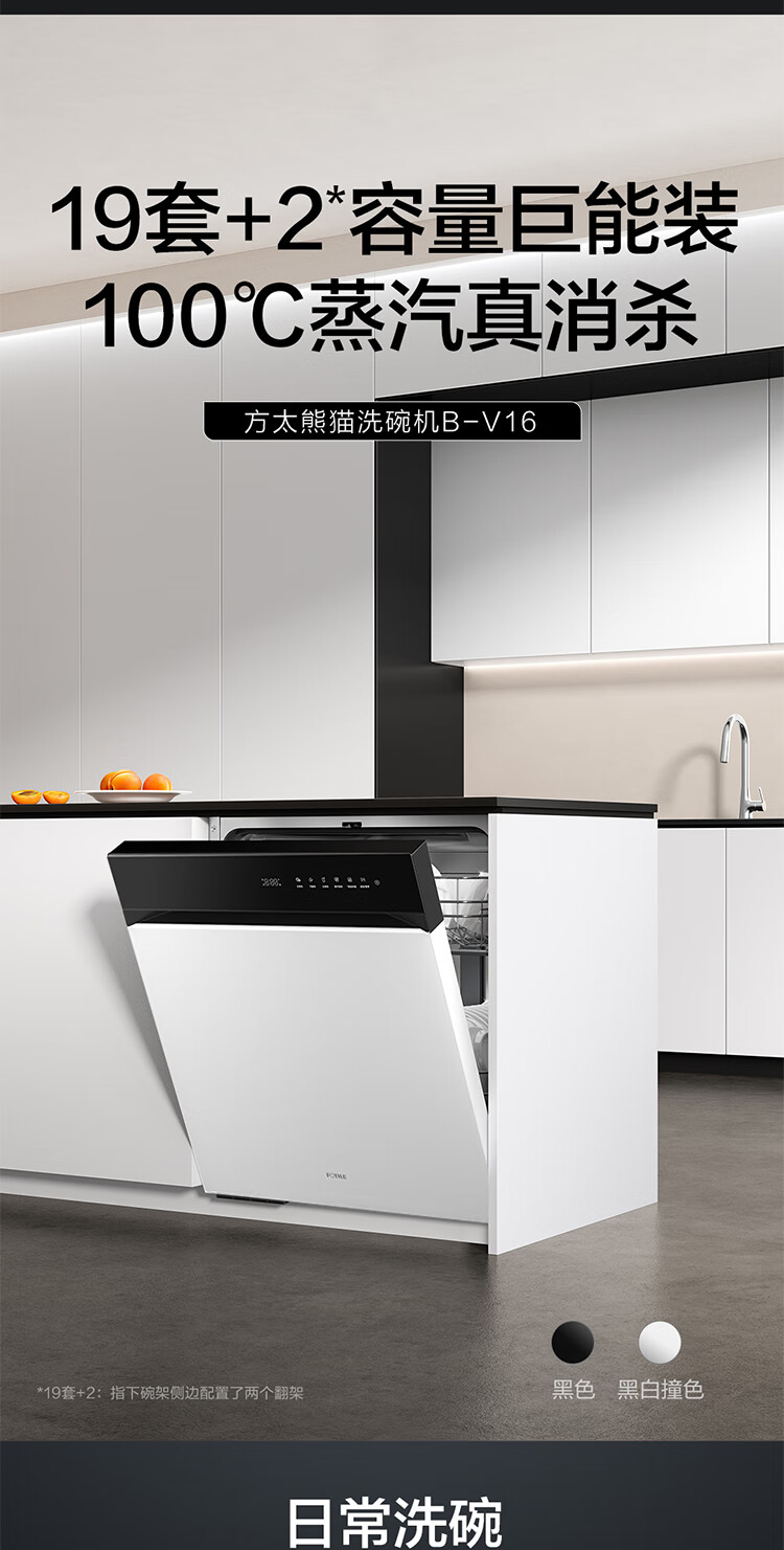 FOTILE Dishwasher 02-V16 Embedded V Series Dishwasher 19 Sets Large Capacity Independent Steam Sterilization Patented High-Energy Bubble Wash First-Class Water Efficiency 20% Subsidy Black 02-V16