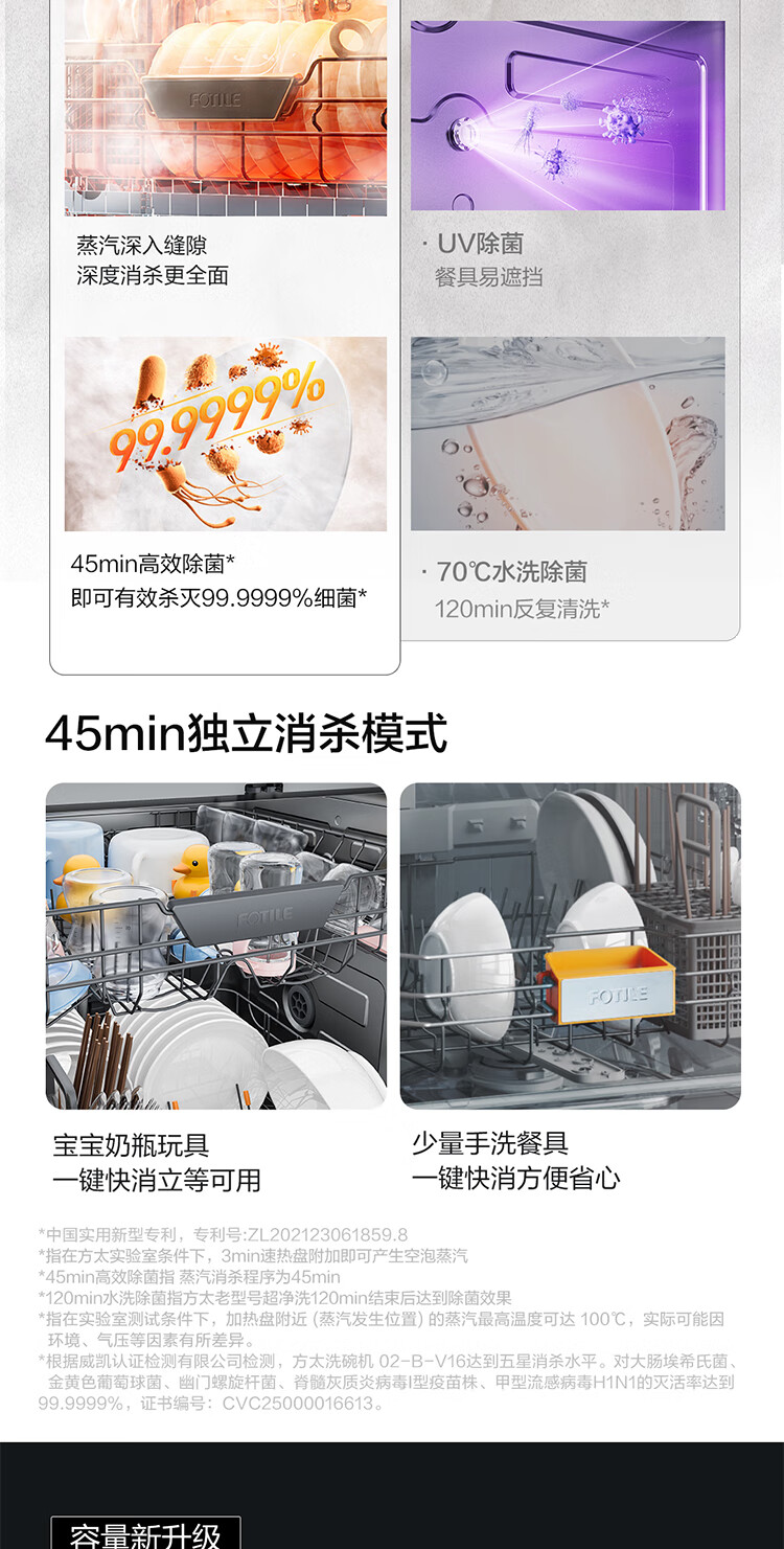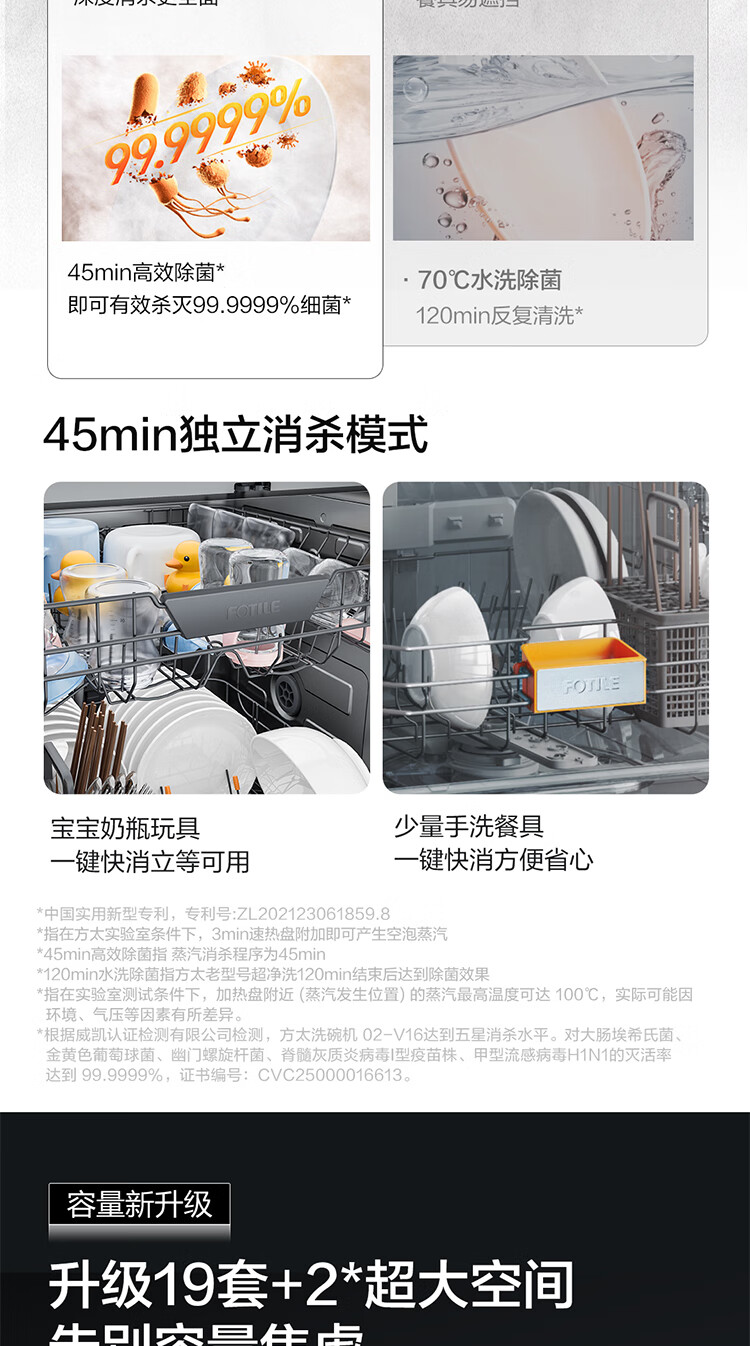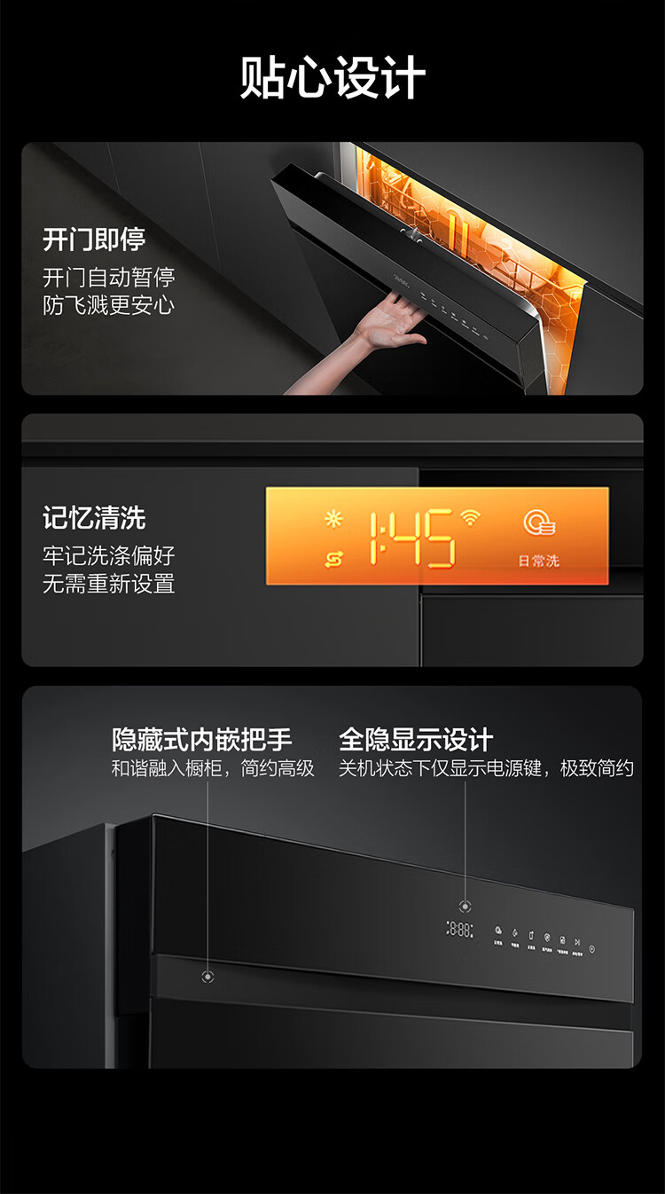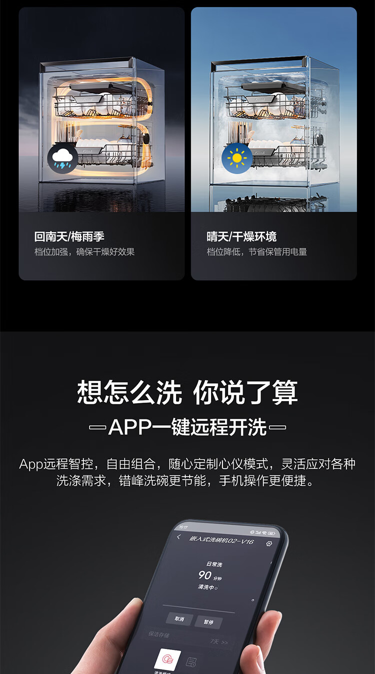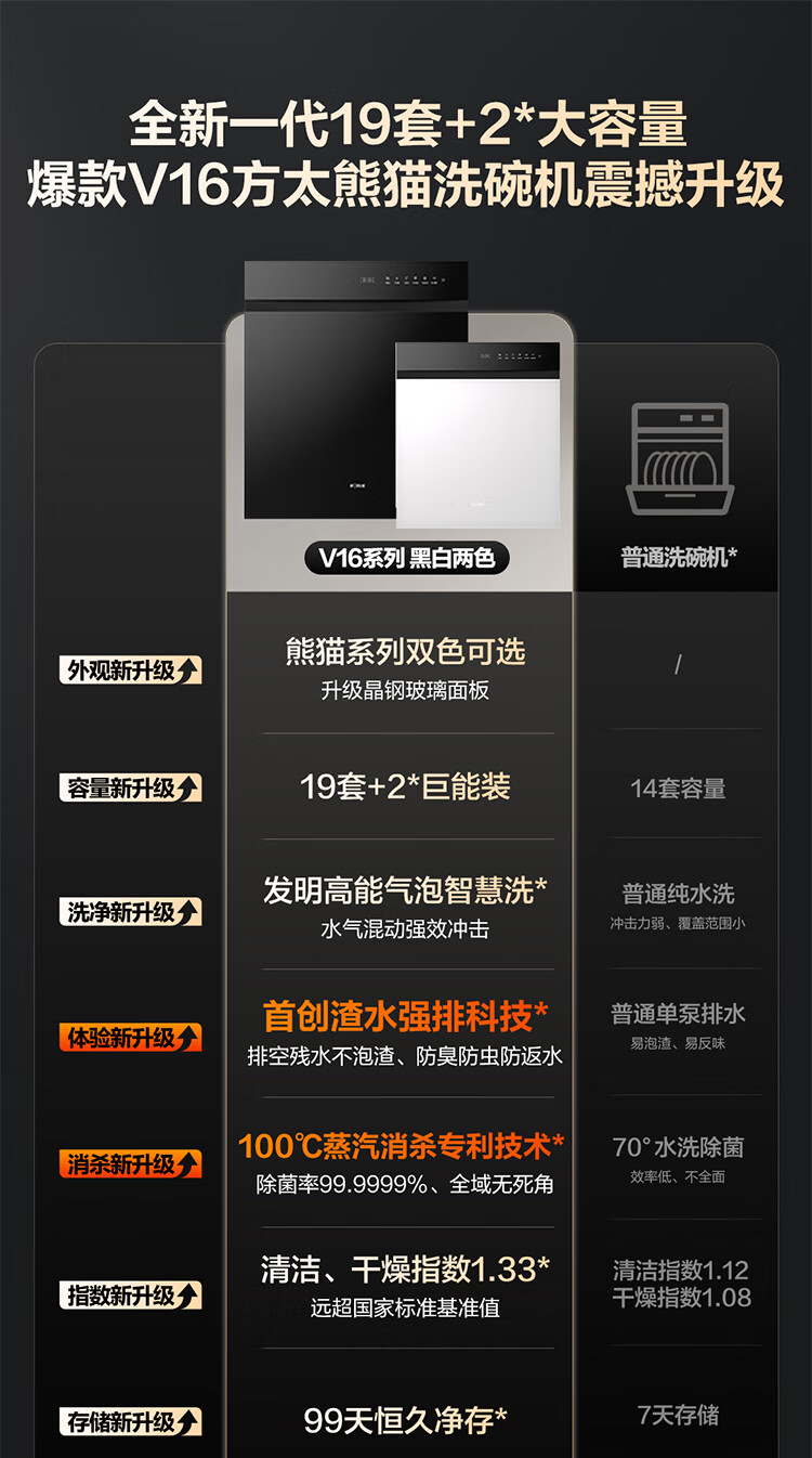 FOTILE Dishwasher 02-V16 Embedded V Series Dishwasher 19 Sets Large Capacity Independent Steam Sterilization Patented High-Energy Bubble Wash First-Class Water Efficiency 20% Subsidy Black 02-V16