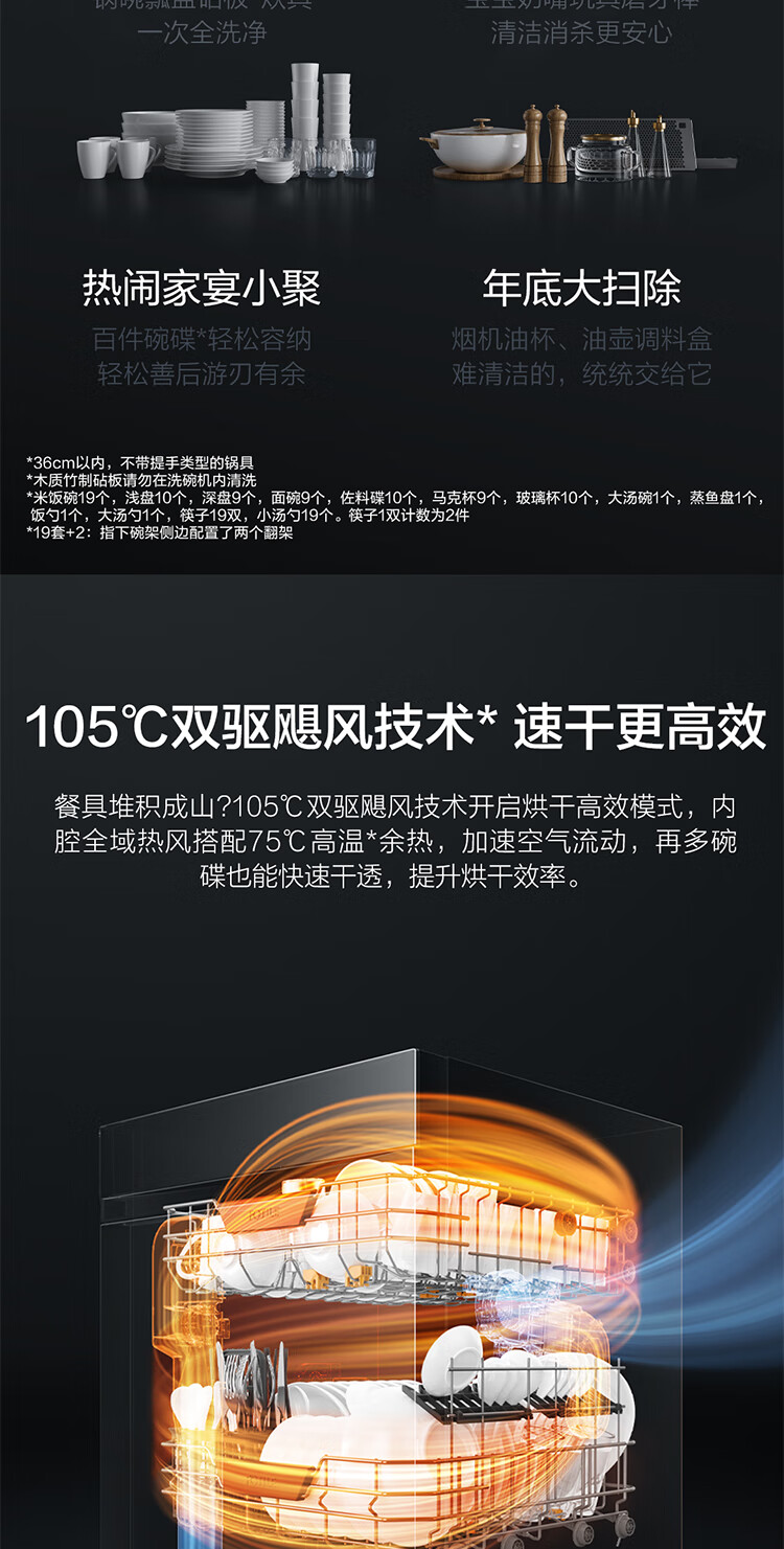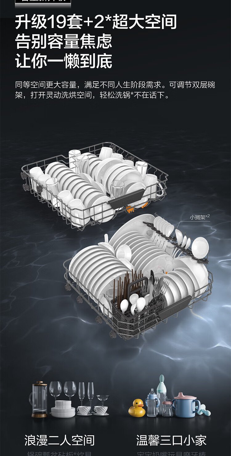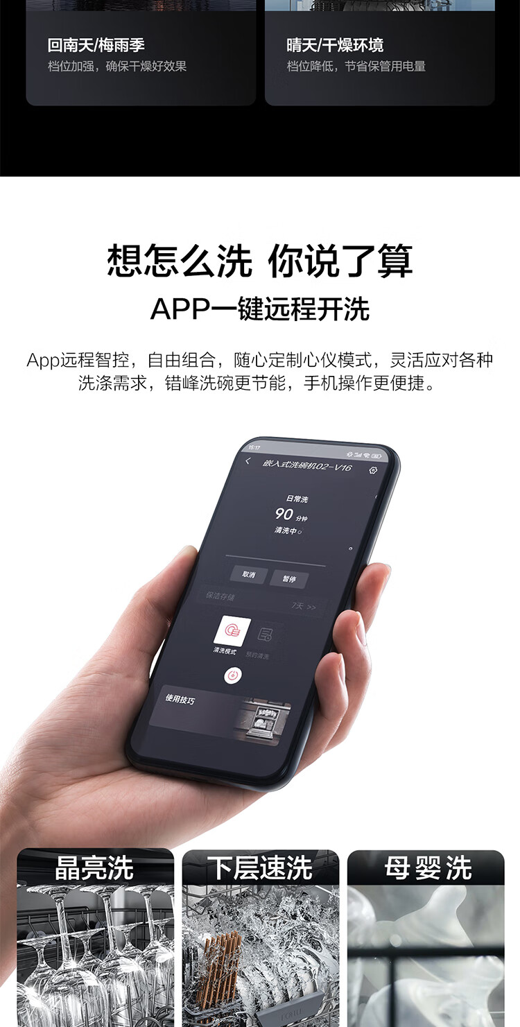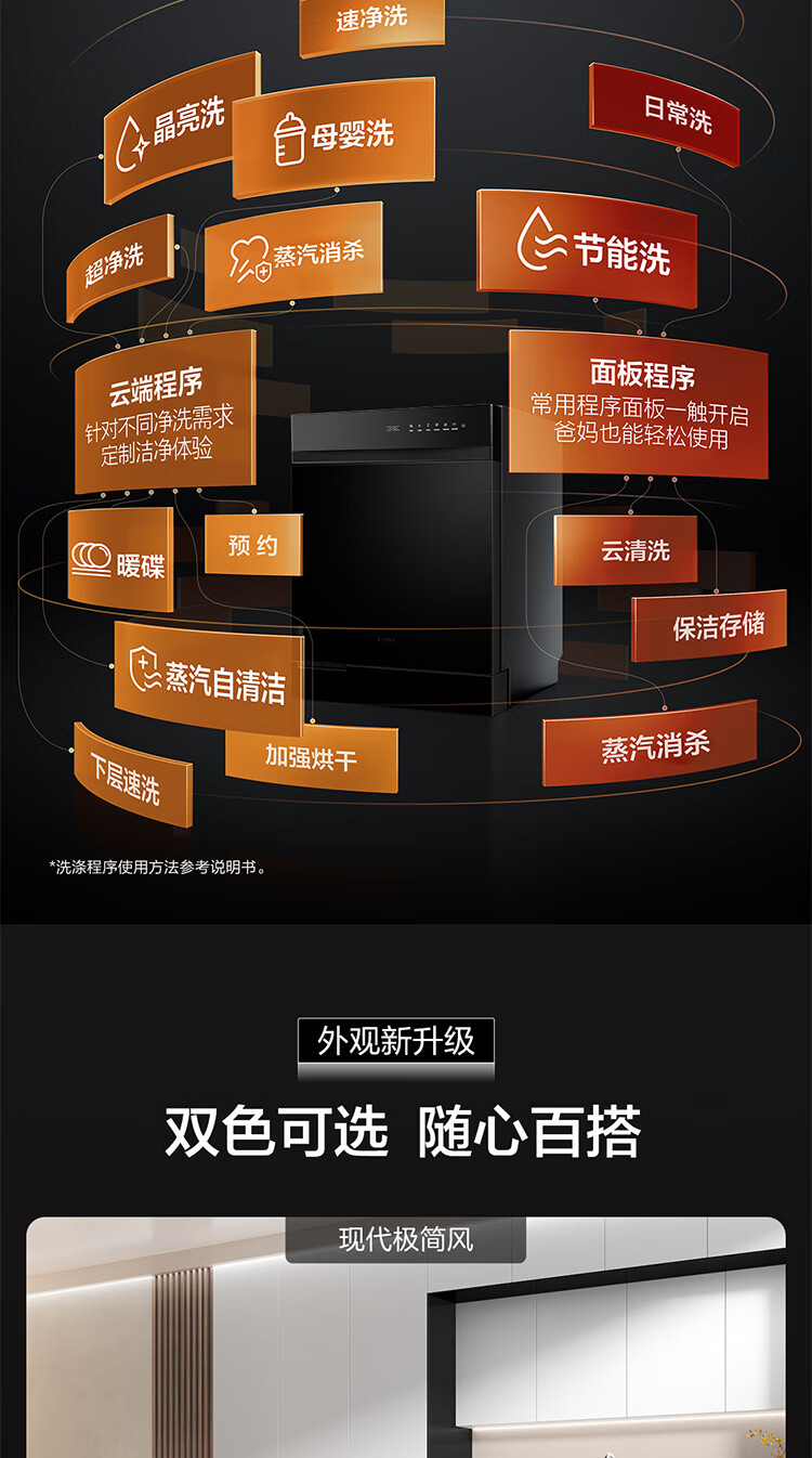 FOTILE Dishwasher 02-V16 Embedded V Series Dishwasher 19 Sets Large Capacity Independent Steam Sterilization Patented High-Energy Bubble Wash First-Class Water Efficiency 20% Subsidy Black 02-V16