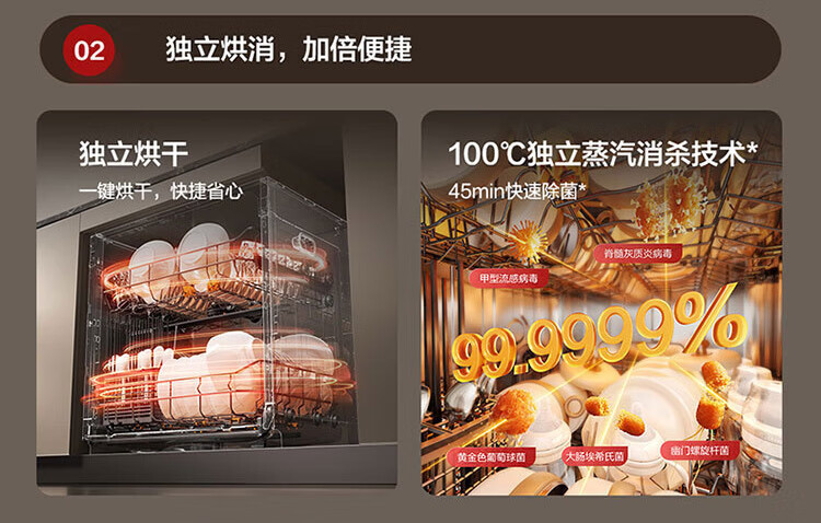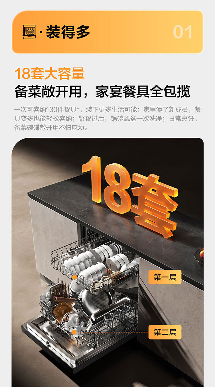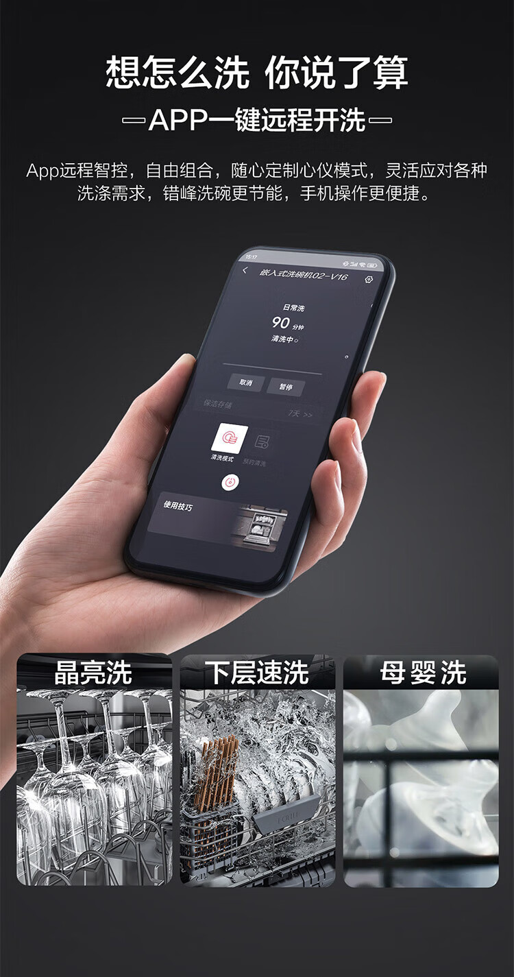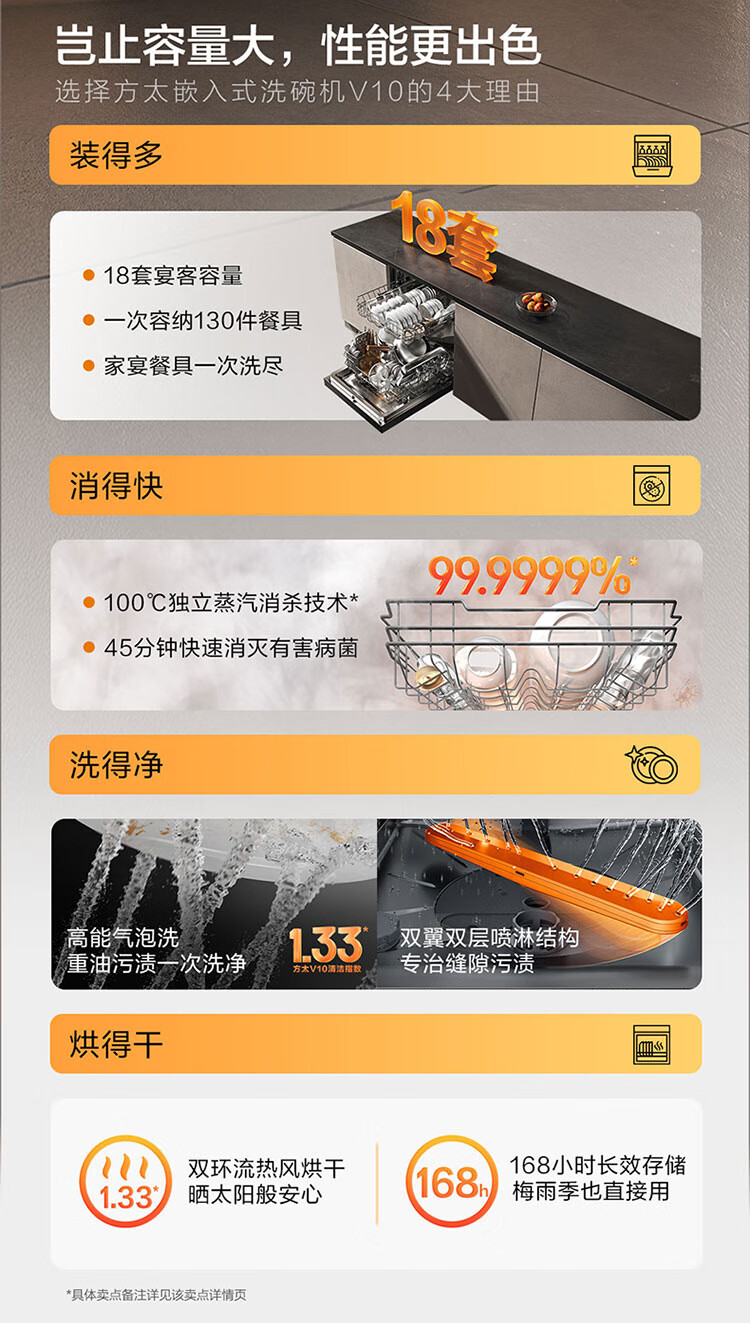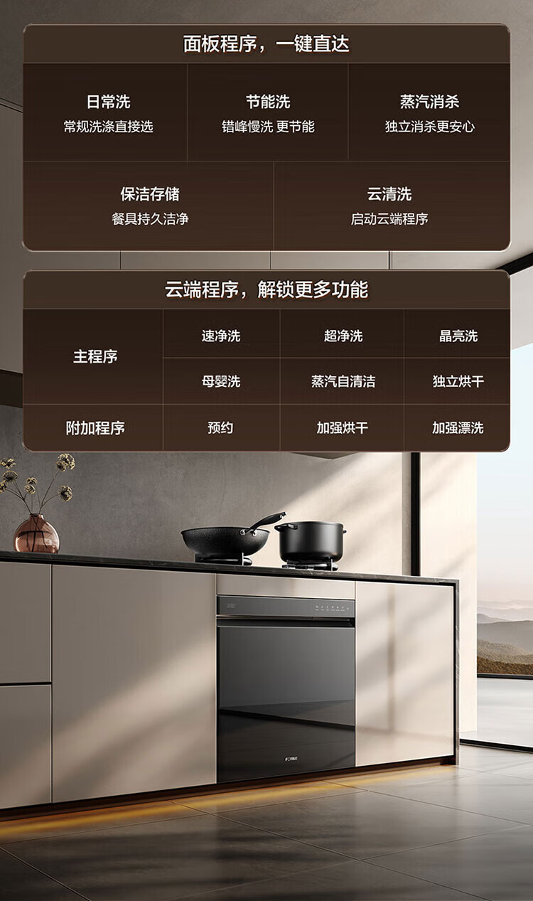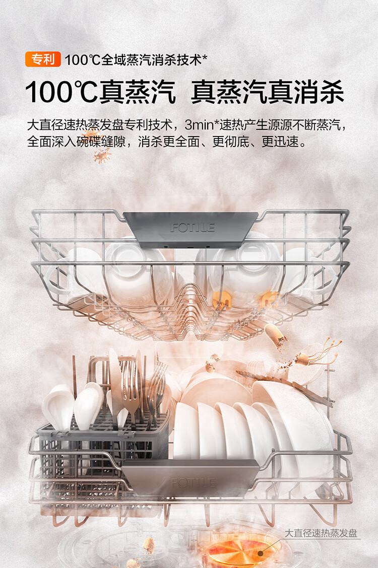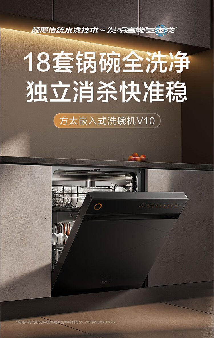 FOTILE official V16 dishwasher 02-V6 upgraded model, built-in integrated kitchen household 19 sets of large capacity dishwashers, independent steam sterilization, high energy bubble washing and washable pots, new product upgrades, 19 sets of dishwashers 02-V16