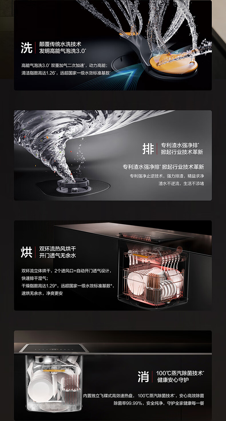 Fotile built-in dishwasher JBSD1F-03-T2 sink vegetable washer with large capacity, double-layered pots and bowls washing at the same time, professional washing of fruits, vegetables and seafood, integrated washing, draining, drying and storage JBSD1F-03-T2
