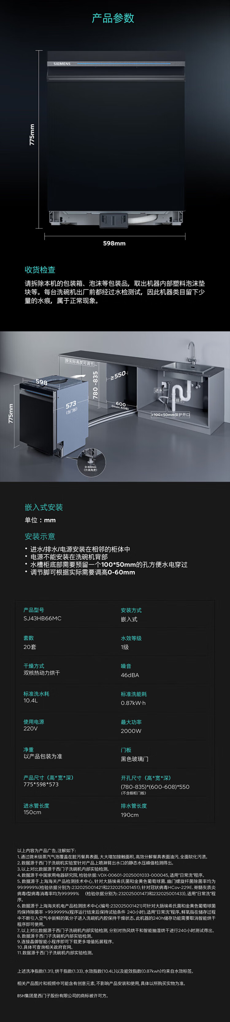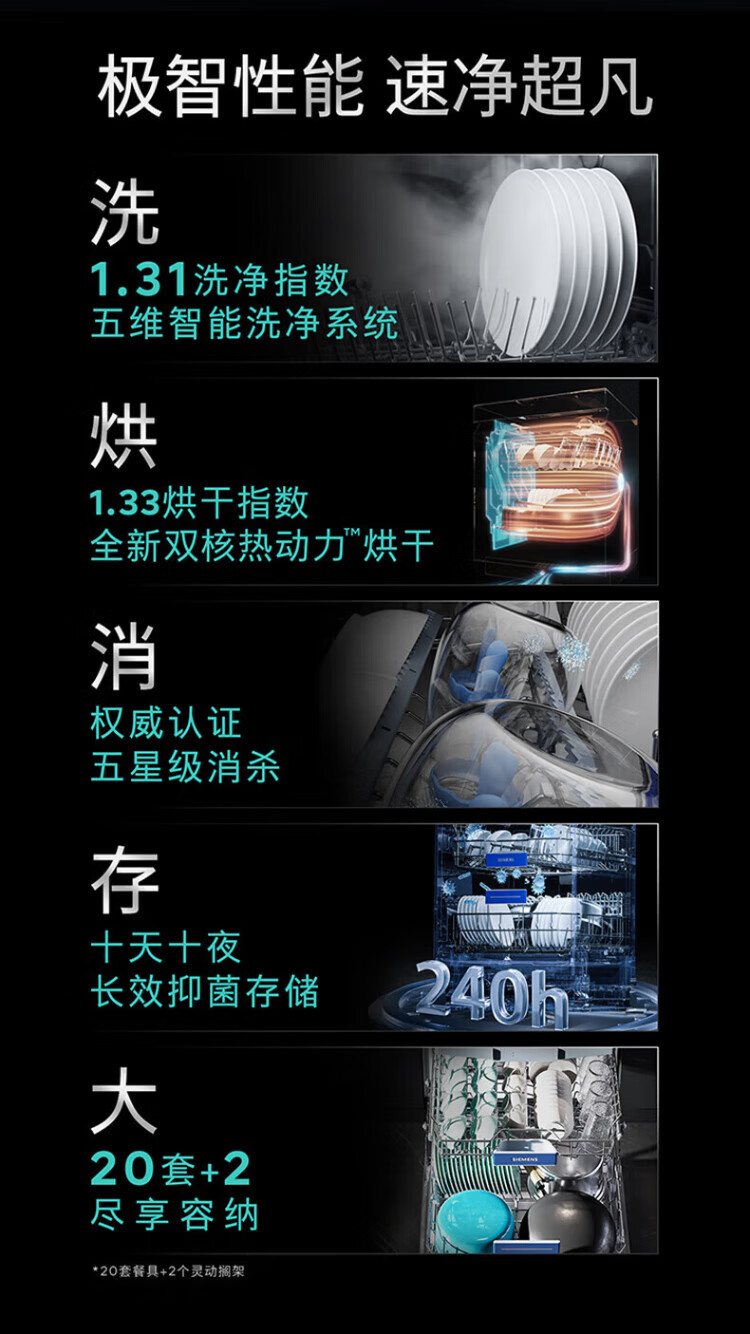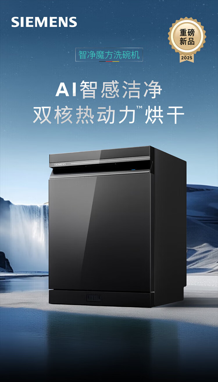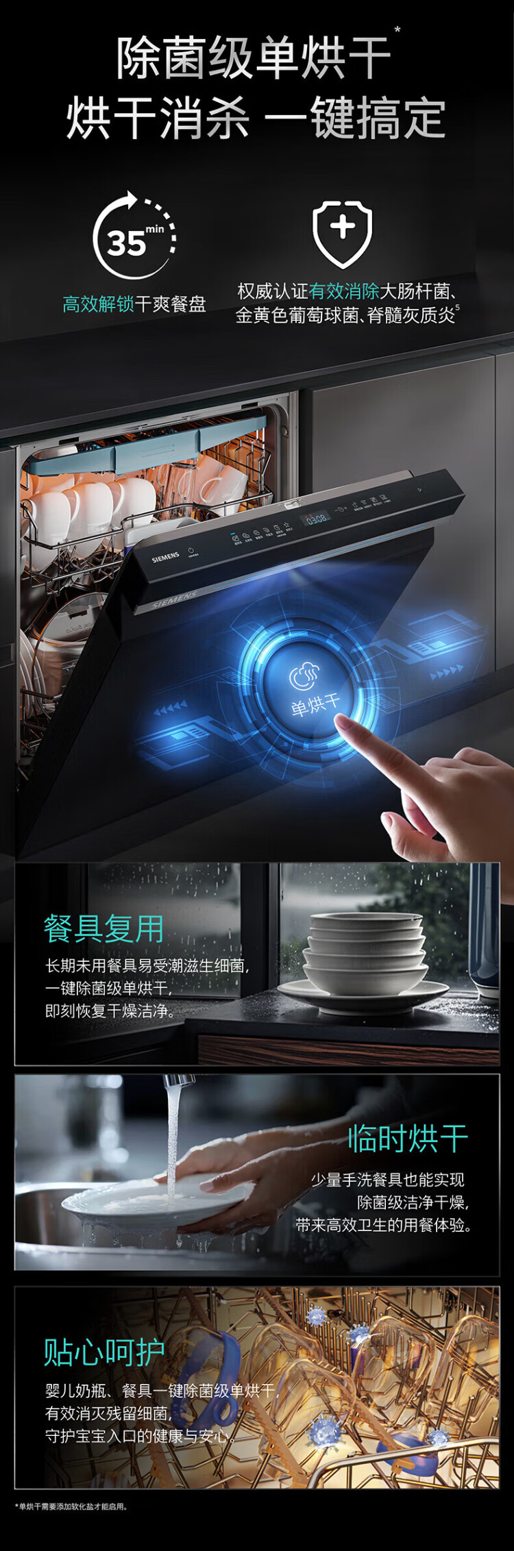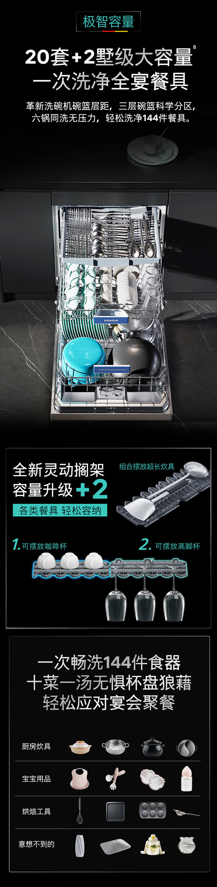 SIEMENS's blockbuster new product 20 sets of built-in dishwashers with super five-star sterilization AI intelligent dual-core thermal power patented tornado to forcefully discharge residues 240h antibacterial storage subsidy of 20% 20 sets丨Glass door panel SJ43HB66MC blockbuster new product