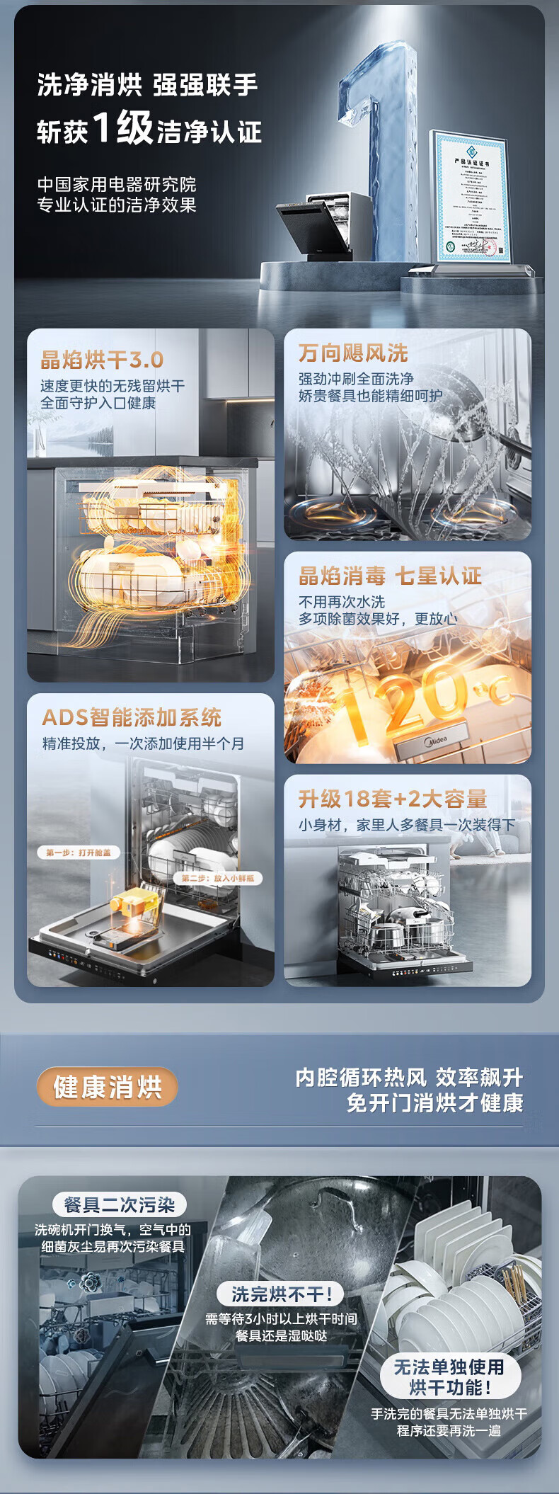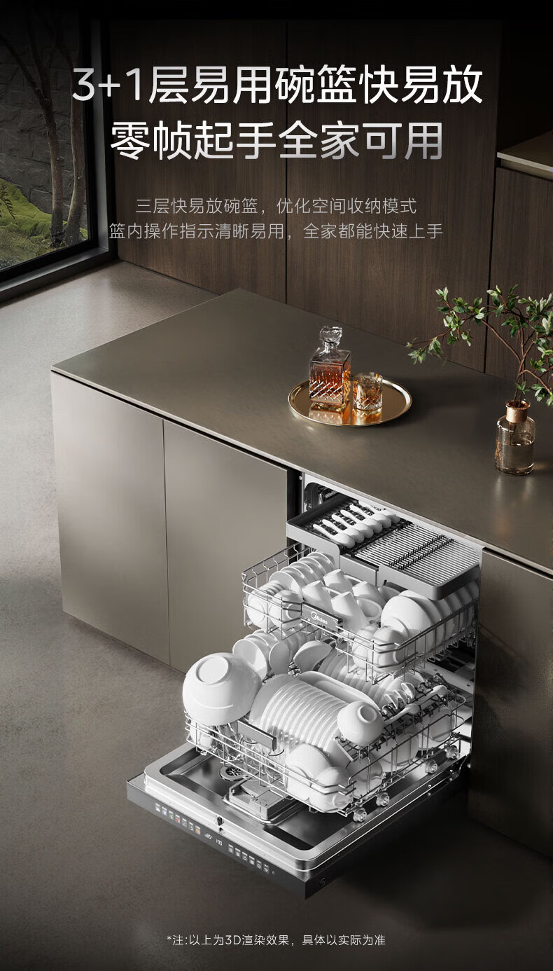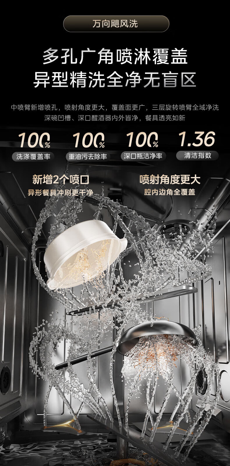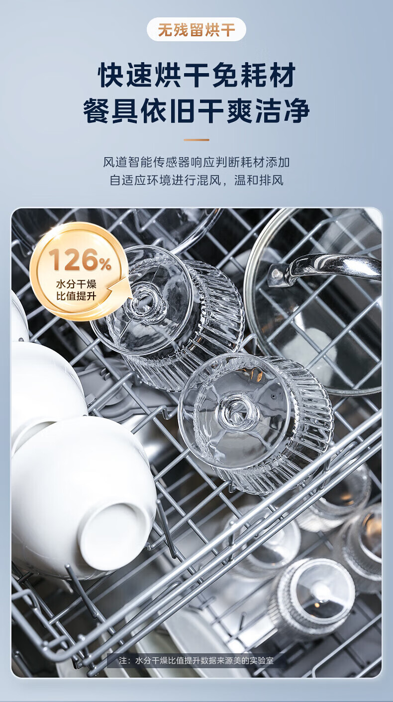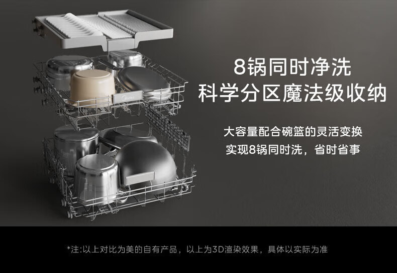 Midea Xiaoximei built-in crystal flame dishwasher, 25 sets of variable frequency large capacity, universal hurricane wash, intelligent five-arm hurricane wash, internal cycle drying and disinfection, 18 sets of intelligent investment GX1000SMax exclusive version