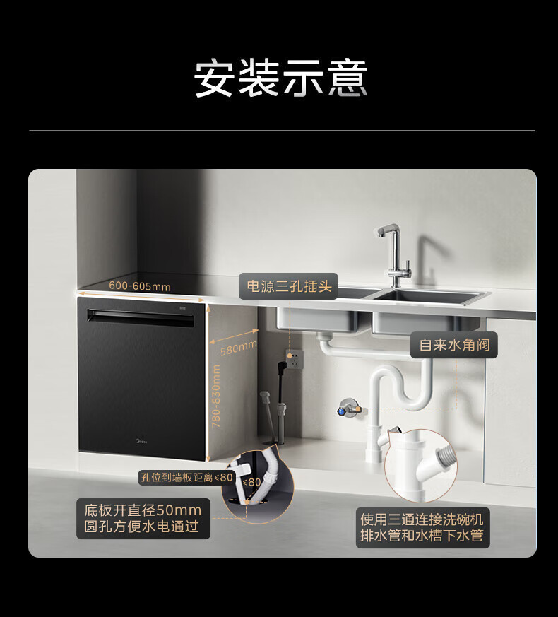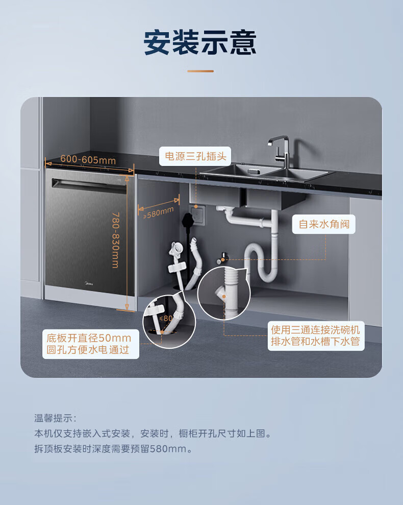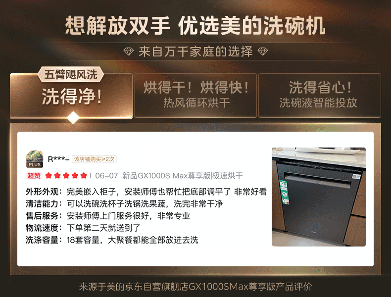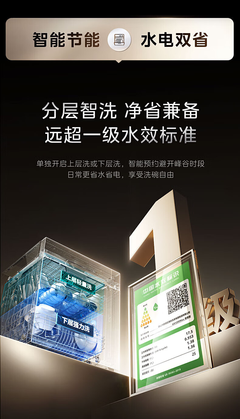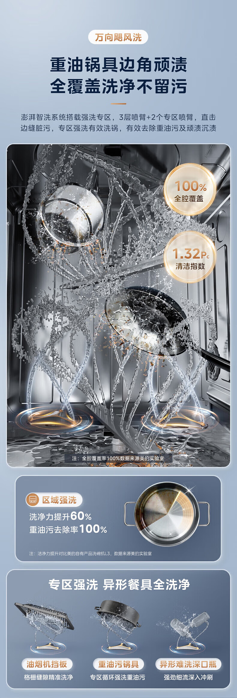 Midea Xiaoximei built-in crystal flame dishwasher, 25 sets of variable frequency large capacity, universal hurricane wash, intelligent five-arm hurricane wash, internal cycle drying and disinfection, 18 sets of intelligent investment GX1000SMax exclusive version