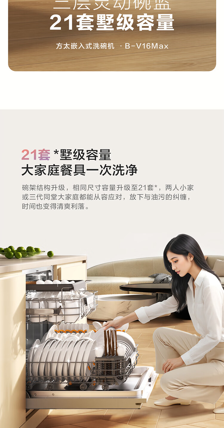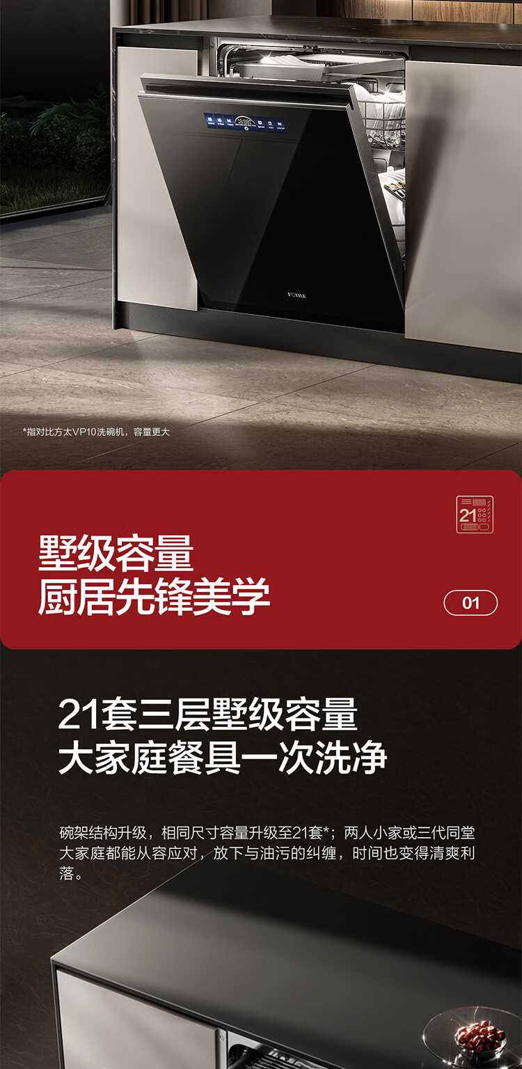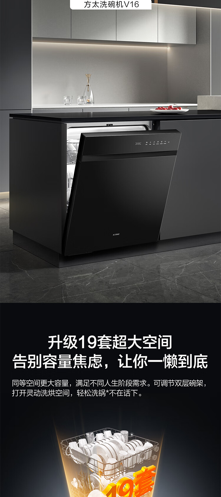FOTILE dishwasher 02-V16/V16Max household built-in dishwasher independent steam sterilization 19/21 sets large capacity high energy bubble washing hot air drying fully automatic 02-V16MAX 21 sets villa-level capacity