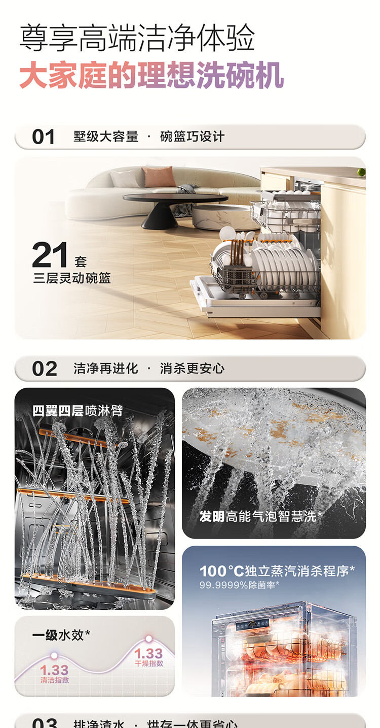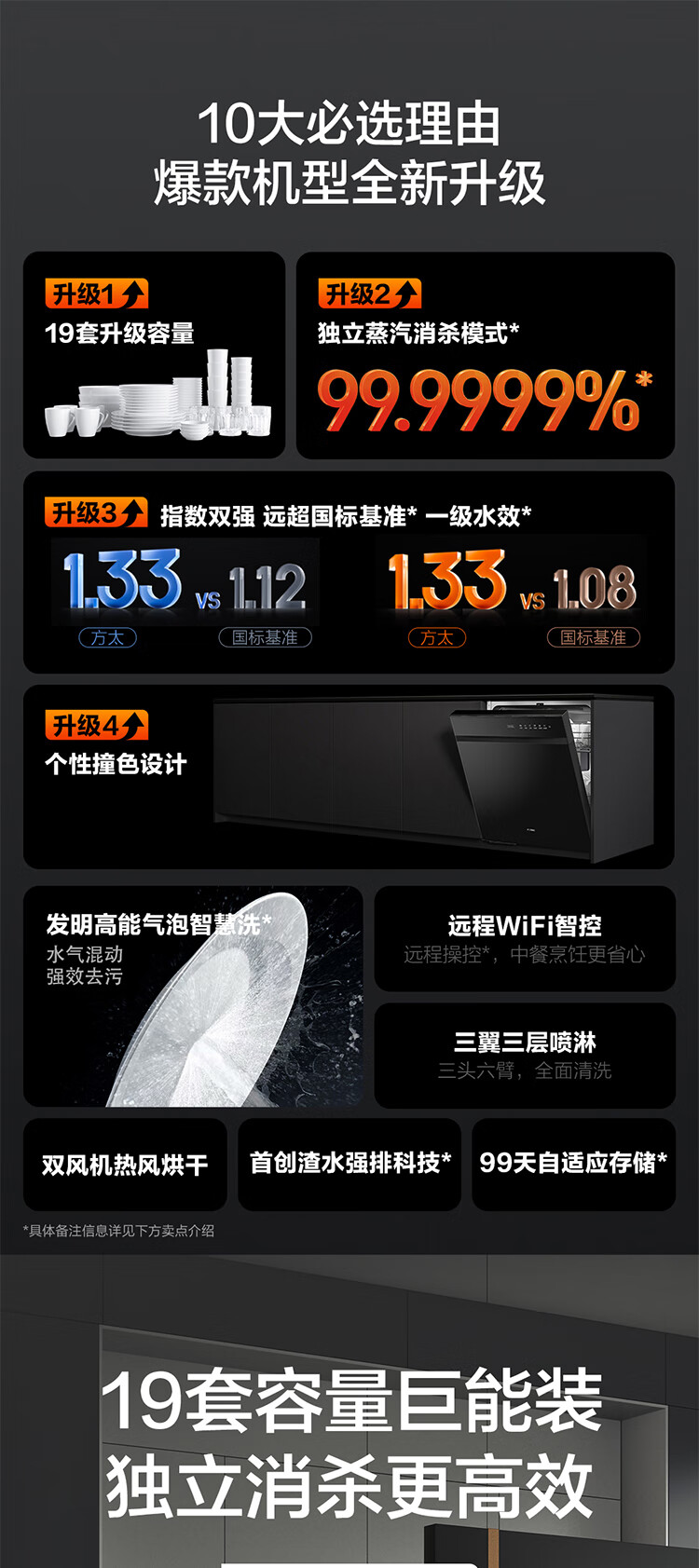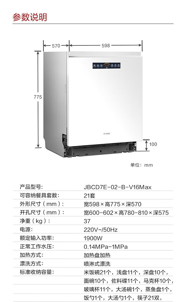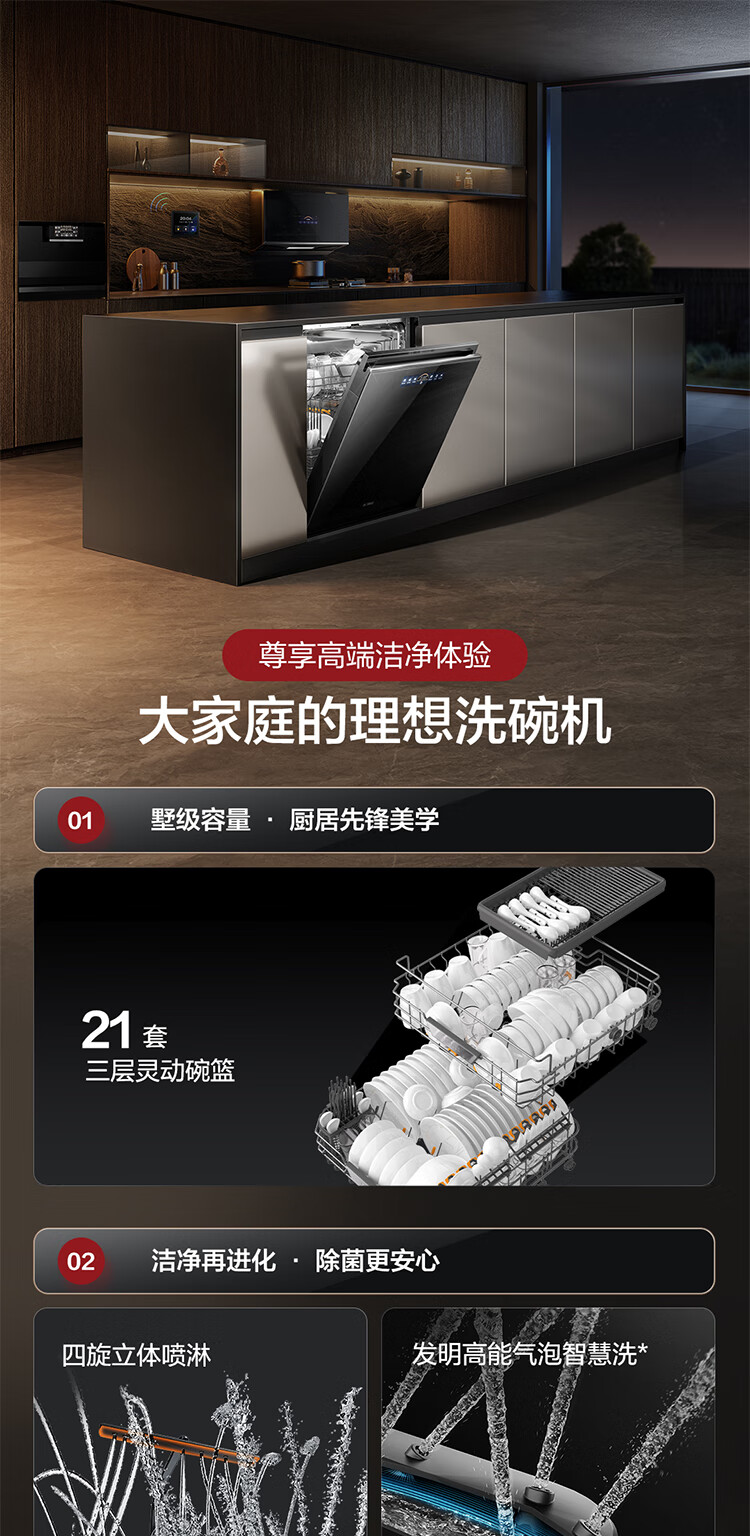 FOTILE dishwasher 02-V16/V16Max household built-in dishwasher independent steam sterilization 19/21 sets large capacity high energy bubble washing hot air drying fully automatic 02-V16MAX 21 sets villa-level capacity