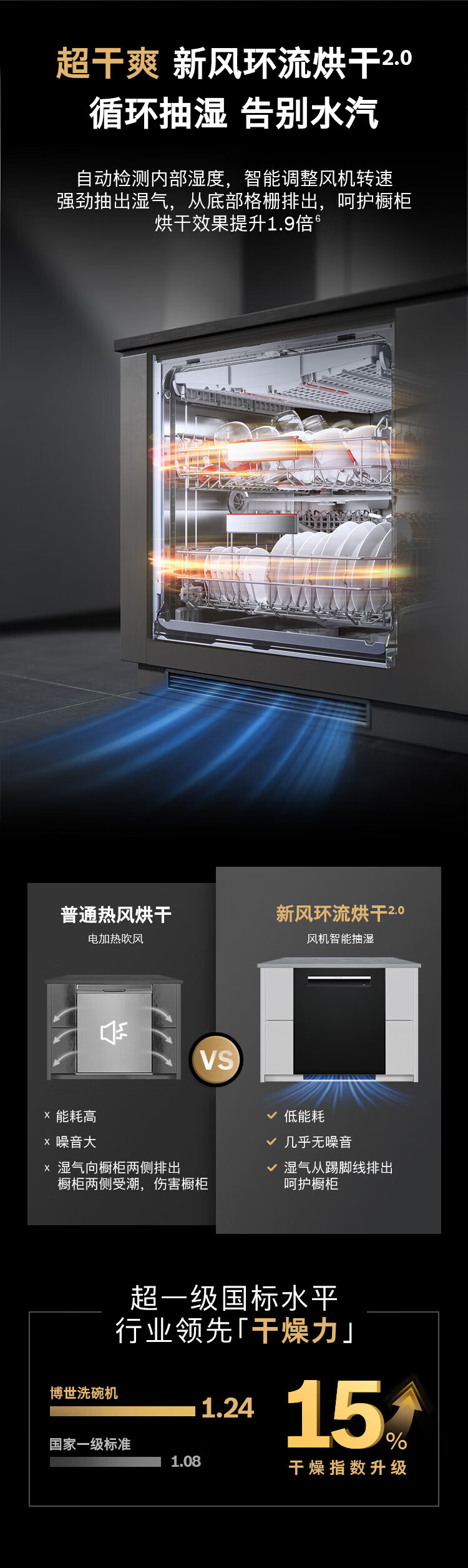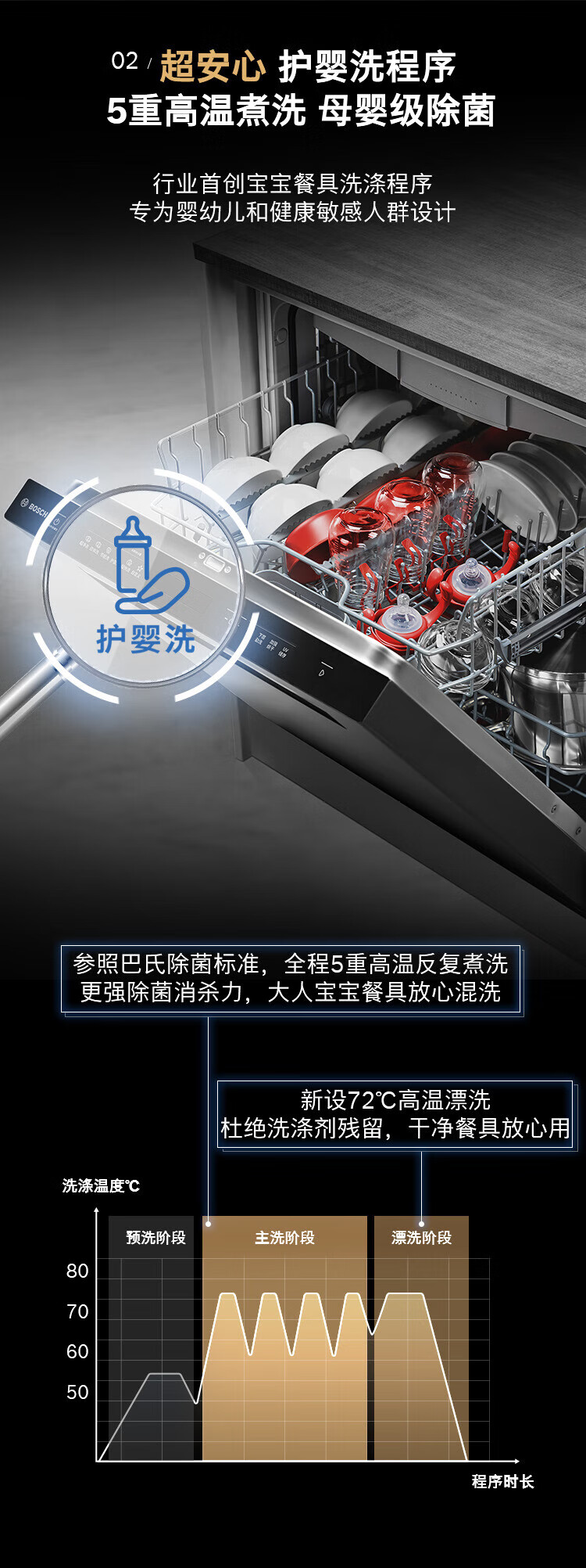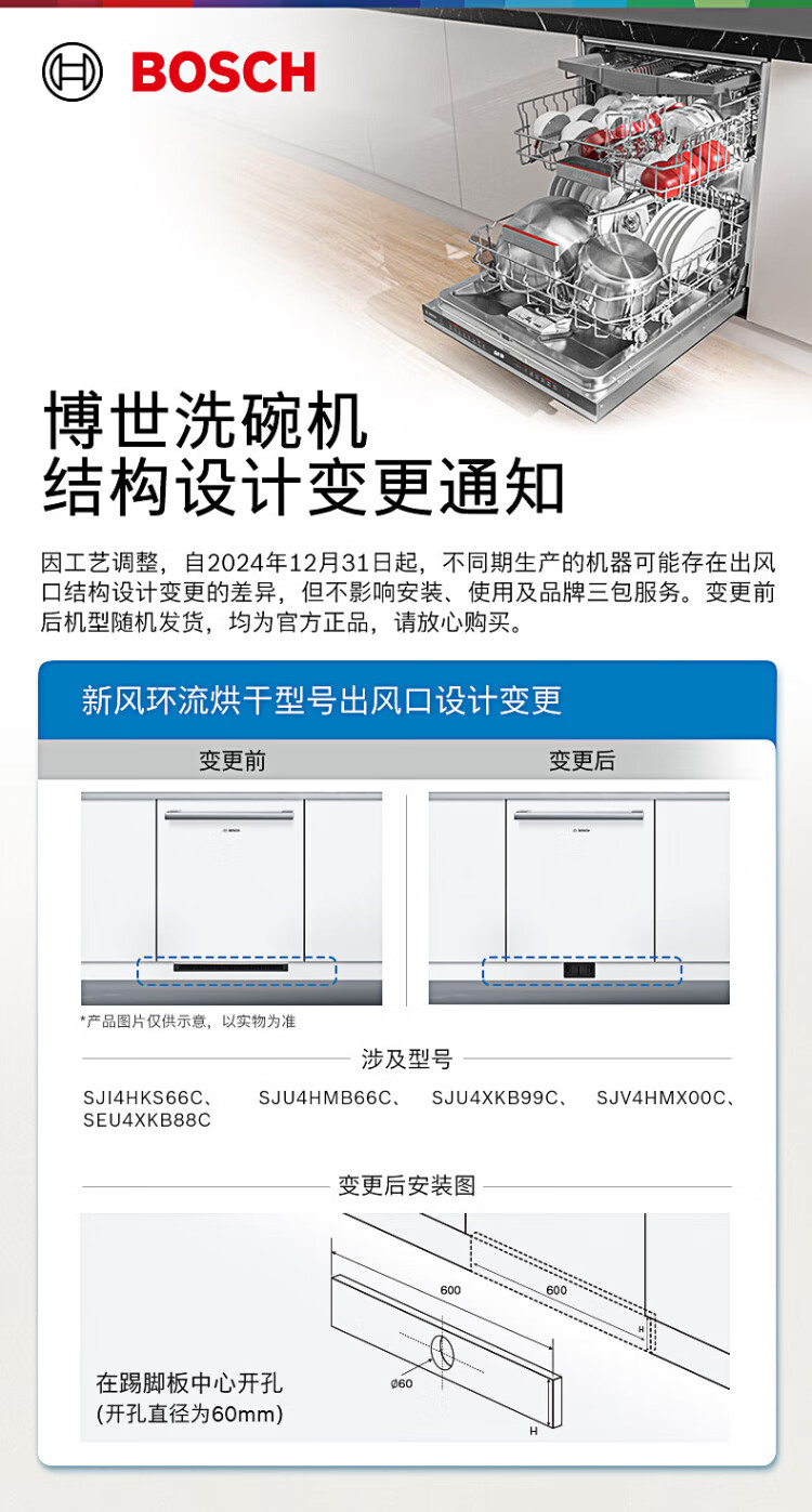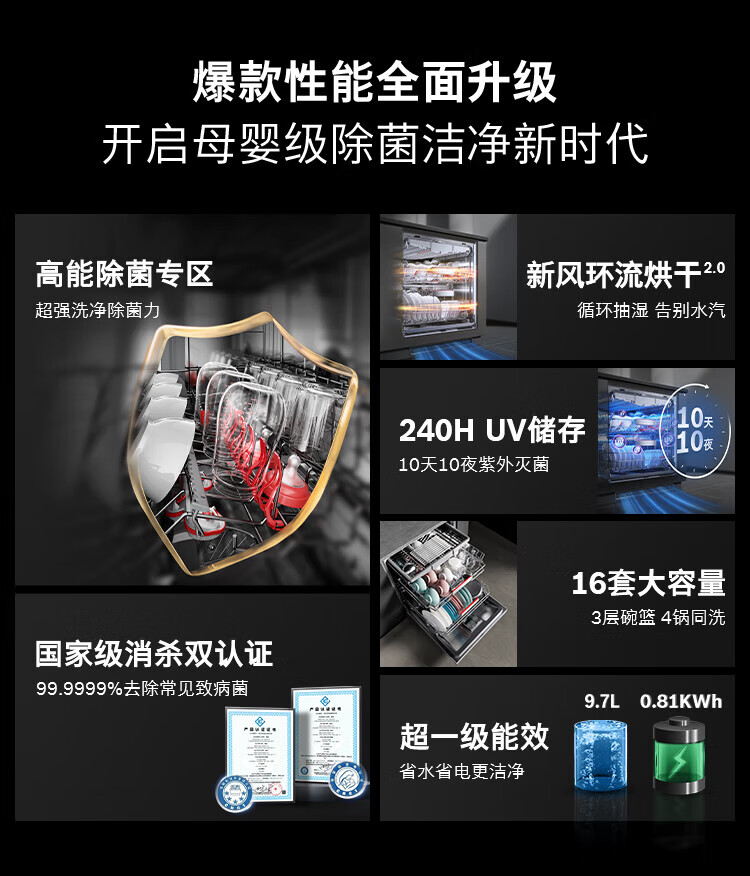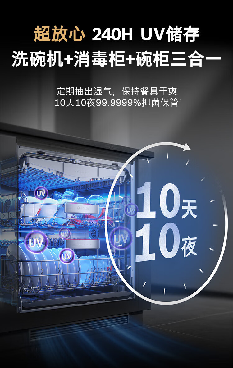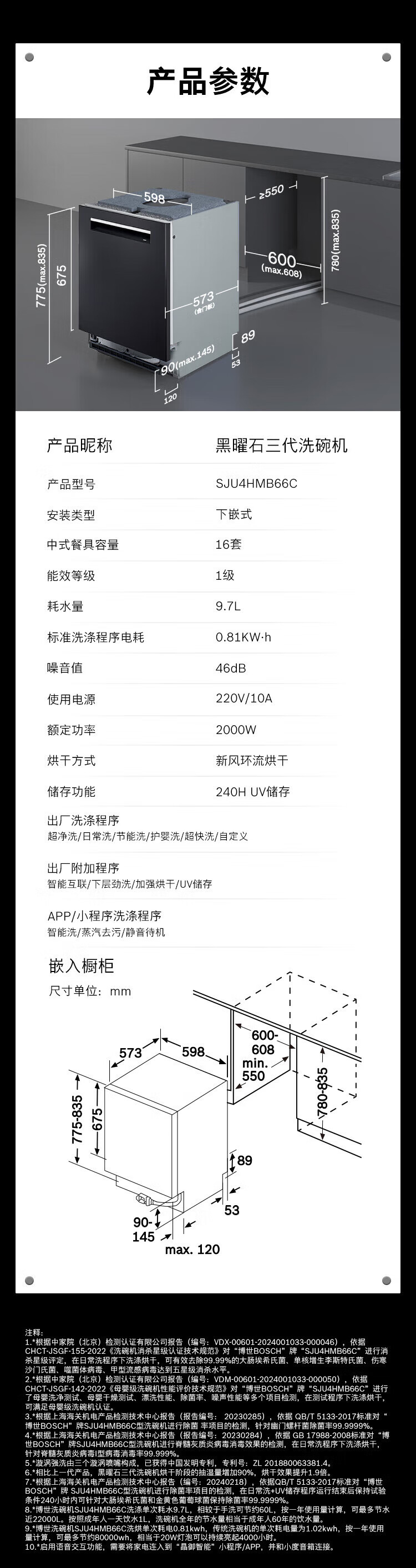 Bosch (BOSCH) Fresh Air V10 Obsidian III 16 sets of built-in household large-capacity dishwashers Fresh air circulation drying Maternal and infant grade sterilization 240 hours storage SJU4HMB66C black