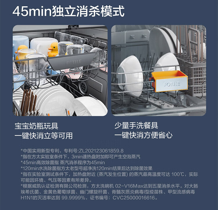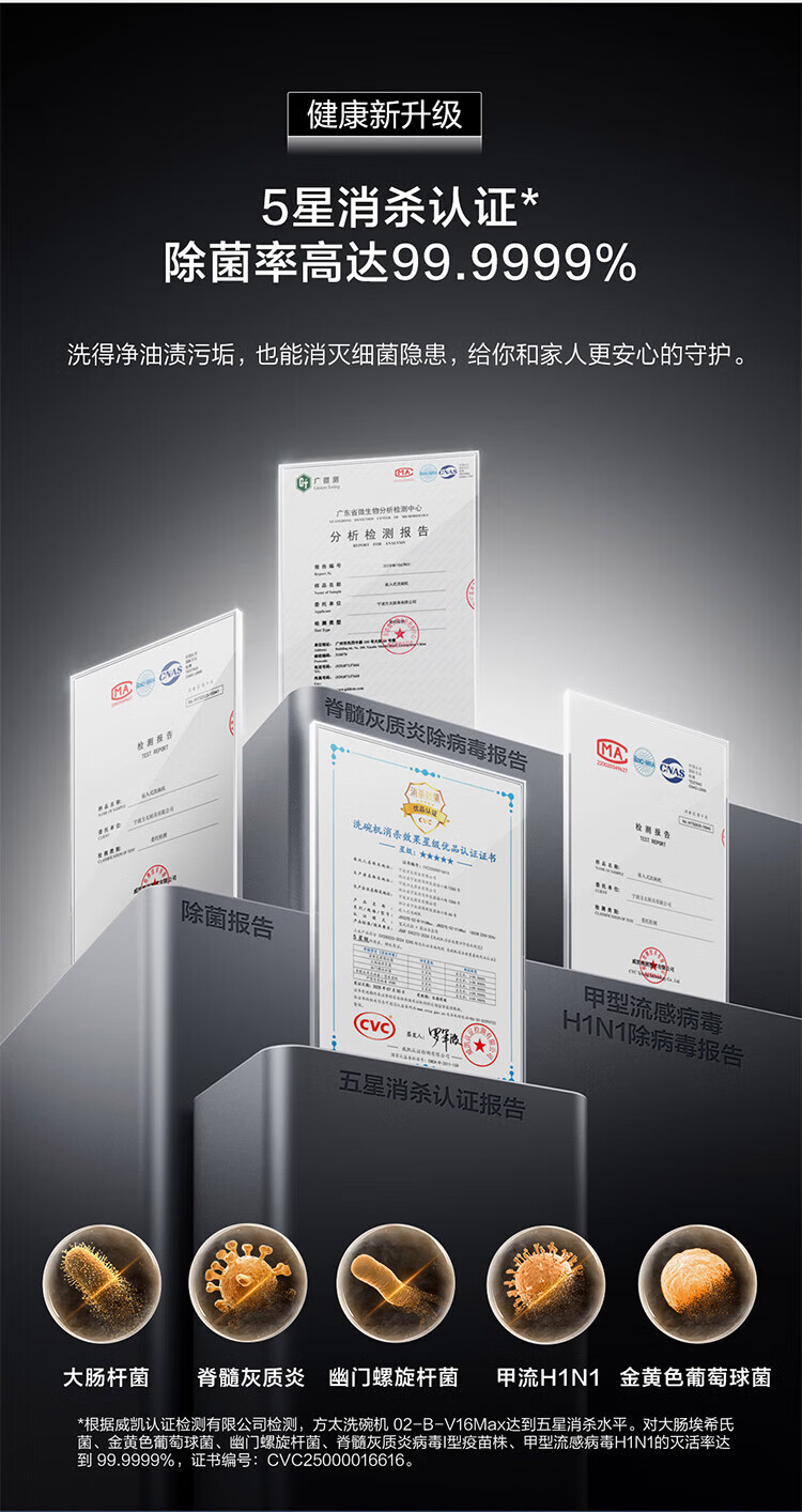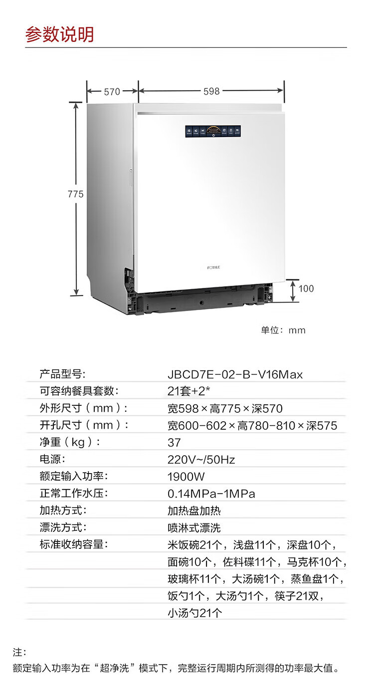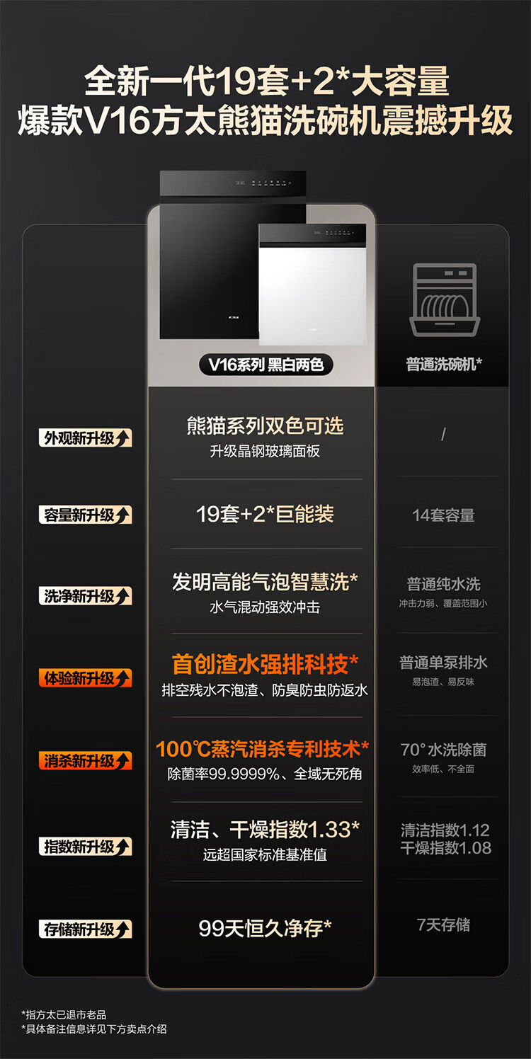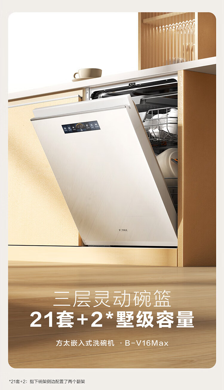 FOTILE's blockbuster new product 02-V16 built-in household dishwasher, super large capacity pots and dishes washed at the same time 100, steam sterilization, hot air drying, high energy bubble washing, 21 sets + 2* capacity 02-V16Max black model