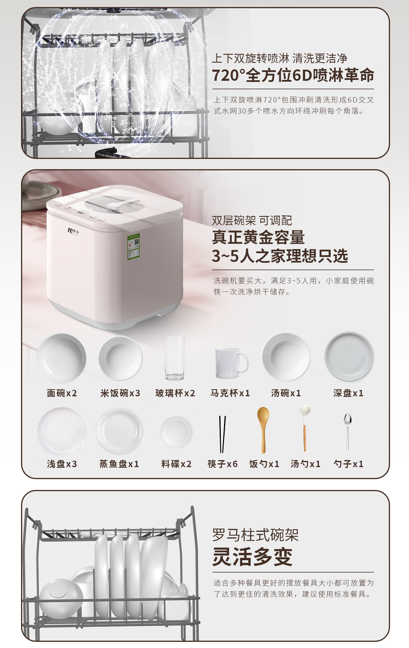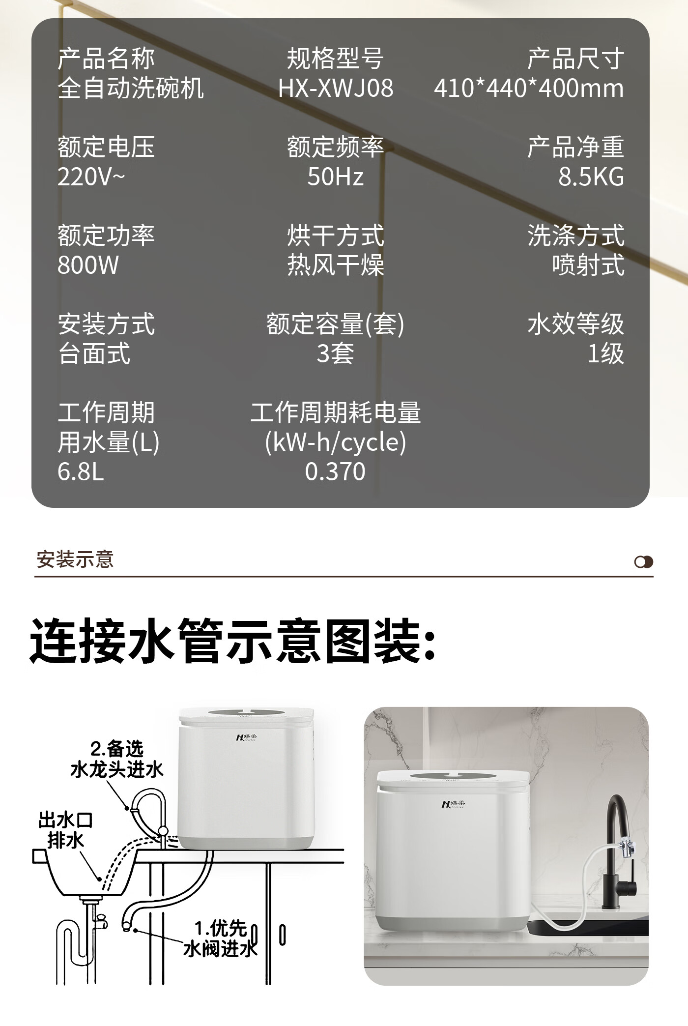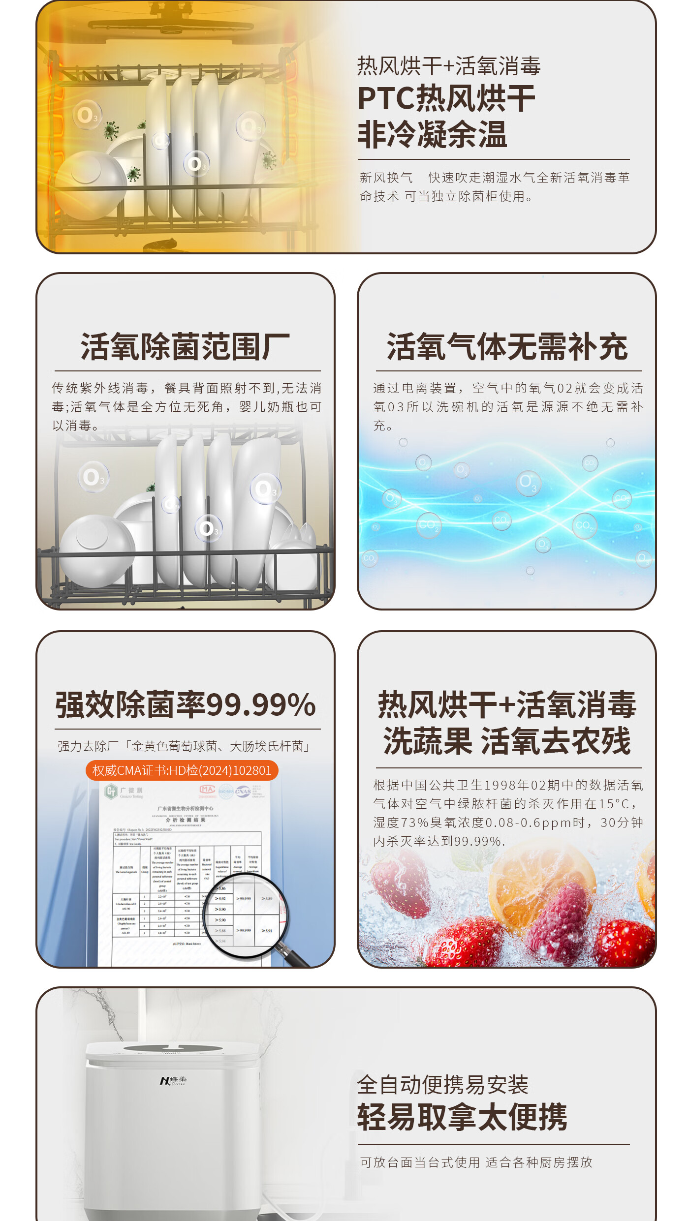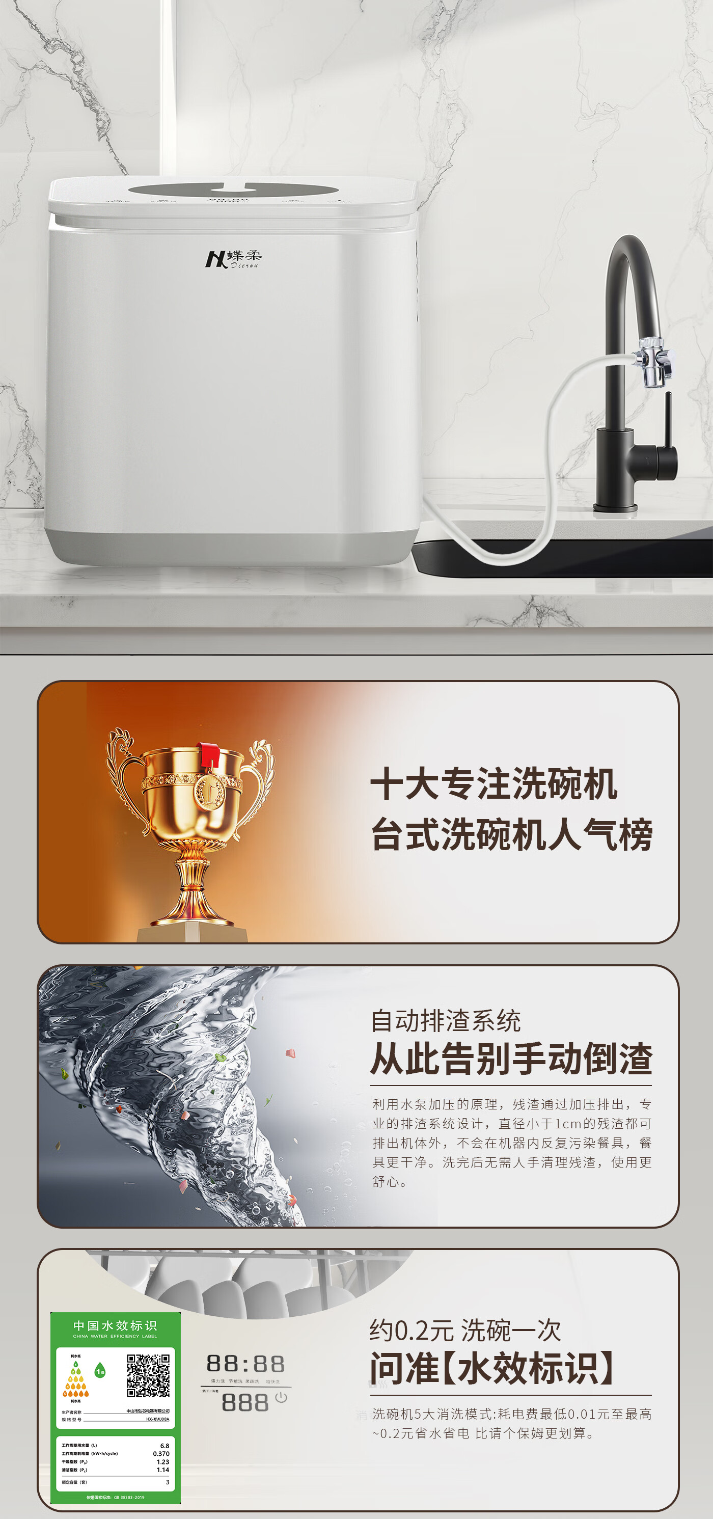 Dierou fully automatic dishwasher countertop small household installation-free disinfection and drying all-in-one ultra-thin small size white - with water tank first-class water efficiency + household sterilization