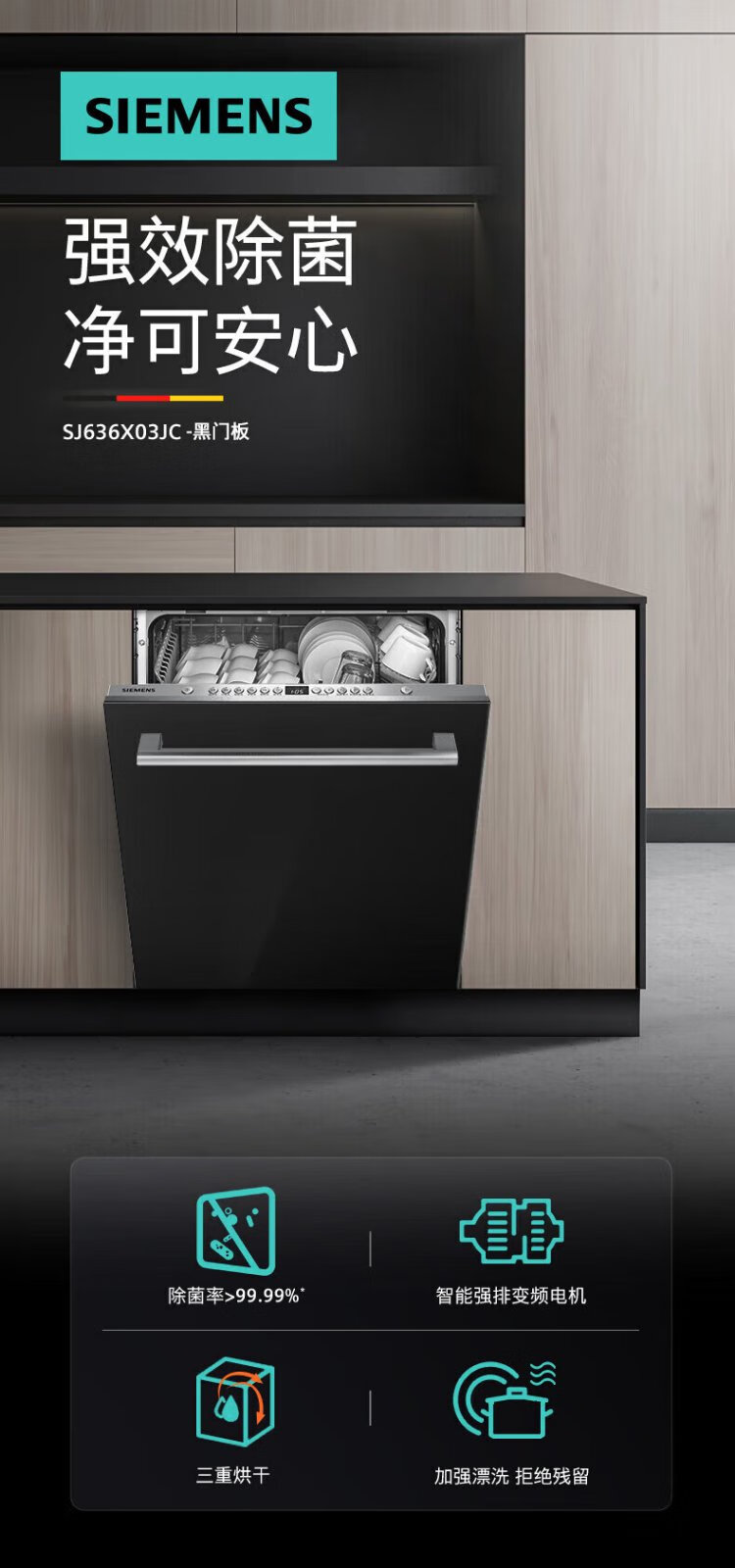 SIEMENS 12 sets of built-in household dishwashers SJ636X03JC maternal and child-grade disappearing triple enhanced drying six programs enhanced sterilization patented smart investment SZ06AXCFI single black door panel