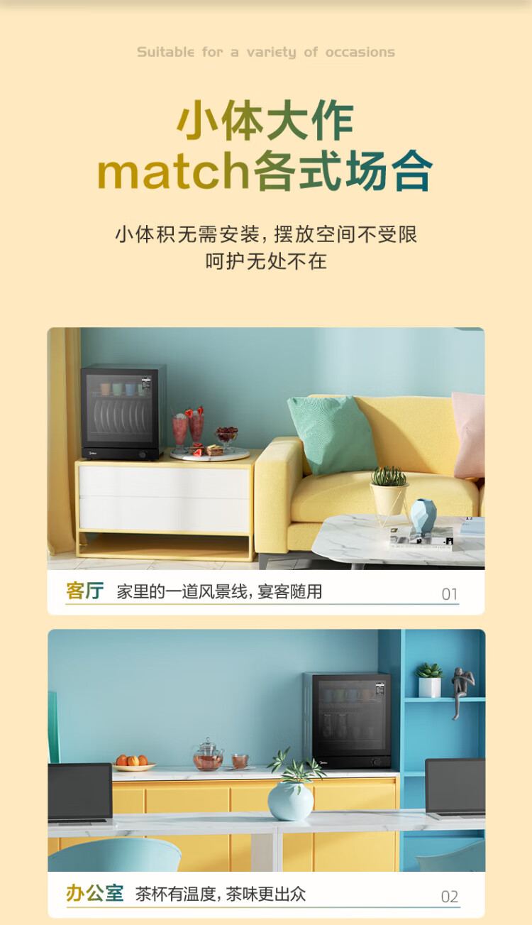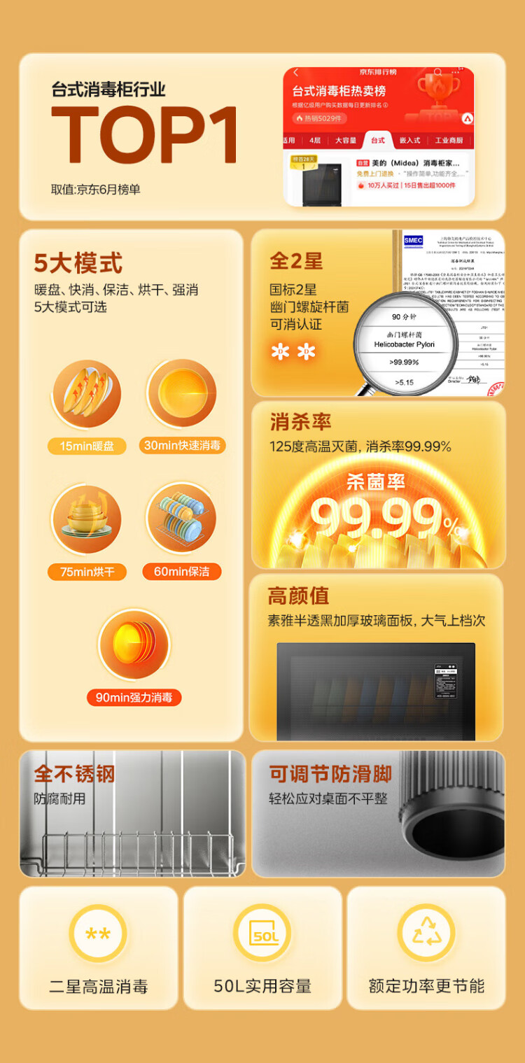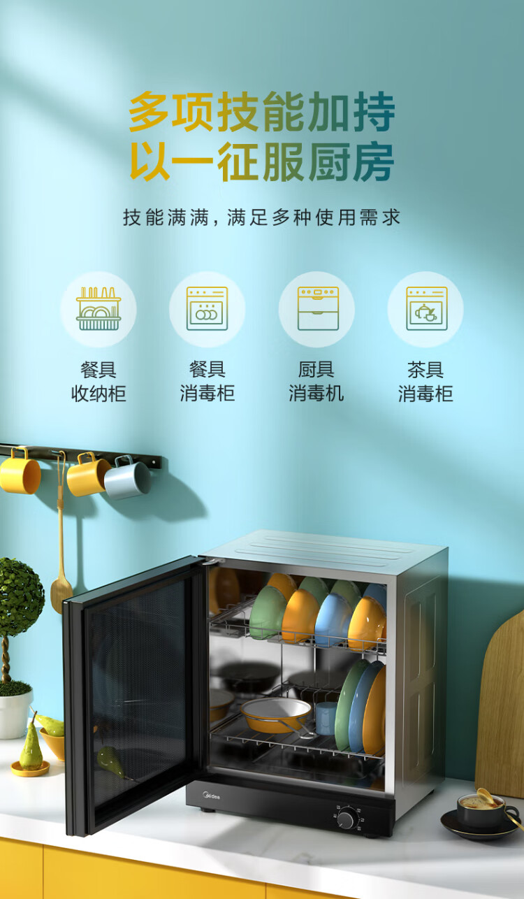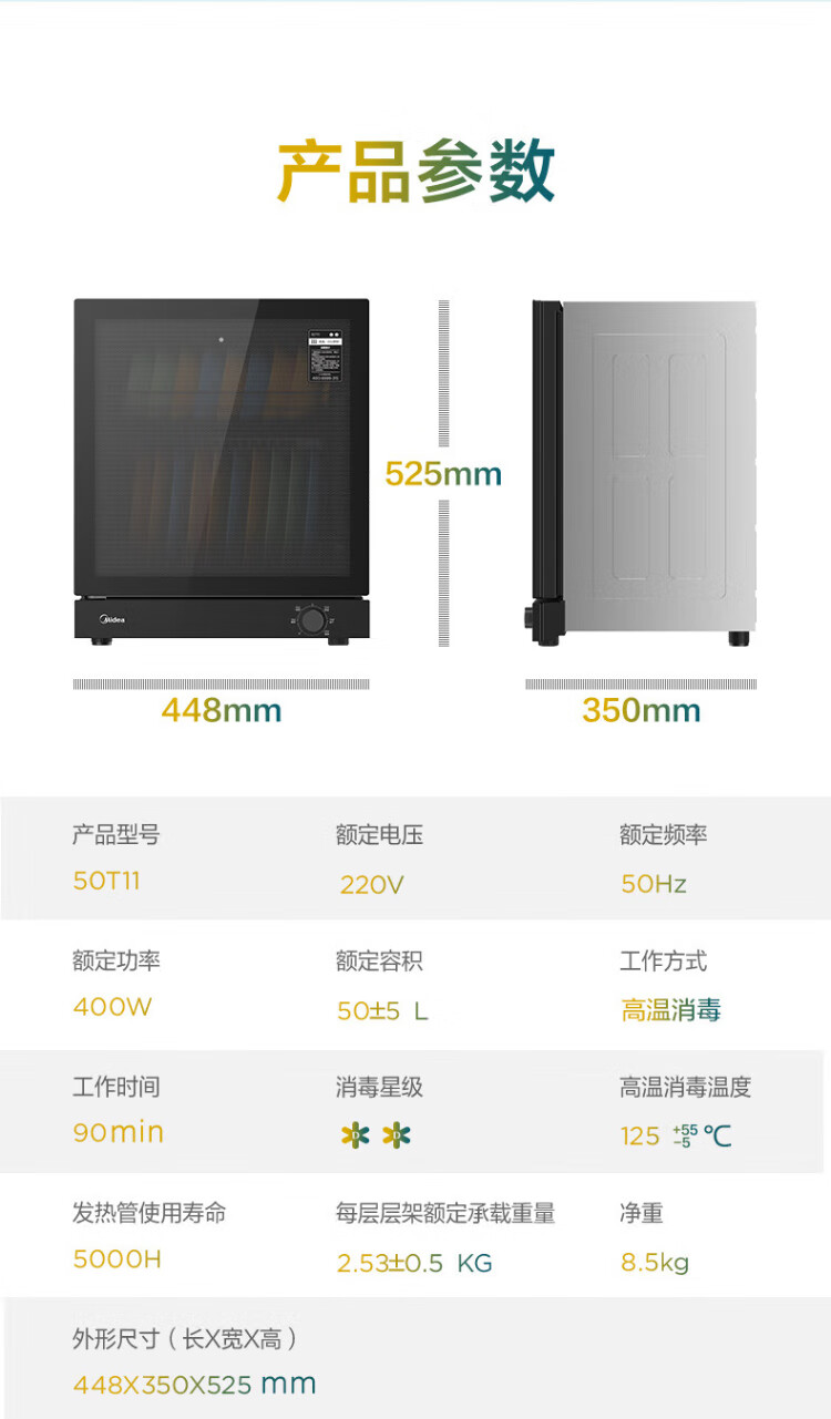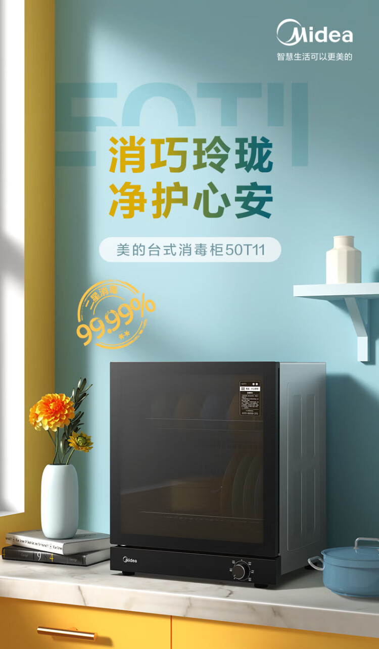 Midea Disinfection Cabinet Home Kitchen Tableware Cupboards Dishes Teacups Knives Disinfection 50L Double Layer Small Desktop High Temperature Drying Two Stars National Subsidy 50T11