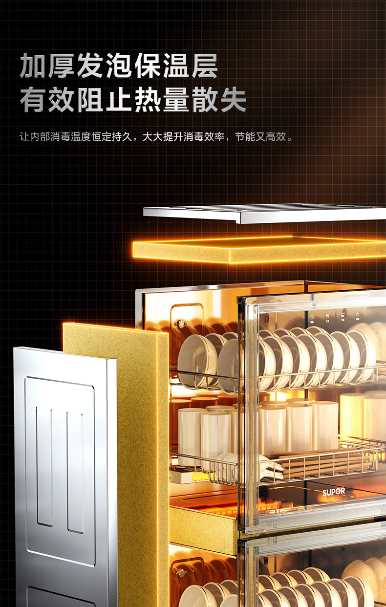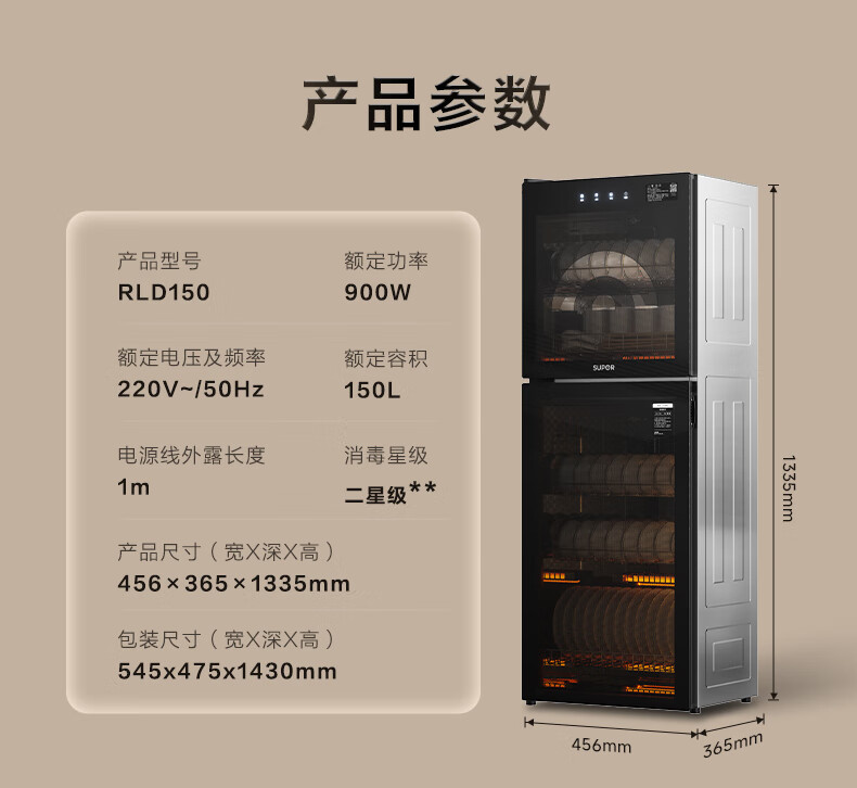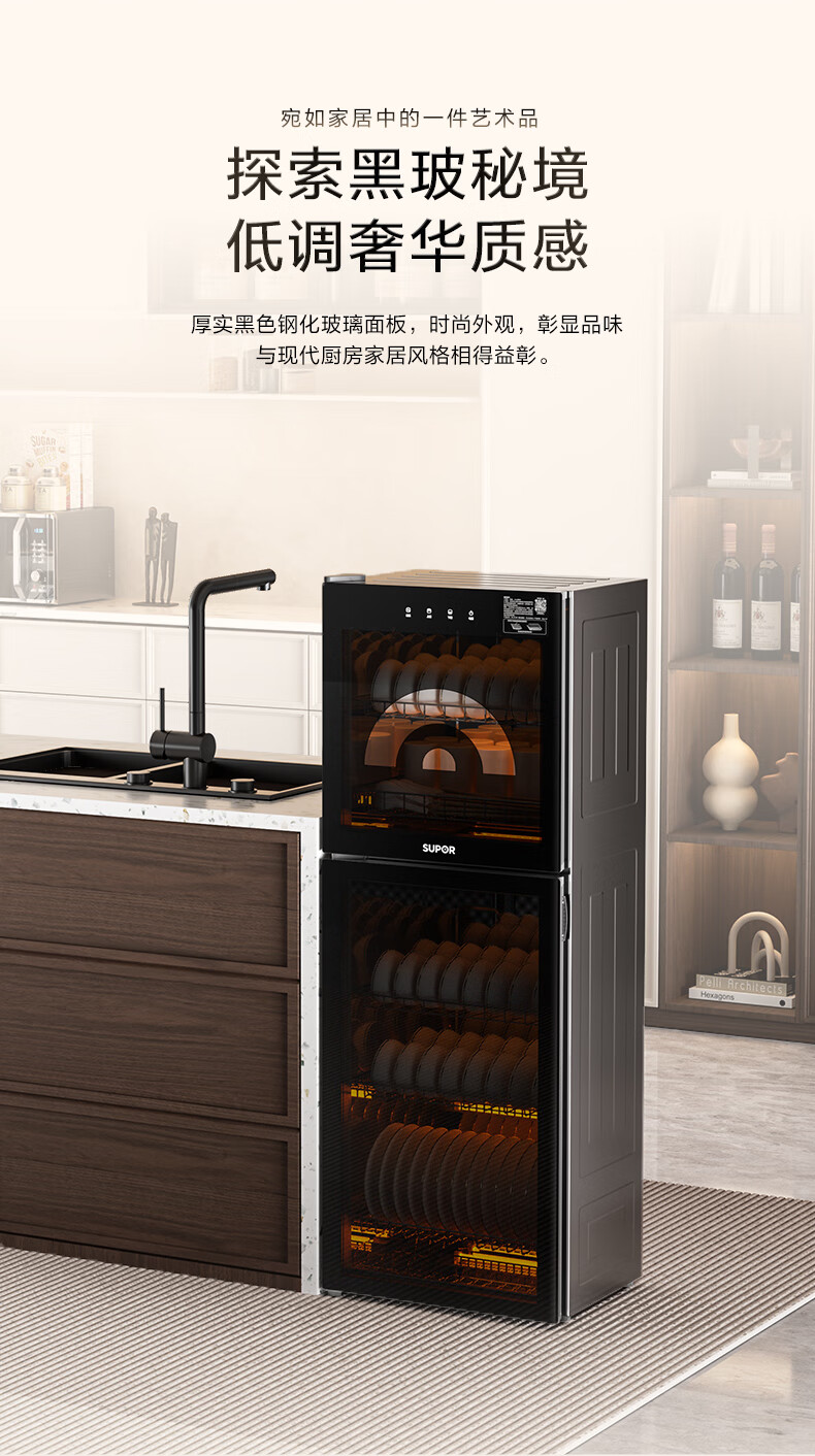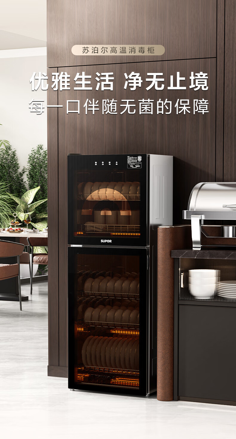 SUPOR RLD150 household disinfection cabinet commercial canteen hotel vertical double door two-star high temperature tableware 150L large capacity drying all-in-one machine tableware disinfection cupboard