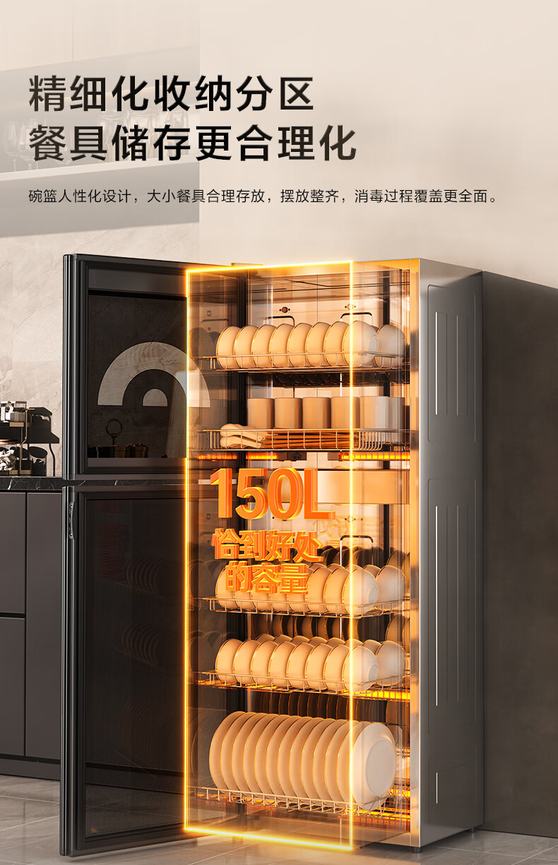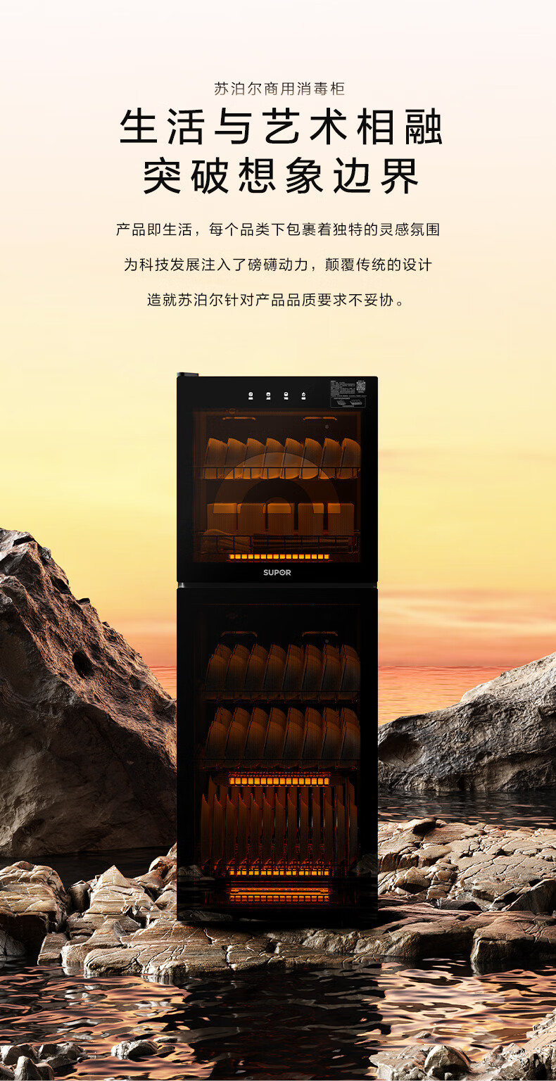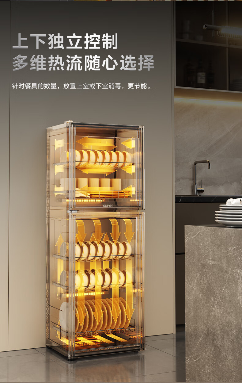 SUPOR RLD150 household disinfection cabinet commercial canteen hotel vertical double door two-star high temperature tableware 150L large capacity drying all-in-one machine tableware disinfection cupboard