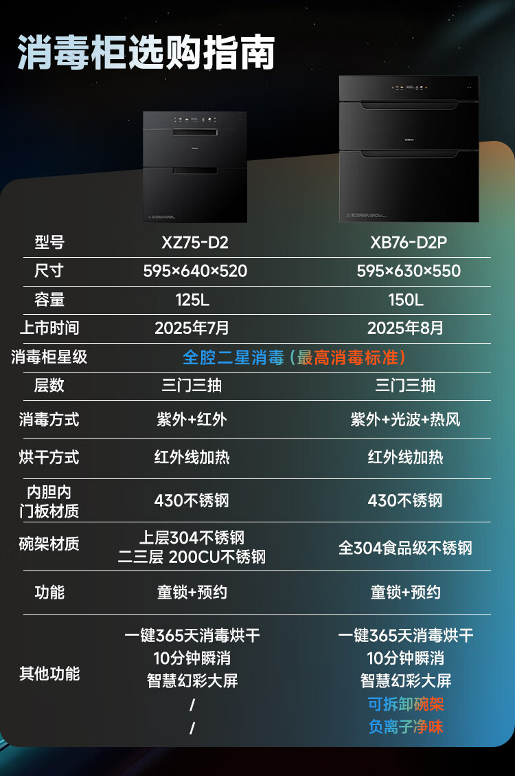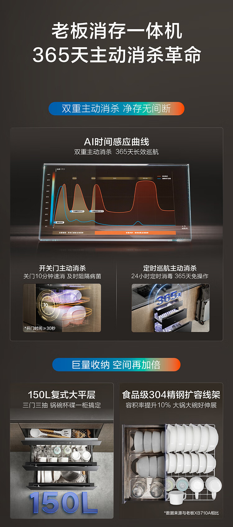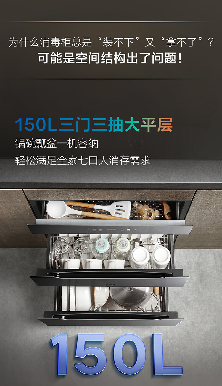 Robam 150L constant clean cabin three-layer large-capacity disinfection cupboard embedded home one-click hosting year-round ultraviolet electric sterilization A1 mother and baby dryer D2P national subsidy