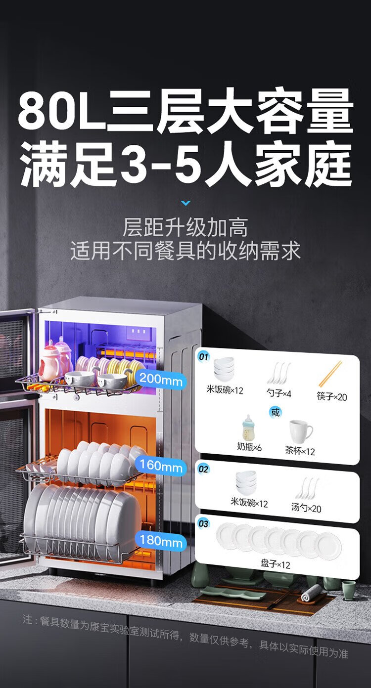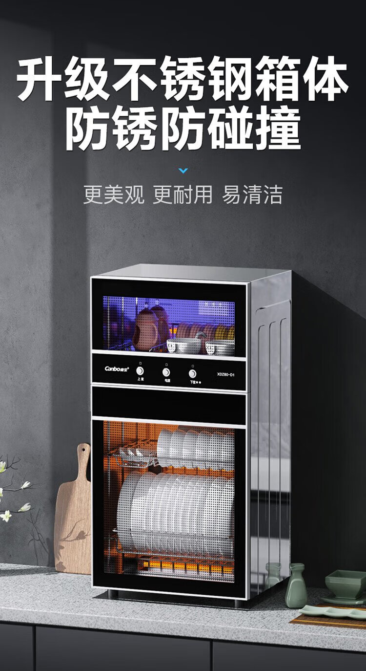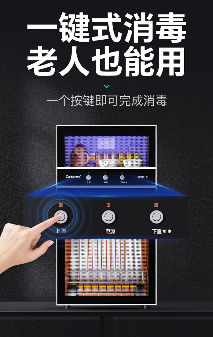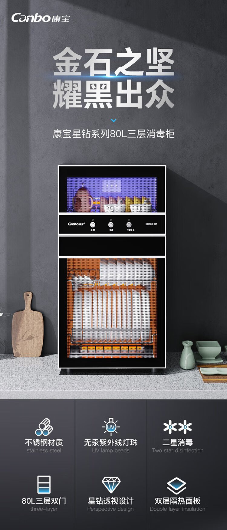 Canbo disinfection cabinet household stainless steel small vertical two-star high temperature tableware milk bottle double door 80L three-layer storage disinfection cupboard national subsidy XDZ80-D1