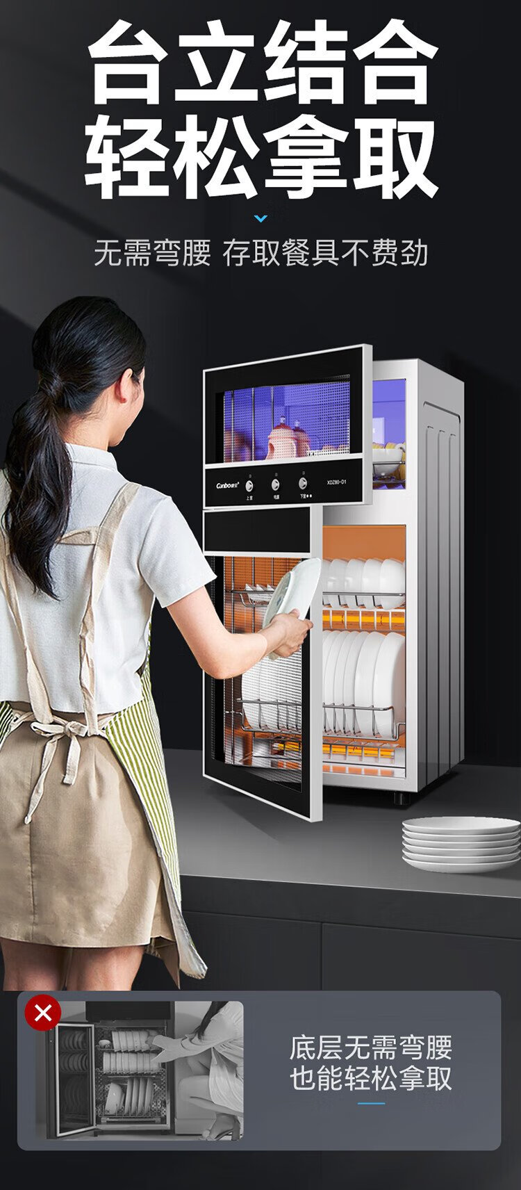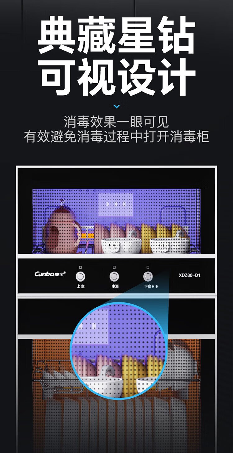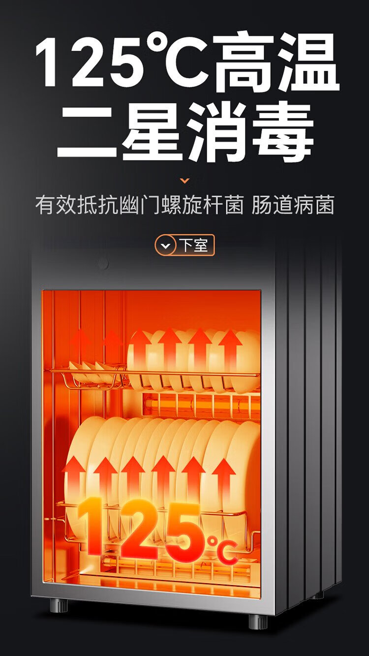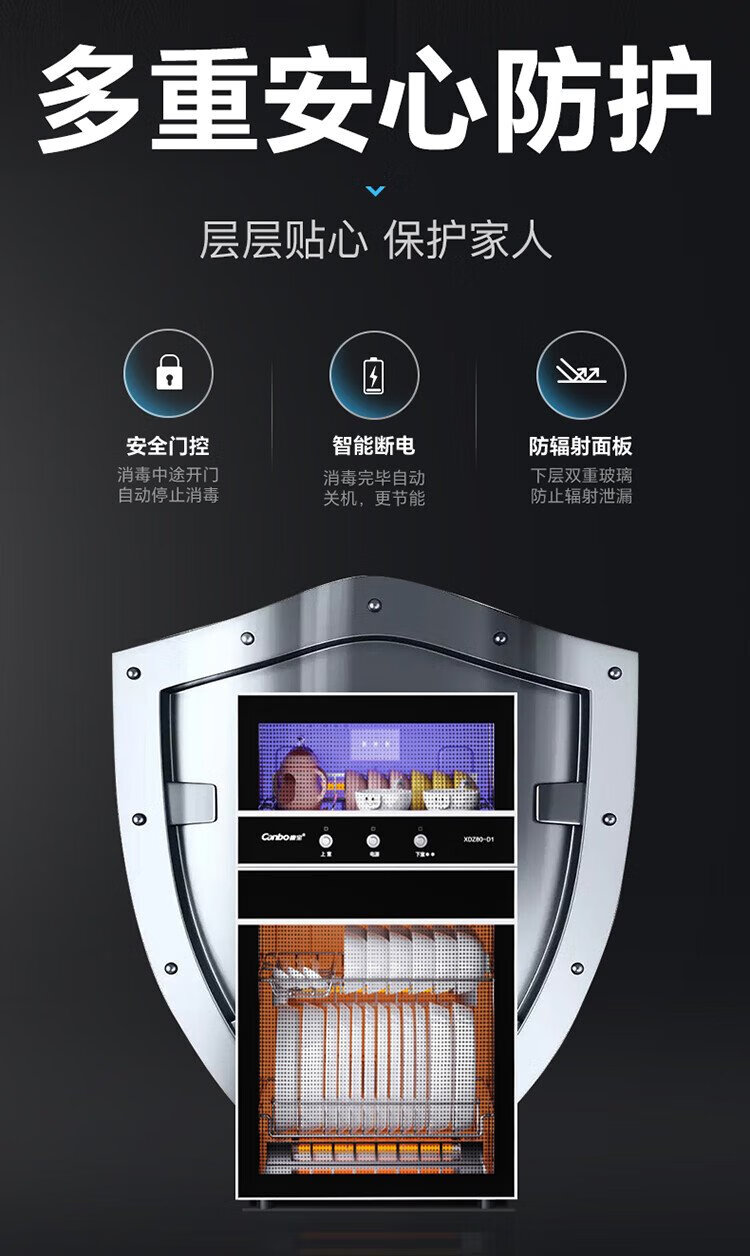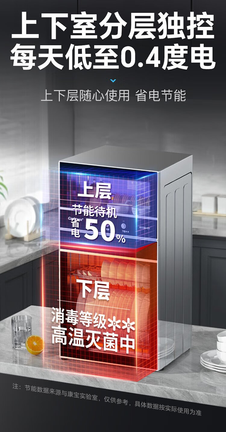 Canbo disinfection cabinet household stainless steel small vertical two-star high temperature tableware milk bottle double door 80L three-layer storage disinfection cupboard national subsidy XDZ80-D1