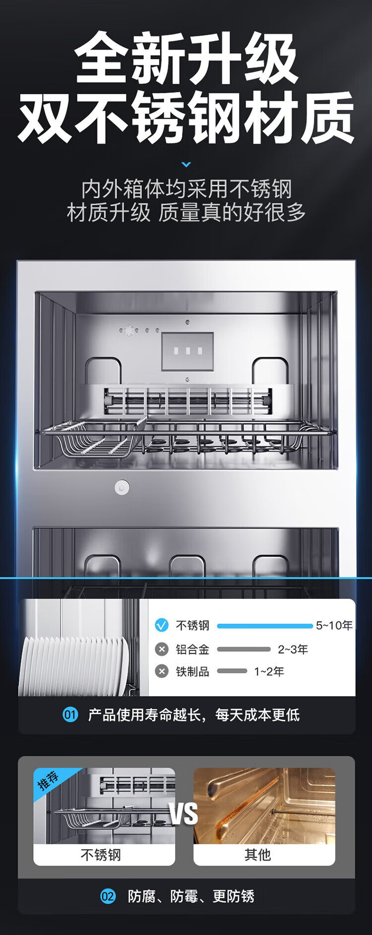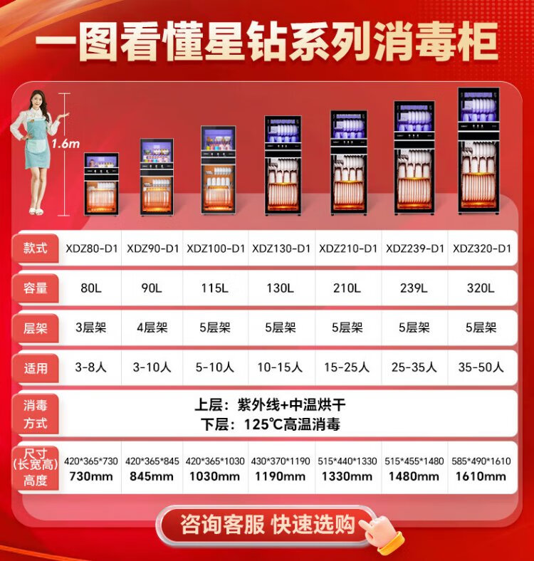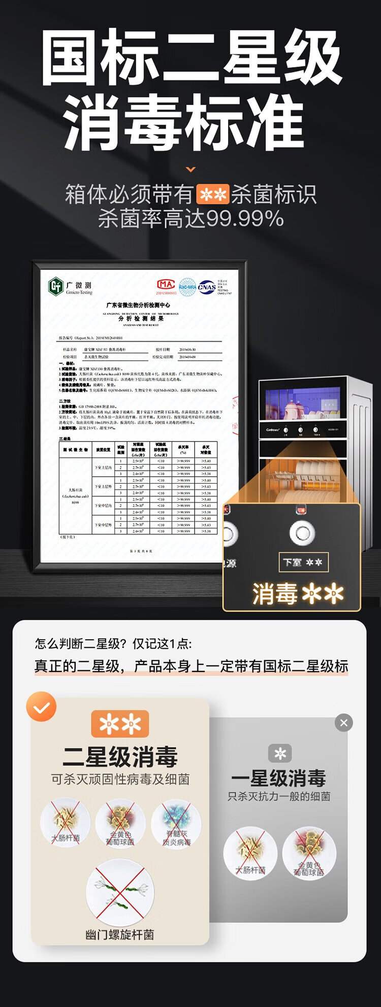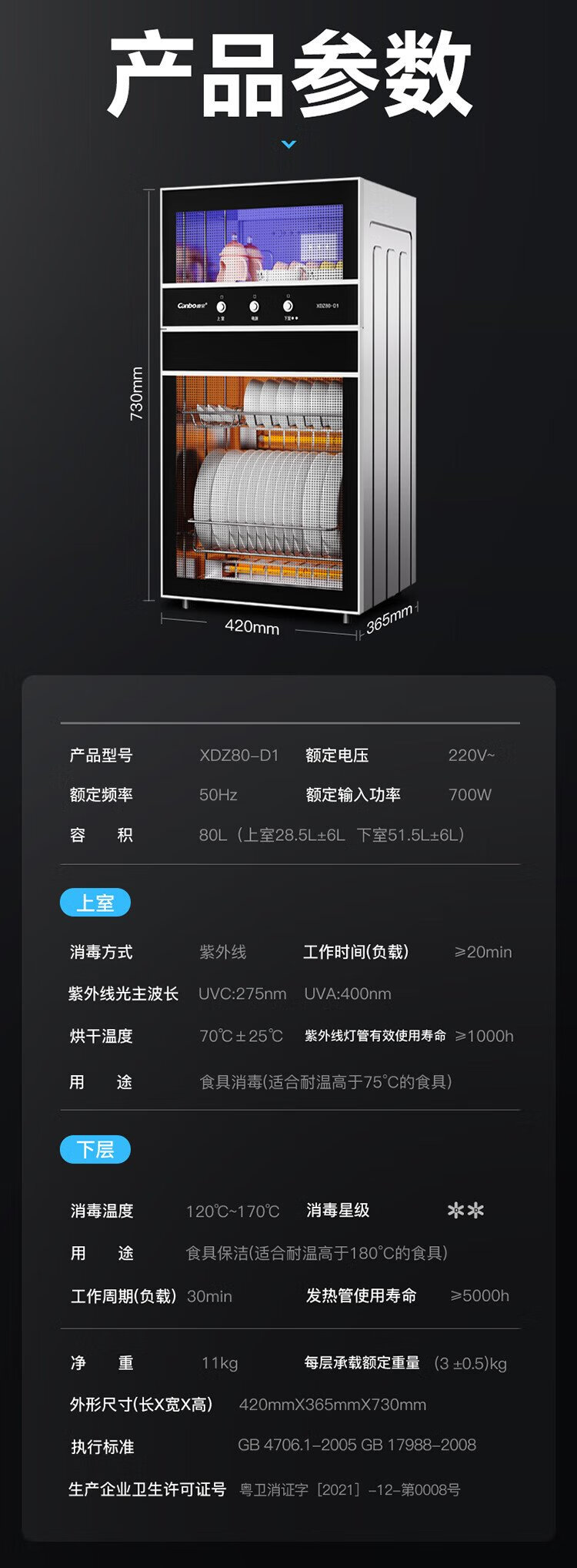 Canbo disinfection cabinet household stainless steel small vertical two-star high temperature tableware milk bottle double door 80L three-layer storage disinfection cupboard national subsidy XDZ80-D1