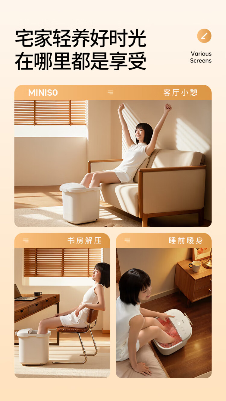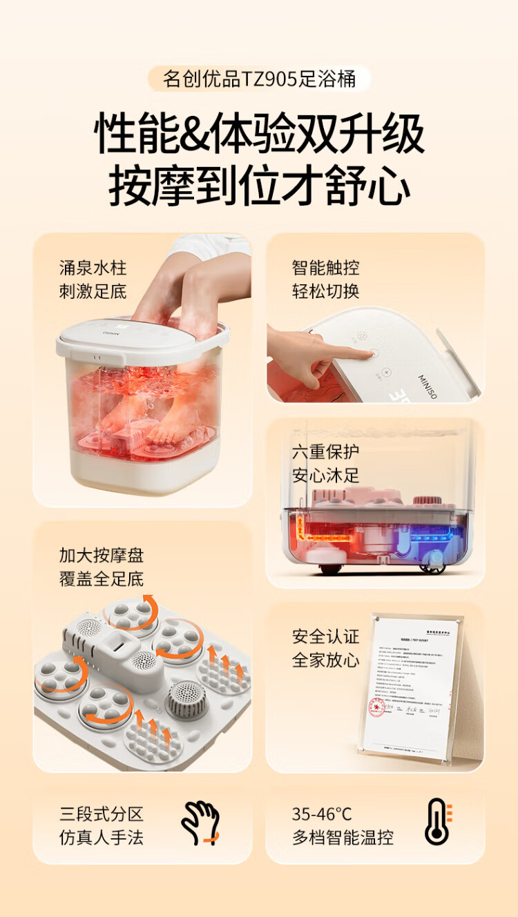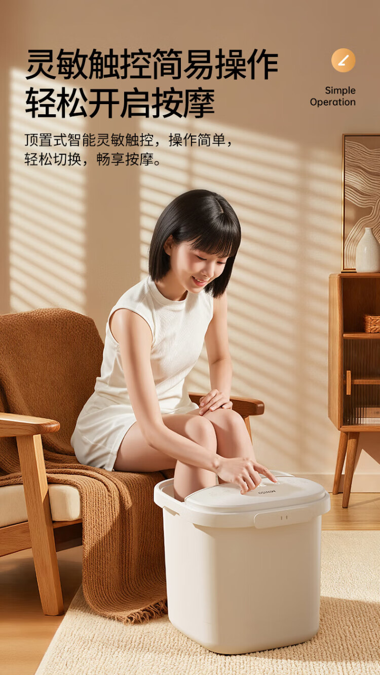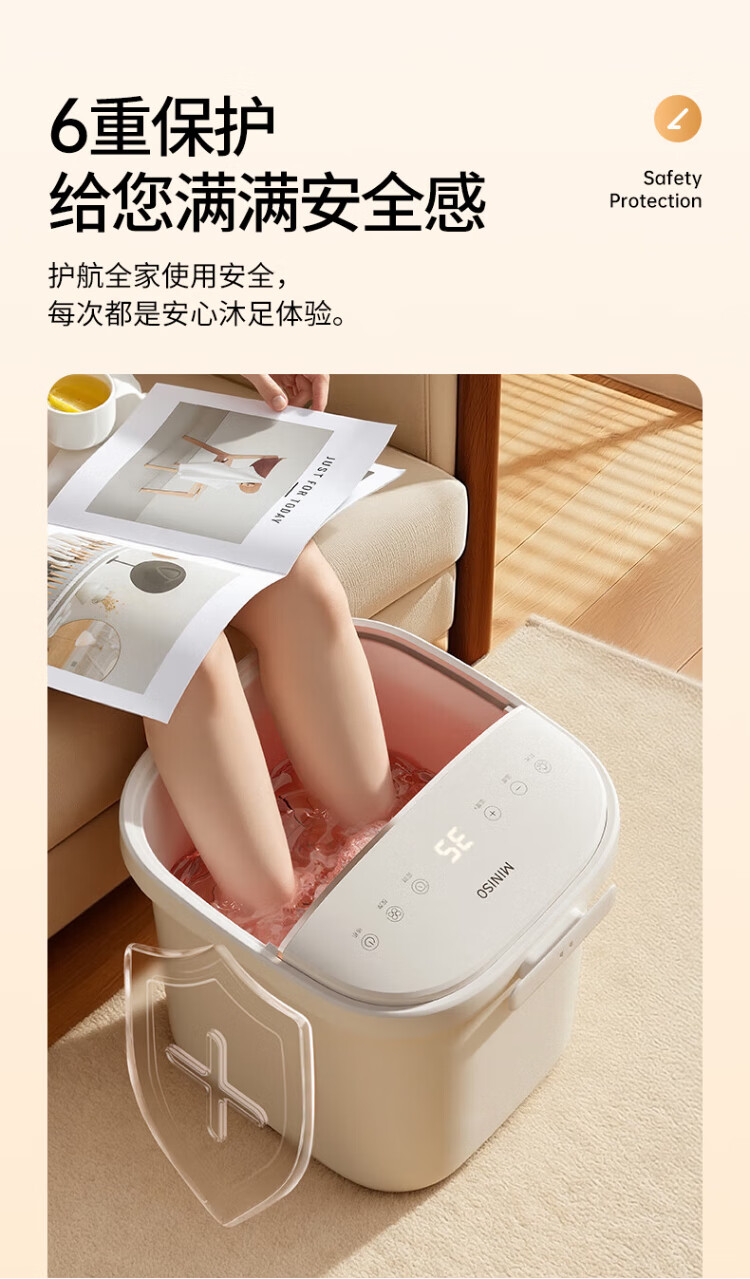 Minso Premium Foot Bath Bucket Heated Automatic Massage 2025 Foot Bath Constant Temperature Electric Massage All-in-One Foot Bath Knee Smart Home Foot Therapy and Health Care as a Birthday Gift for Parents and Elders Exclusive Edition - Beige Small White Bucket Upgraded Leak Protection Plug + Removable Massage Plate Water Flow Wrapped Massage Stimulating Foot Acupoints/Constant Temperature Intelligent Control/LCD Touch Screen