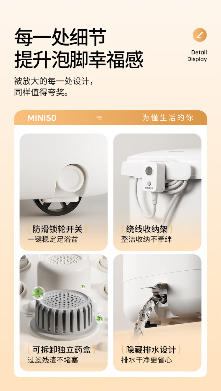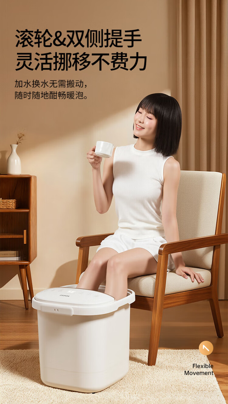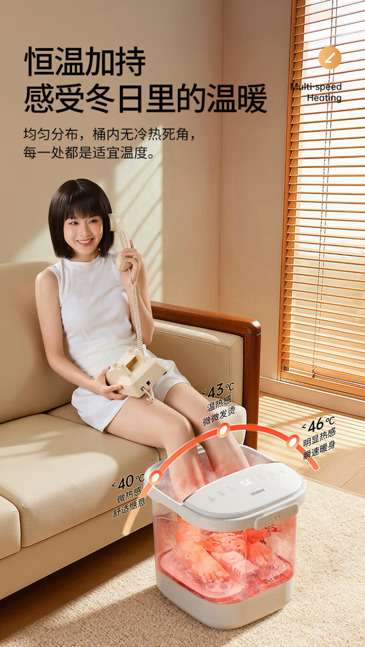 Minso Premium Foot Bath Bucket Heated Automatic Massage 2025 Foot Bath Constant Temperature Electric Massage All-in-One Foot Bath Knee Smart Home Foot Therapy and Health Care as a Birthday Gift for Parents and Elders Exclusive Edition - Beige Small White Bucket Upgraded Leak Protection Plug + Removable Massage Plate Water Flow Wrapped Massage Stimulating Foot Acupoints/Constant Temperature Intelligent Control/LCD Touch Screen