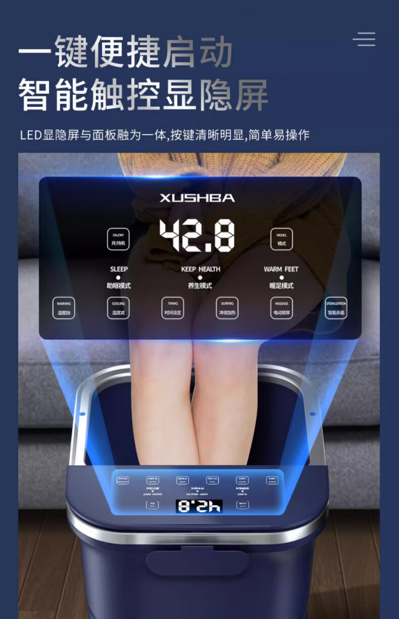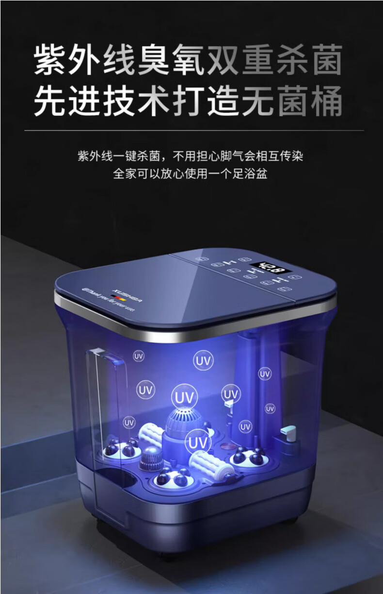 DEATKN Germany foot bath bucket foot bath fully automatic electric massage all-in-one machine intelligent constant temperature heating over the knee calf deep bucket foot basin practical gift for parents and elders North Carolina blue upgraded leakage protection switch + gift box packaging + ghostwriting greeting card Single shot will not be sent Multiple bottles are more cost-effective 750ml*3 bottles scouring pad +