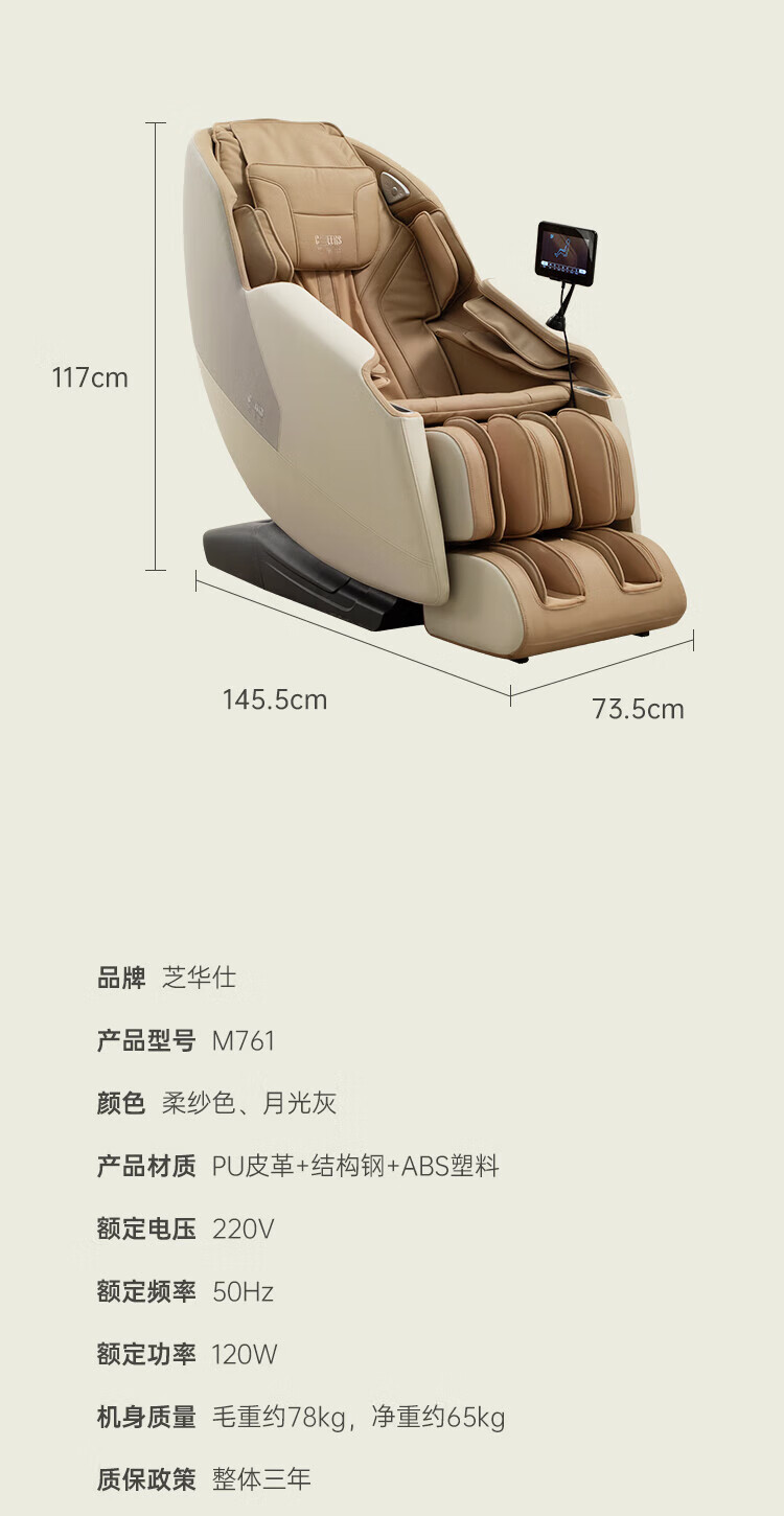 Chivas fully automatic intelligent full body massage chair home space capsule multi-functional zero gravity massage chair gift for parents massage sofa chair M761 soft yarn Jingcang Shinfa
