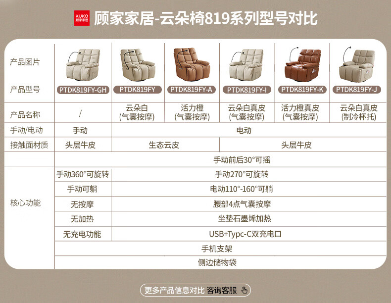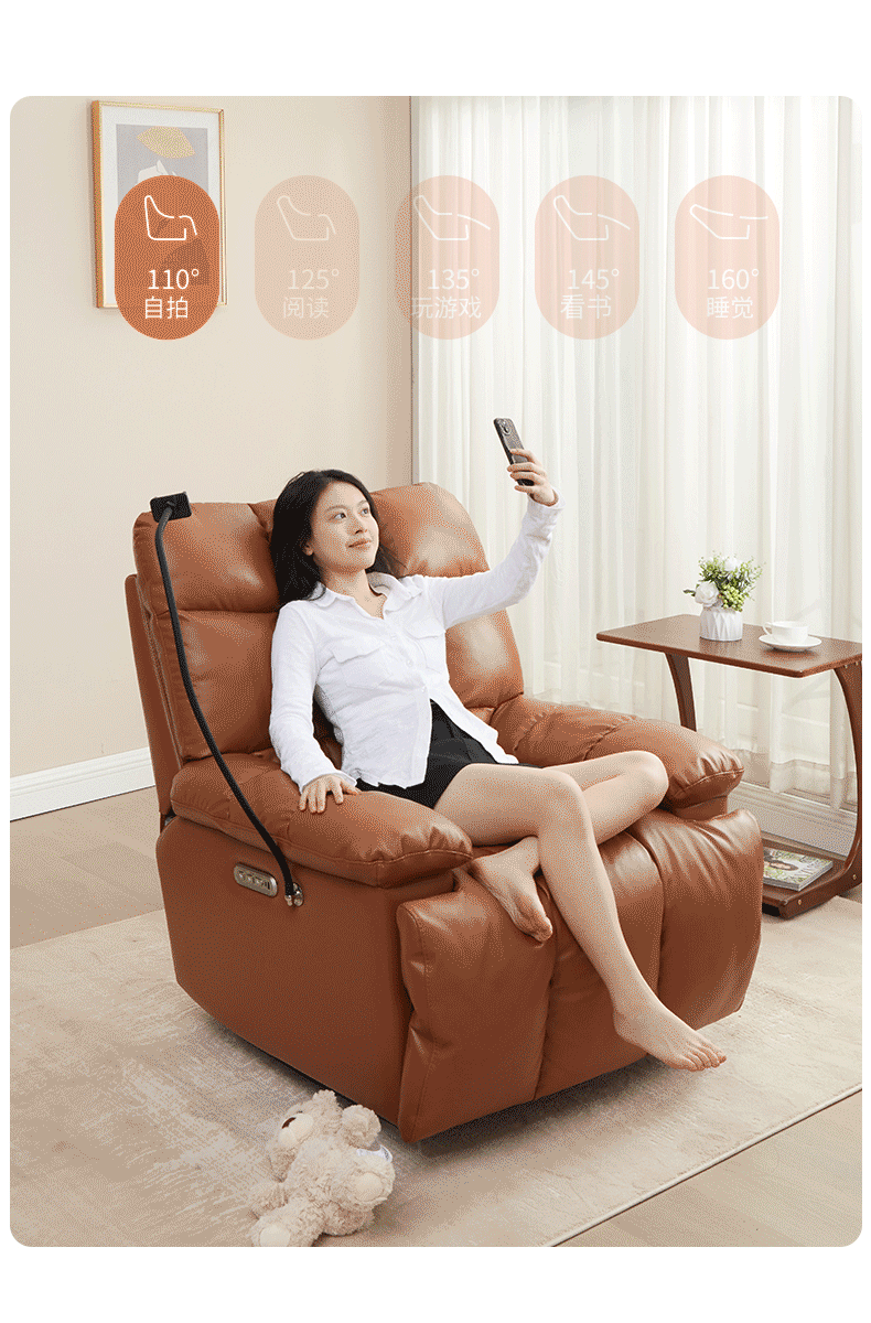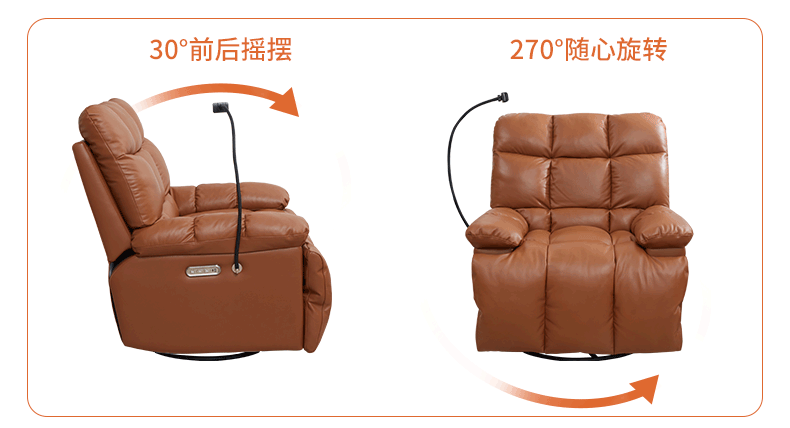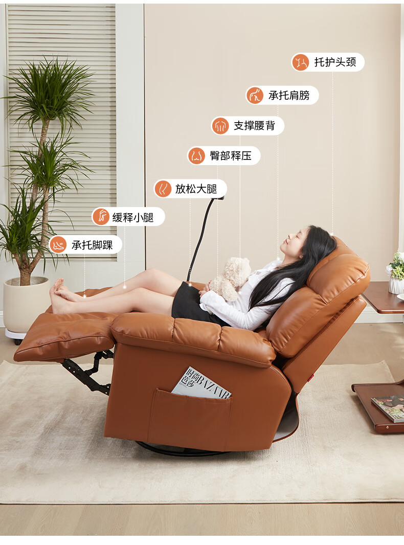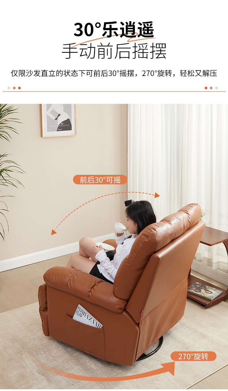 Gujia Home Leather Massage Sofa Living Room Single Sofa Lazy Sofa Rocking Chair Bedroom Study Home Small Massage Chair Cloud Chair PTDK819FY-K