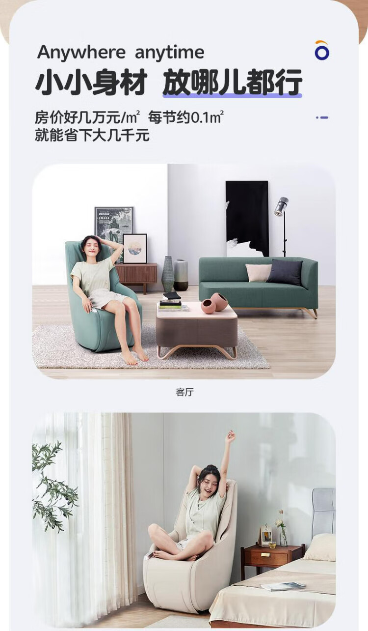 SOFO Mini Single Intelligent Leisure Small Massage Chair Living Room Office Conference Room Hall Tea House Modern Simple Electric Multi-Function Massage Sofa Chair SF-7226 Milk Green