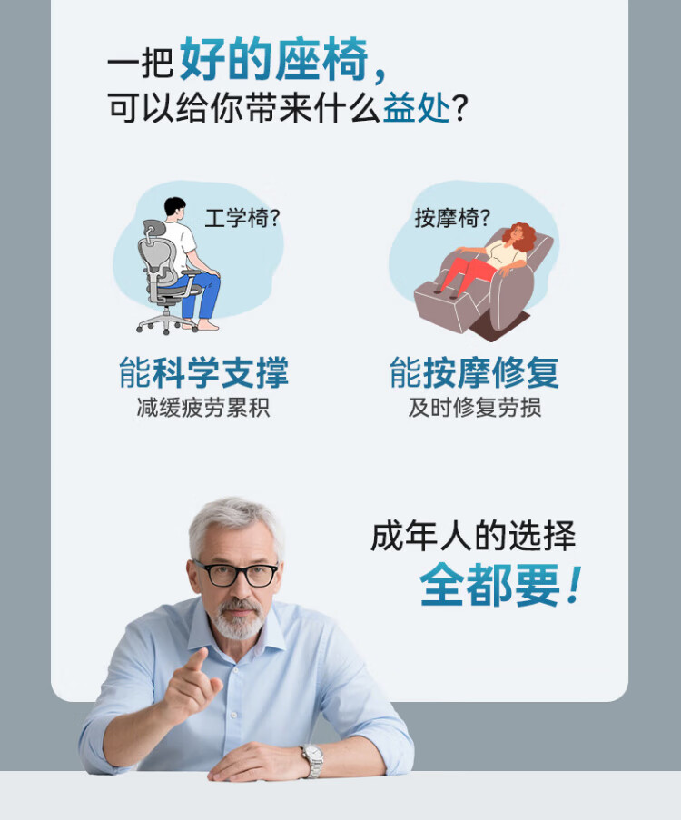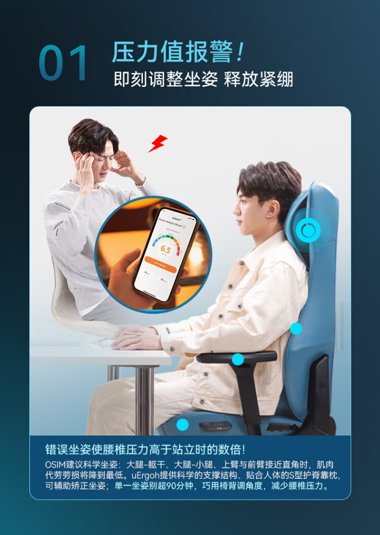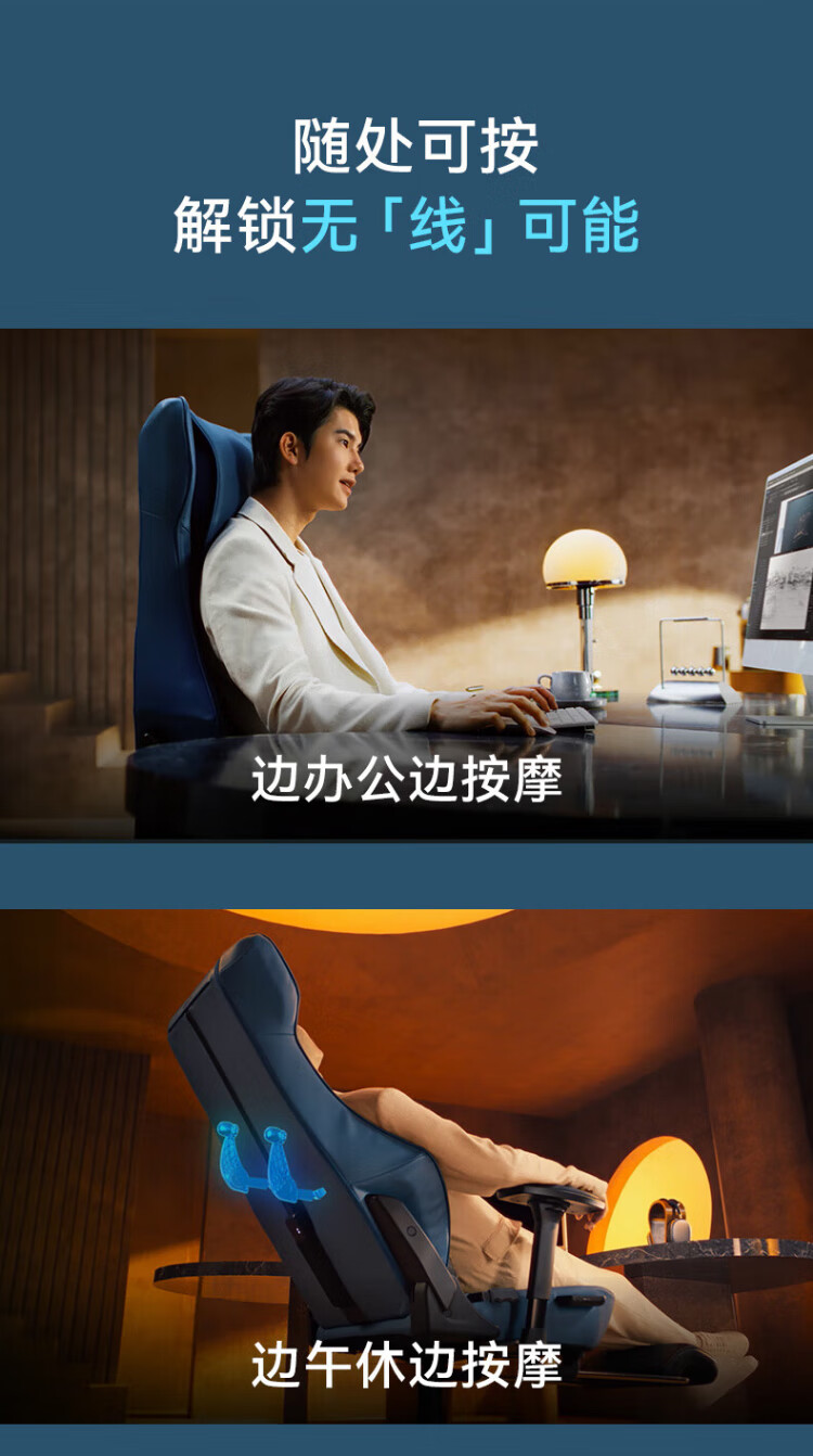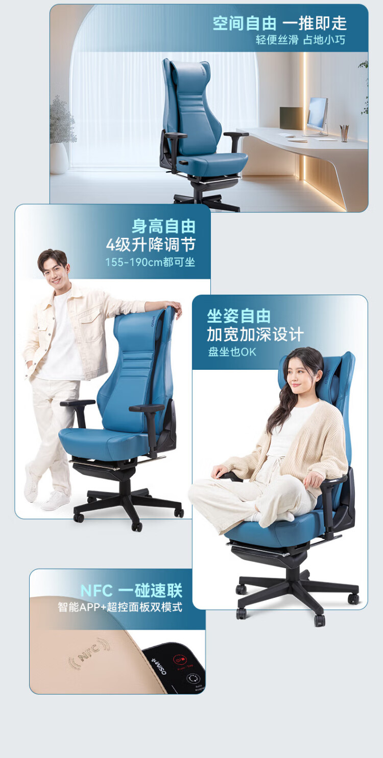 OSIM Massage Chair Ergonomic Office Chair Engineering King Chair V-Hand + Back Step Massage Cushion Footrest Design OS-8245 Blue With Footrest Practical Birthday Gift