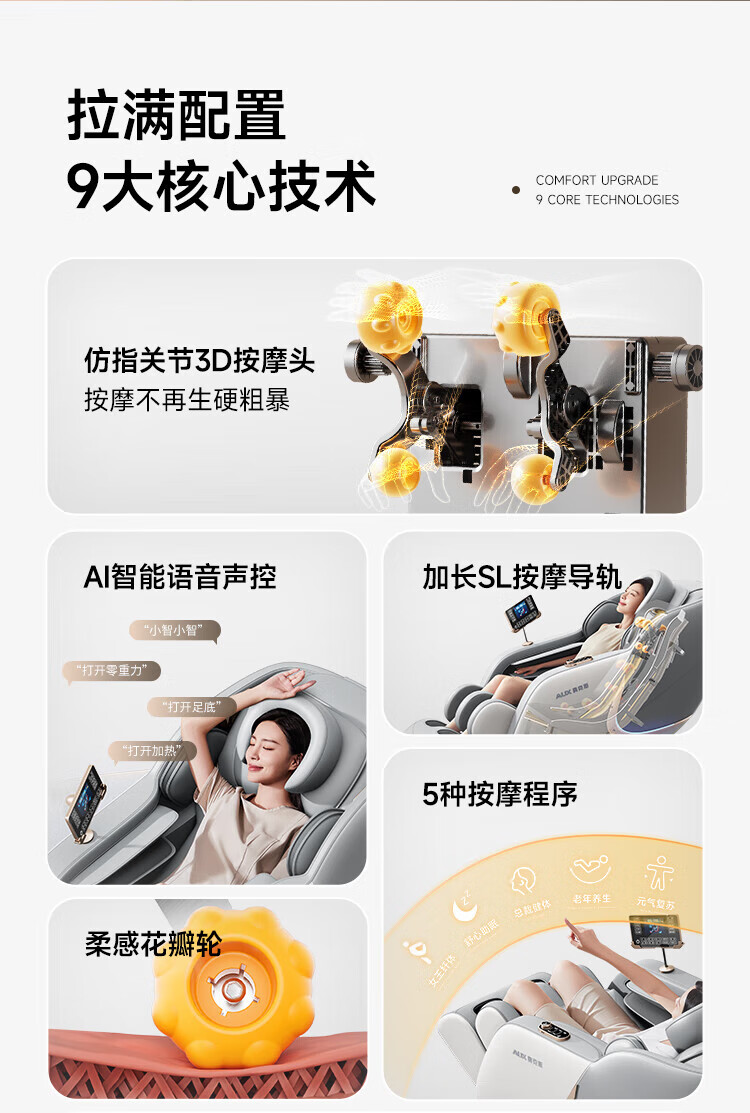 AUX 3D luxury massage chair for home 2025 top ten brands full-body space capsule cervical spine, shoulder, neck and waist fully automatic zero-gravity massage traditional Chinese medicine health care small apartment electric sofa chair 3D manipulator SL guide rail high-end exclusive + intelligent dual core + light gray gift for husband, wife, parents, parents, parents, elders, birthday and festival gifts for men and women friends