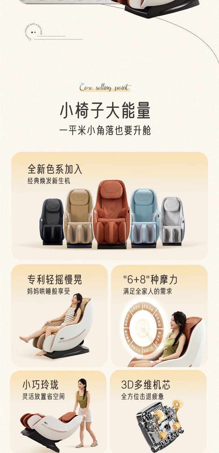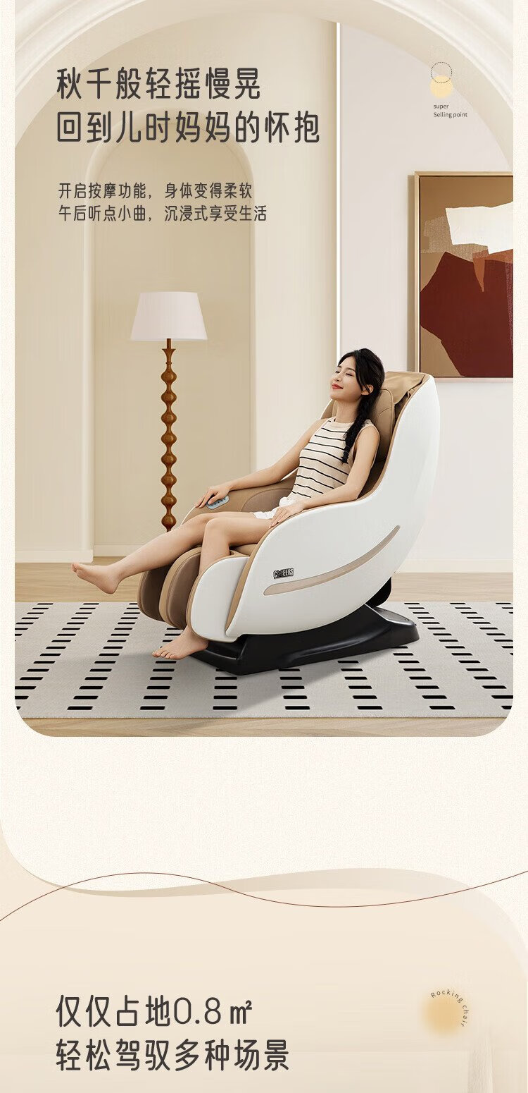 CHEERS Massagestuhl Home Small Mini Zero Gravity Space Capsule Smart Chair Massageschaukelstuhl 2025 Double 11 Geschenk für Eltern Massagestuhl M2050 – Sofort lieferbar 1 Schaukelstuhl – Cremeweiß 3 Jahre Garantie