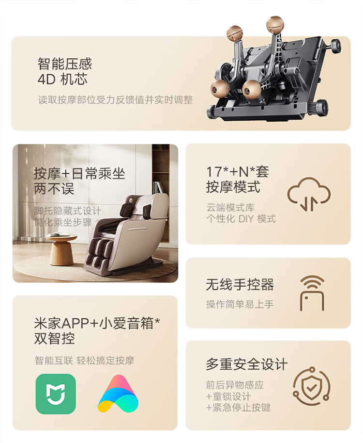 Mijia Xiaomi Smart Massage Chair Intelligent Pressure Sensing 4D Movement Xiaoai Dual Intelligent Control One-button Zero Gravity Interconnected Electric Massage Sofa Recommended Gifts for Parents and Elders