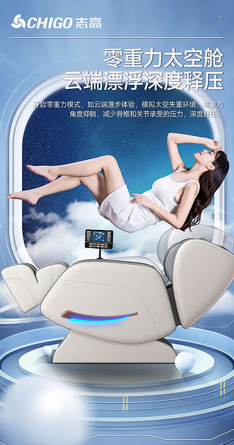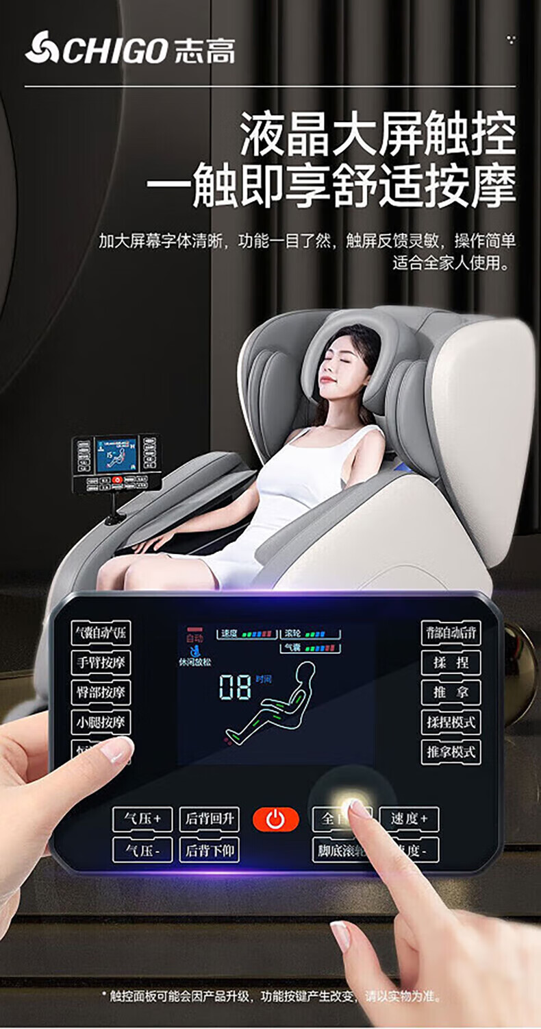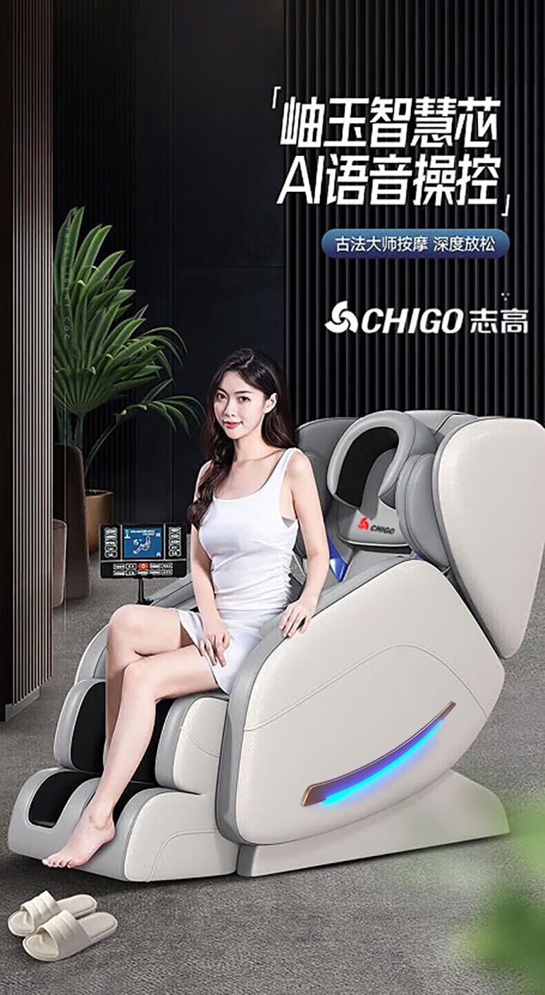 Chigo Massage Chair Home Fully Automatic Full Body 2025 Top Ten Brands Space Capsule Kneading Zero Gravity Neck, Waist and Back Smart Massage Chair Practical Parents' Day Gift for Mom and Dad Official Subsidy Model Black Simulated Kneading Open Back + Large Screen Touch + Foot Roller Practical Gift for Mom, Dad, the Elderly, Mother's Day, Elders, Lovers, Birthdays and Holidays