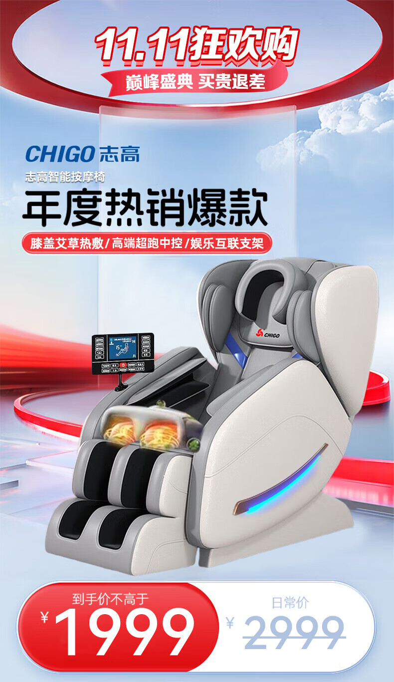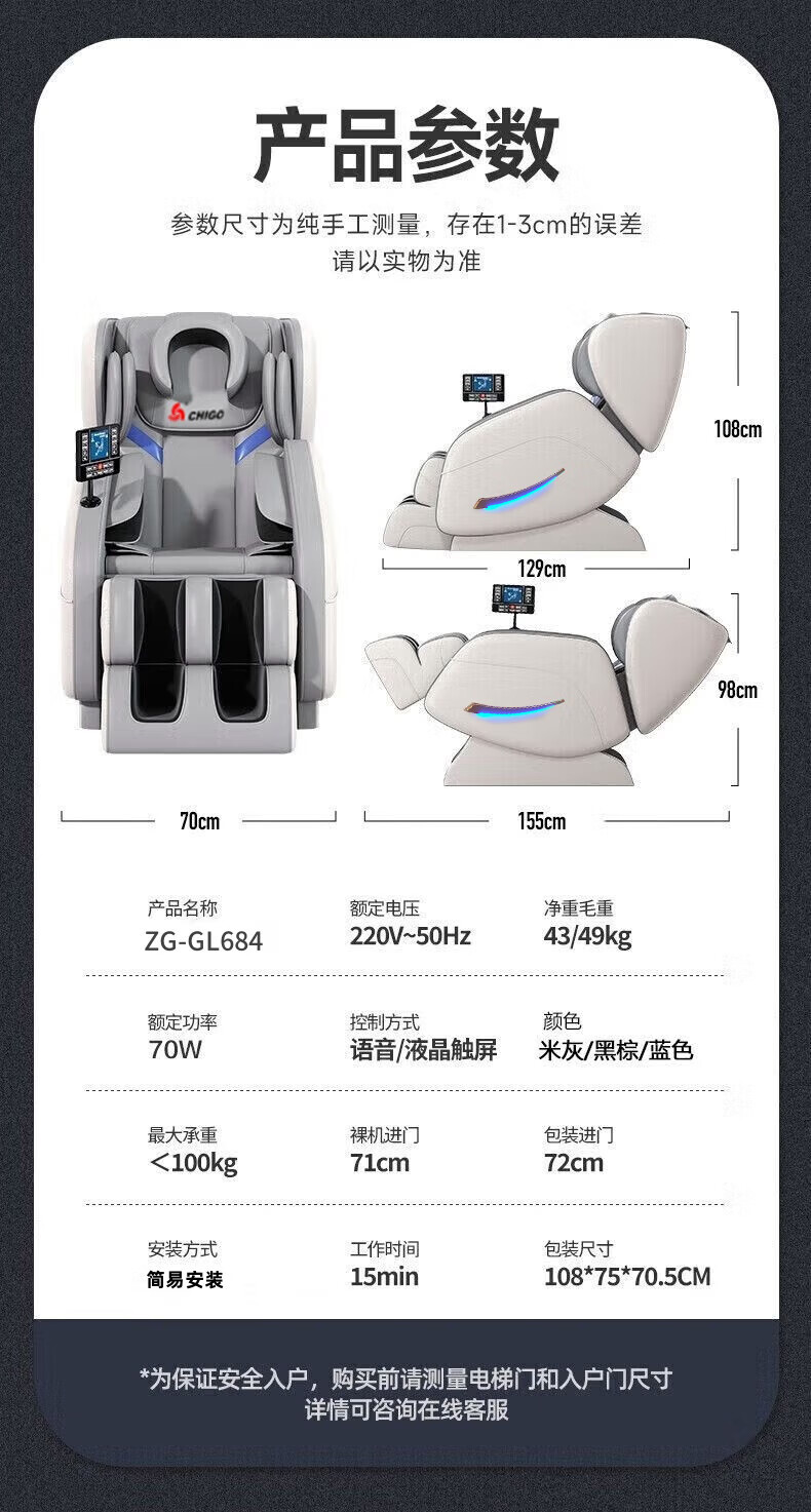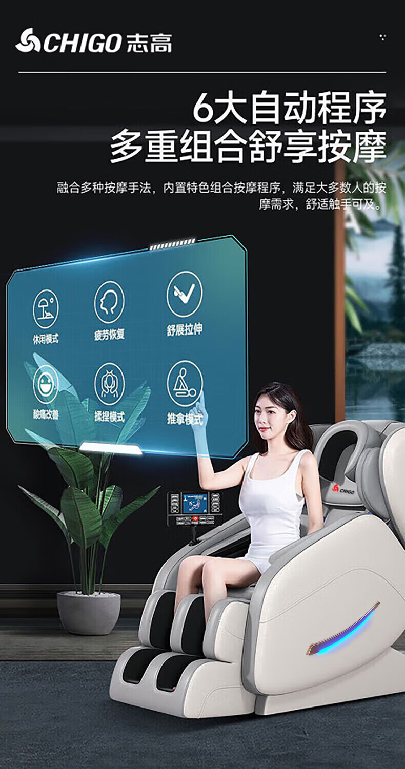 Chigo Massage Chair Home Fully Automatic Full Body 2025 Top Ten Brands Space Capsule Kneading Zero Gravity Neck, Waist and Back Smart Massage Chair Practical Parents' Day Gift for Mom and Dad Official Subsidy Model Black Simulated Kneading Open Back + Large Screen Touch + Foot Roller Practical Gift for Mom, Dad, the Elderly, Mother's Day, Elders, Lovers, Birthdays and Holidays