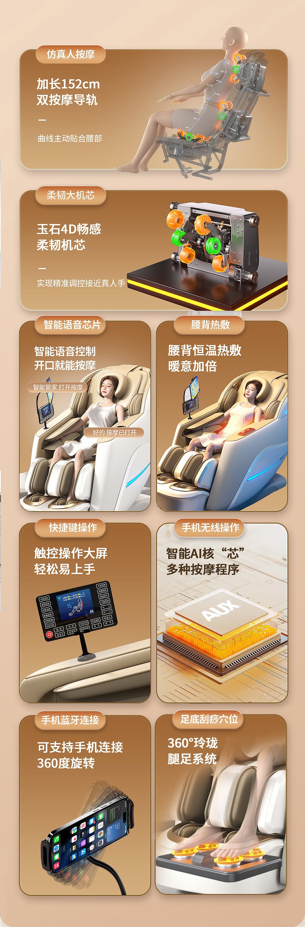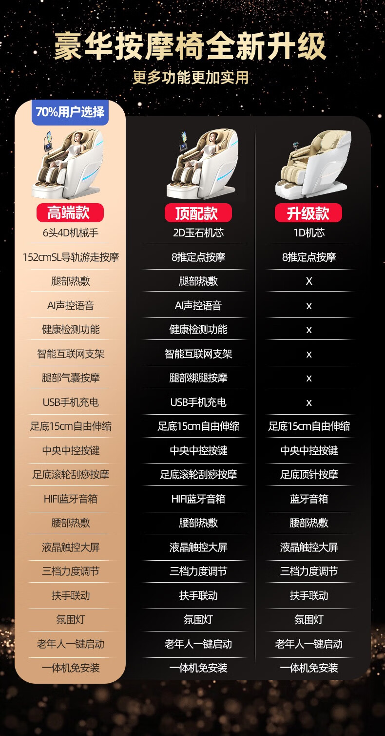 AUX luxury massage chair for home use 2025 new massager full body electric space capsule double guide rail intelligent fully automatic lazy sofa for parents' day gift for the elderly top model piano black health detection + air bag + hot compress + voice + bracket