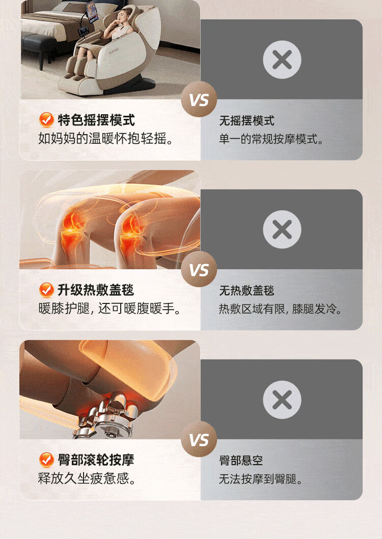 SUPOR (SUPOR) Home Appliances National Subsidy 2025 New Products Smart Massage Chair Home Full Body Space Capsule Top Ten Brands Electric Multi-Function Sofa Small Household Rocking Chair for the Elderly Smart Rocking Chair Innovative Rocking System + Warm Coffee White When buying a massage chair, look for the official flagship store Gold Medal Service丨Pay attention to every detail