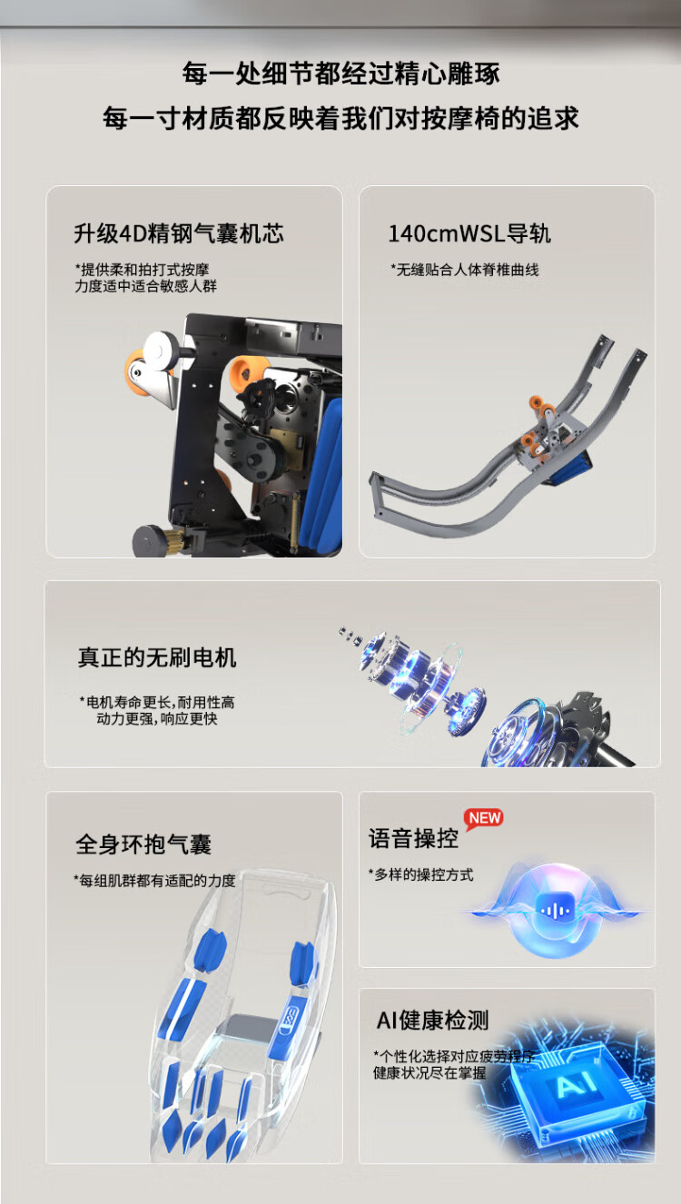 Rongkang T50pro smart massage chair 4D movement multi-functional full body space capsule home massage sofa new product launch Moonlight Apricot-4D stainless steel air bag movement