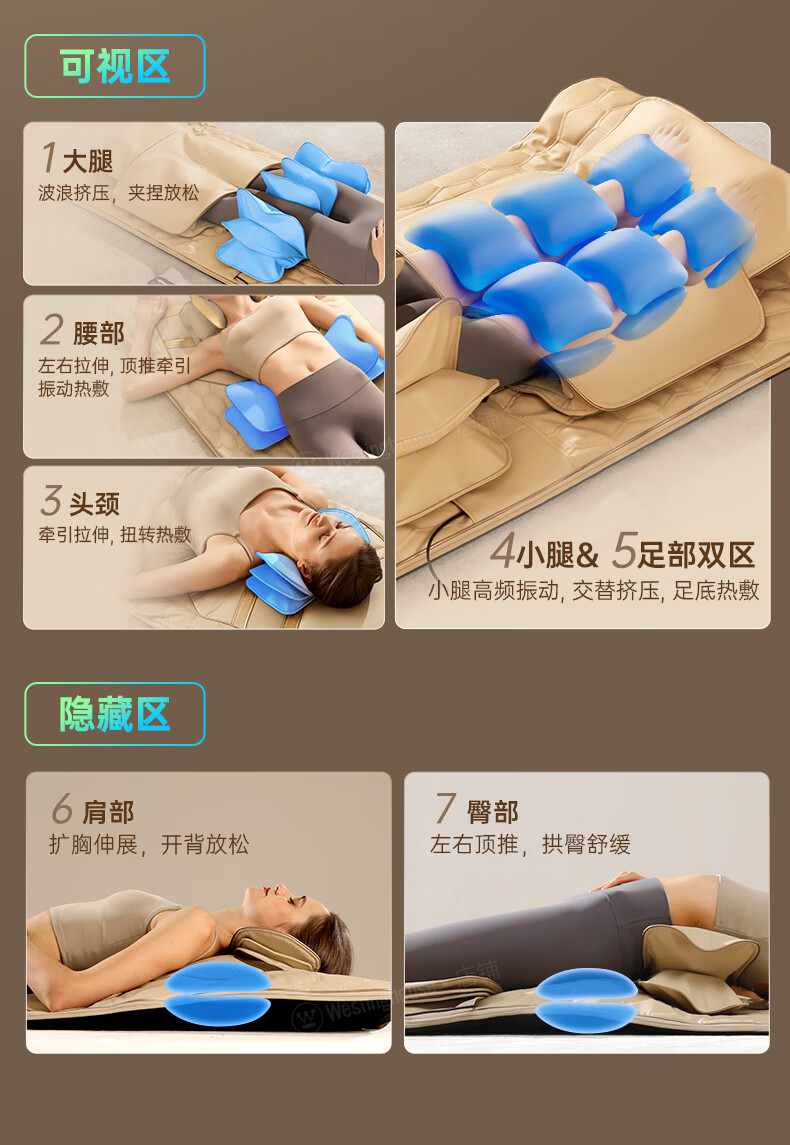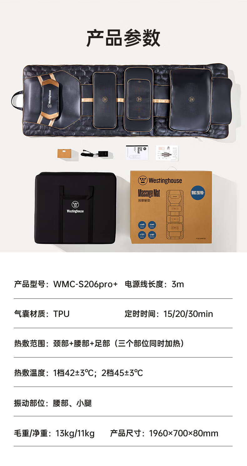 Westinghouse S206Pro+/S206Pro Massage Pad Stretch Pad Full Body Reclining Cushion Chair Bed Folding Massage Chair Home Mini Cervical Lumbar Back Massager Parents Couple Gift Vibration + Air Pressure Detection S206Pro+ Omega Foldable and Does Not Take Up Space