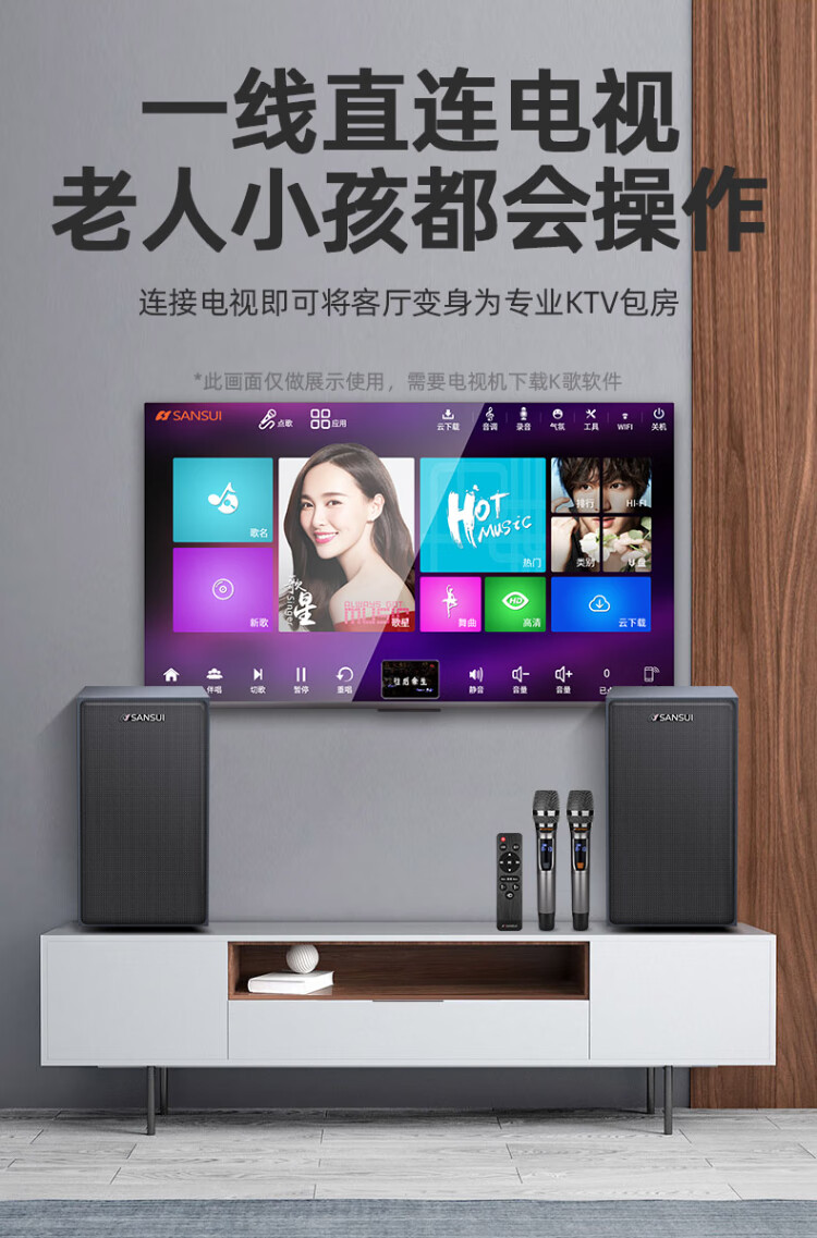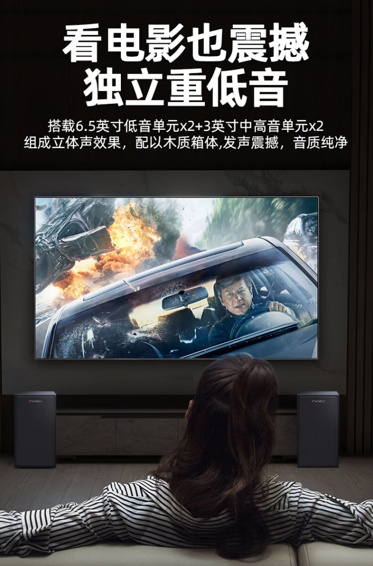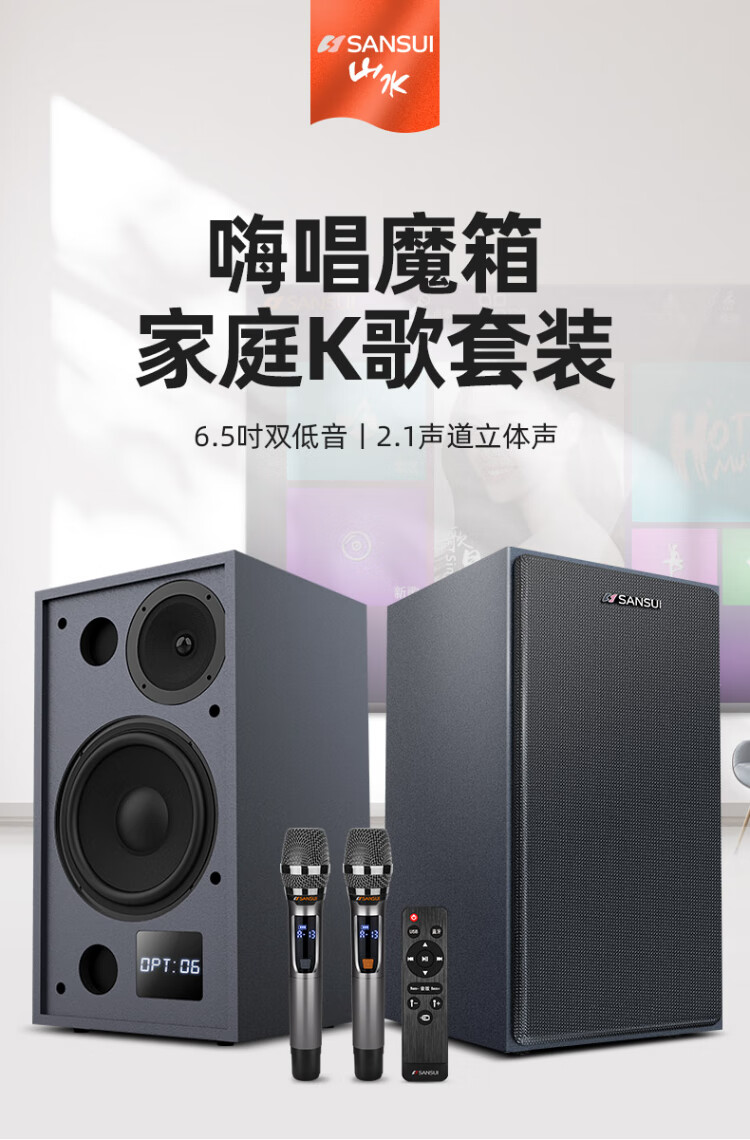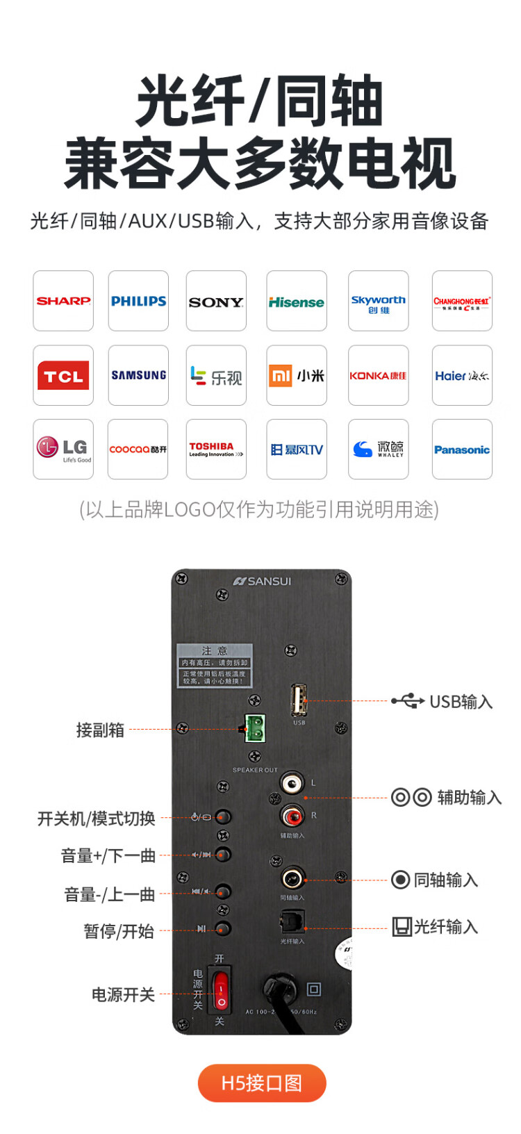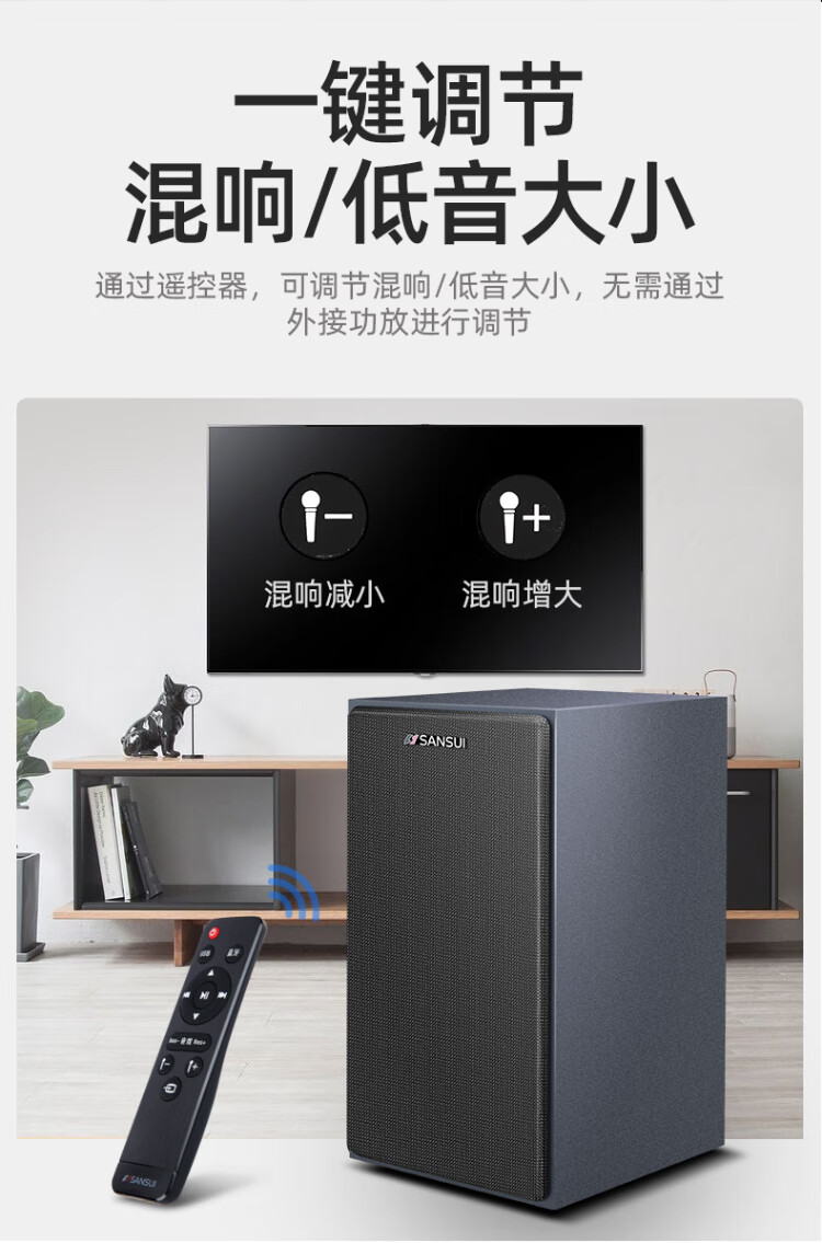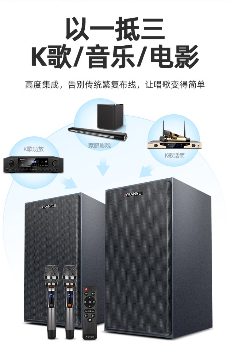 SANSUI Wooden Computer Bluetooth Speaker Home TV Karaoke Smart Speaker Home Living Room KTV Speaker Karaoke Conference Speaker Desktop Laptop Desktop Speaker H5