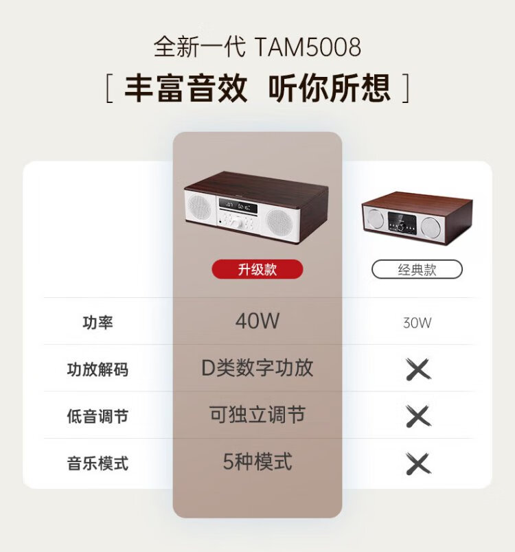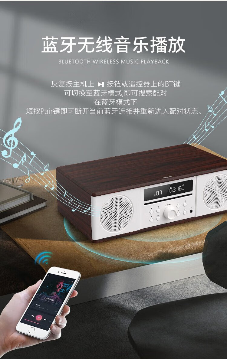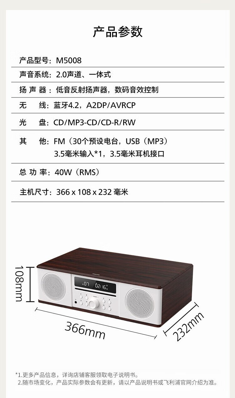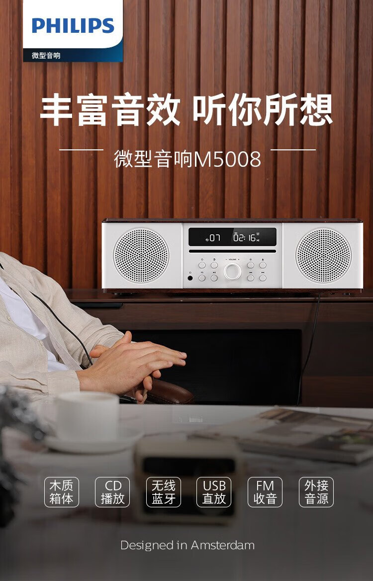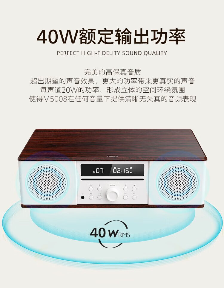 Philips (PHILIPS) CD player desktop audio CD player mini audio CD player home desktop audio speaker radio wooden Bluetooth TAM5008
