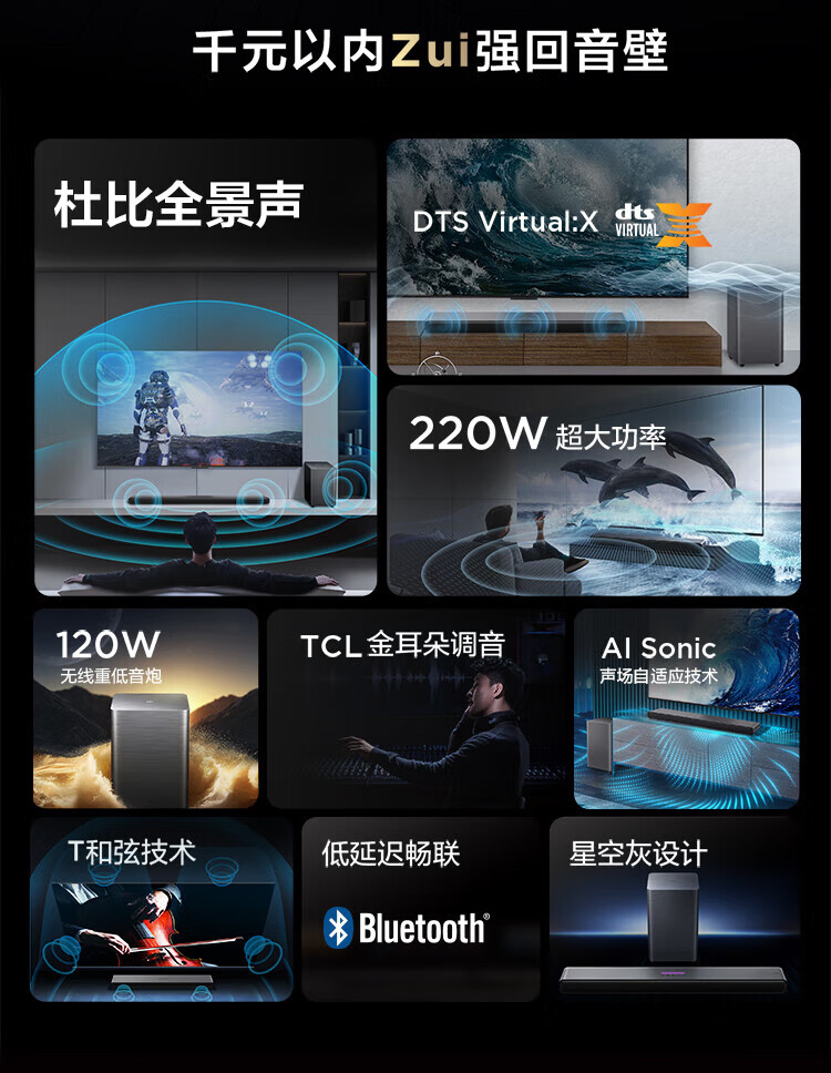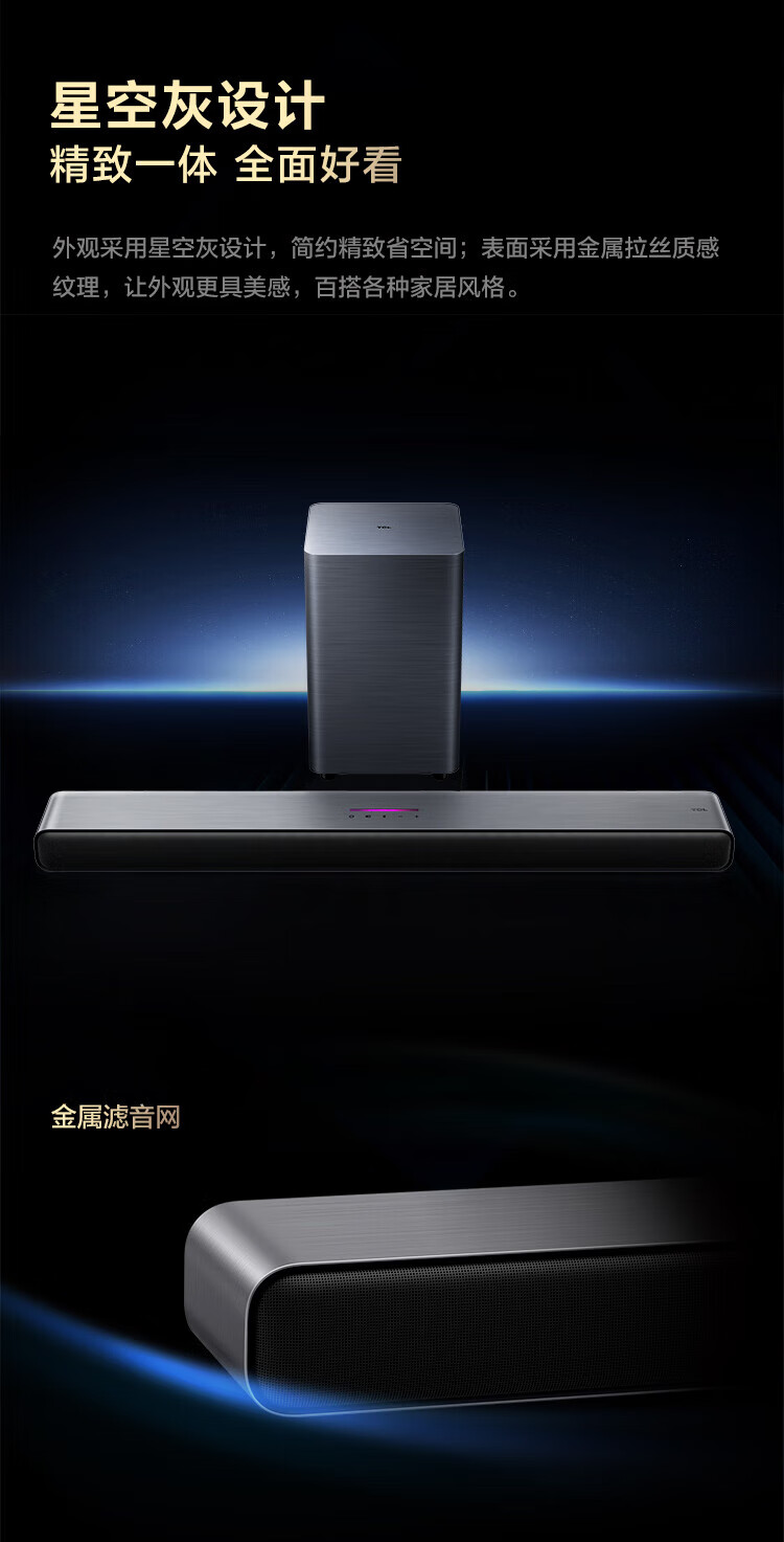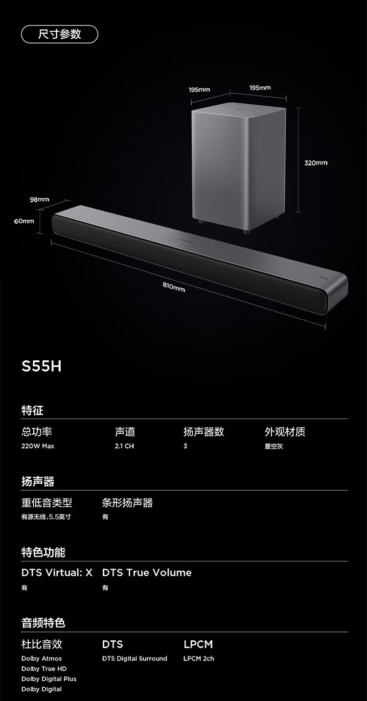 TCL Echo Bar Speaker S55H Dolby Atmos DTS Virtual X 220W High Power Independent Subwoofer Home Theater Bluetooth Smart Speaker + Subwoofer Set